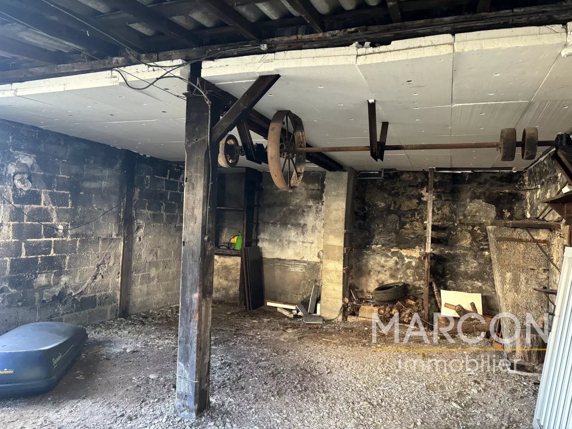 Grand sous-sol sous la terrasse composé d'une cave, un atelier et 3 garages.
