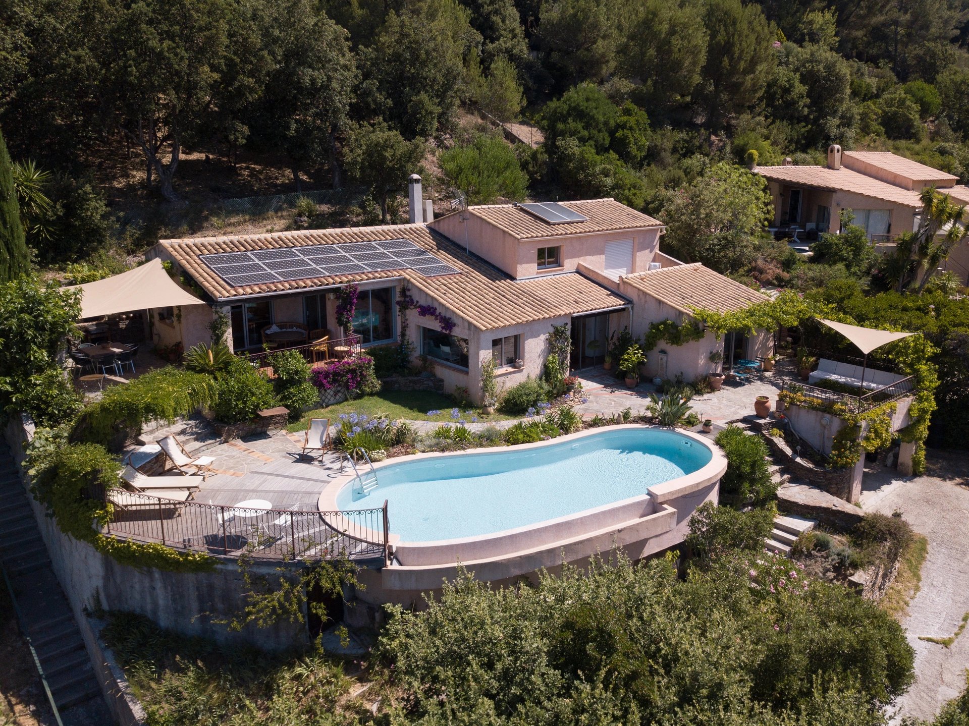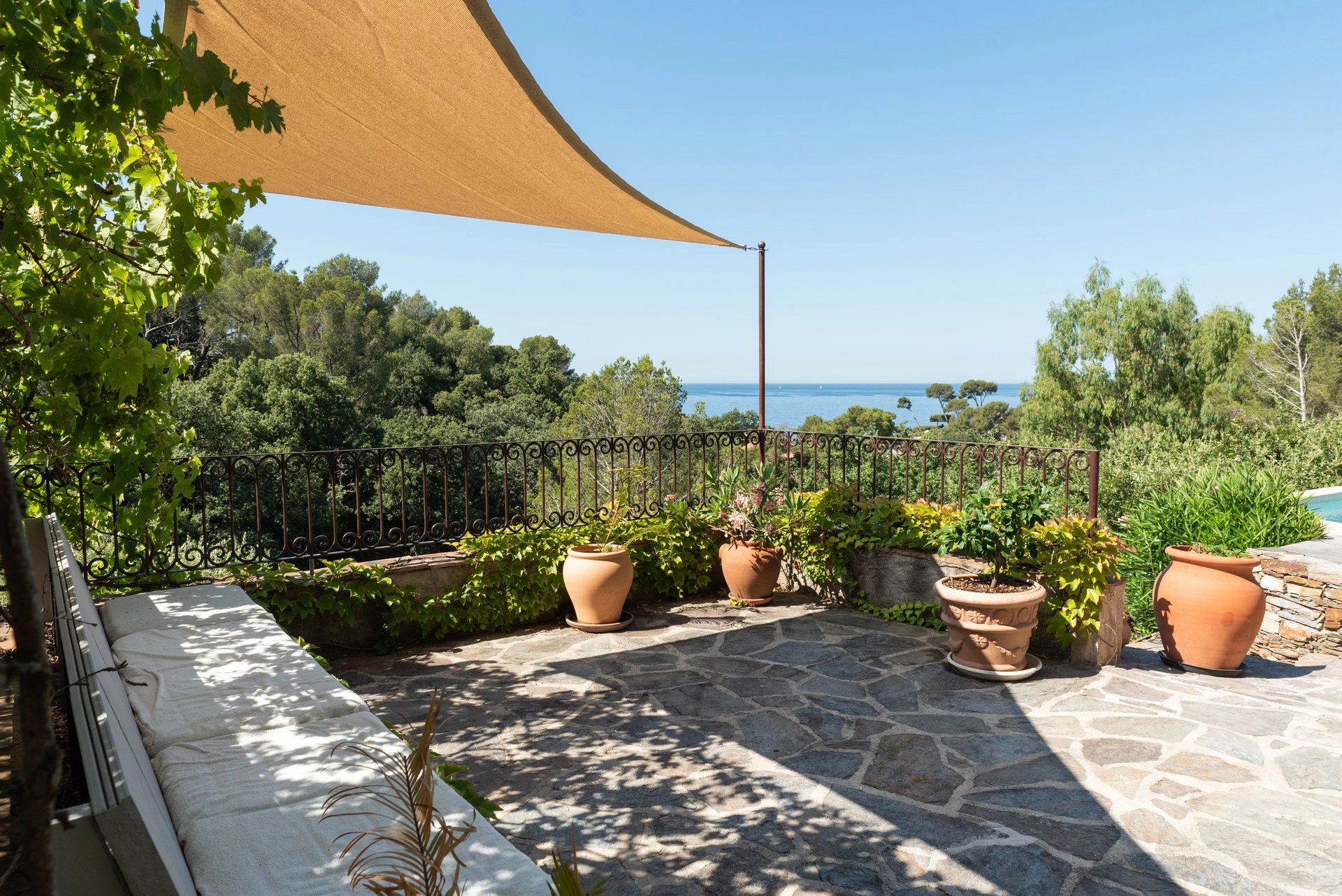 Cette propriété en position dominante, se situe au cœur d'un domaine privé à 200 mètres d'une plage de sable doré. La villa développe 145 m2 habitables sur un terrain en restanque de 1212 m2 avec piscine à débordement. Elle est constituée, de : 4 chambres, 3 salles de bains, une buanderie, un séjour salon/salle à manger avec cheminée, une cuisine équipée.Des travaux de décoration sont en cours et seront terminés pour l'été. Son orientation est Sud et offre une belle vue sur la mer et la végétation méditerranéenne. Un accès privatif au domaine vous conduit jusqu’à la plage.