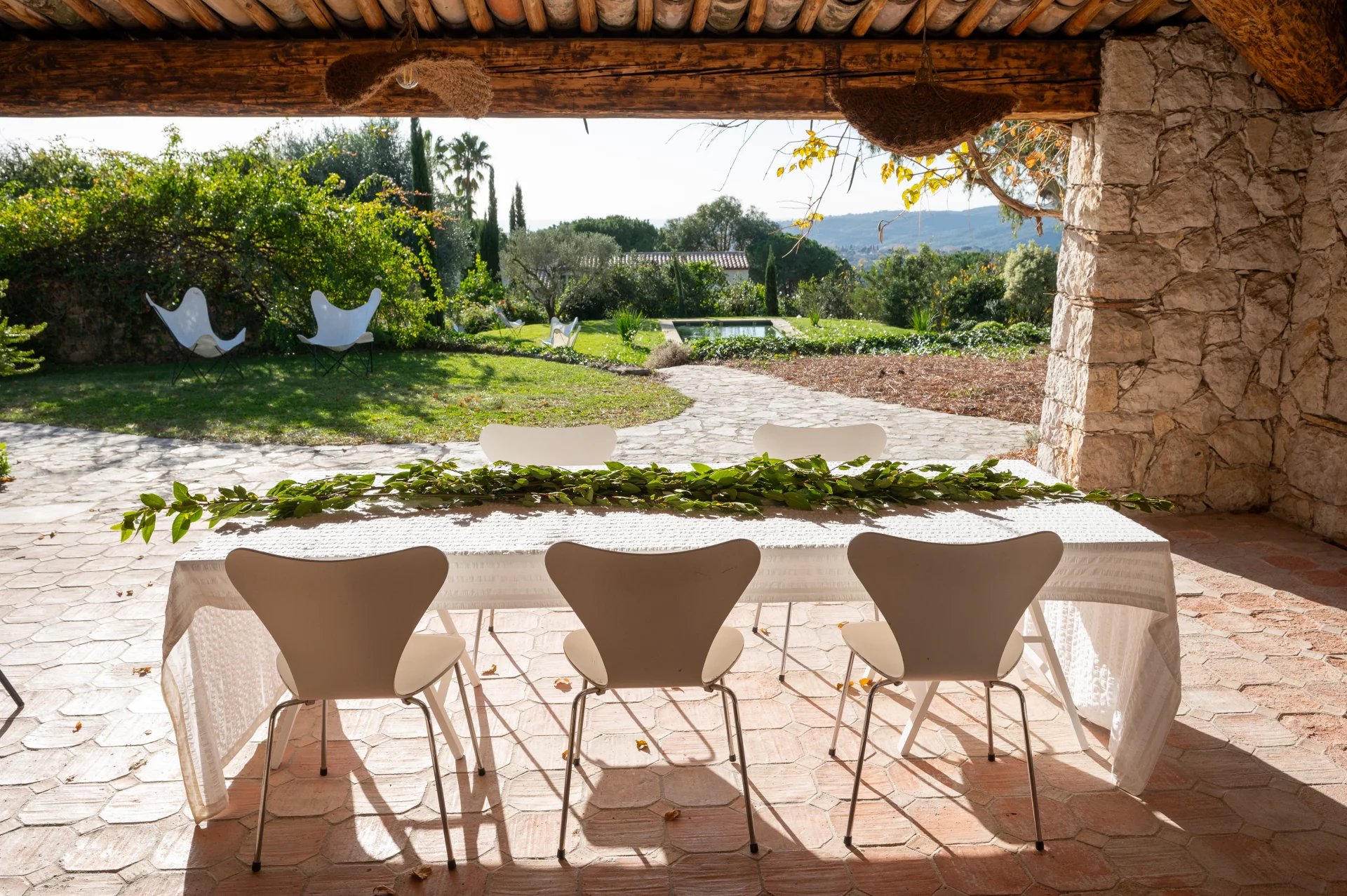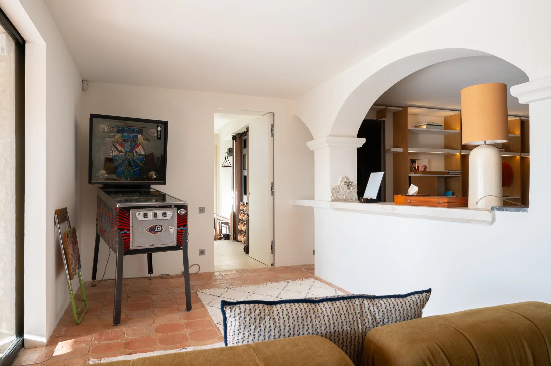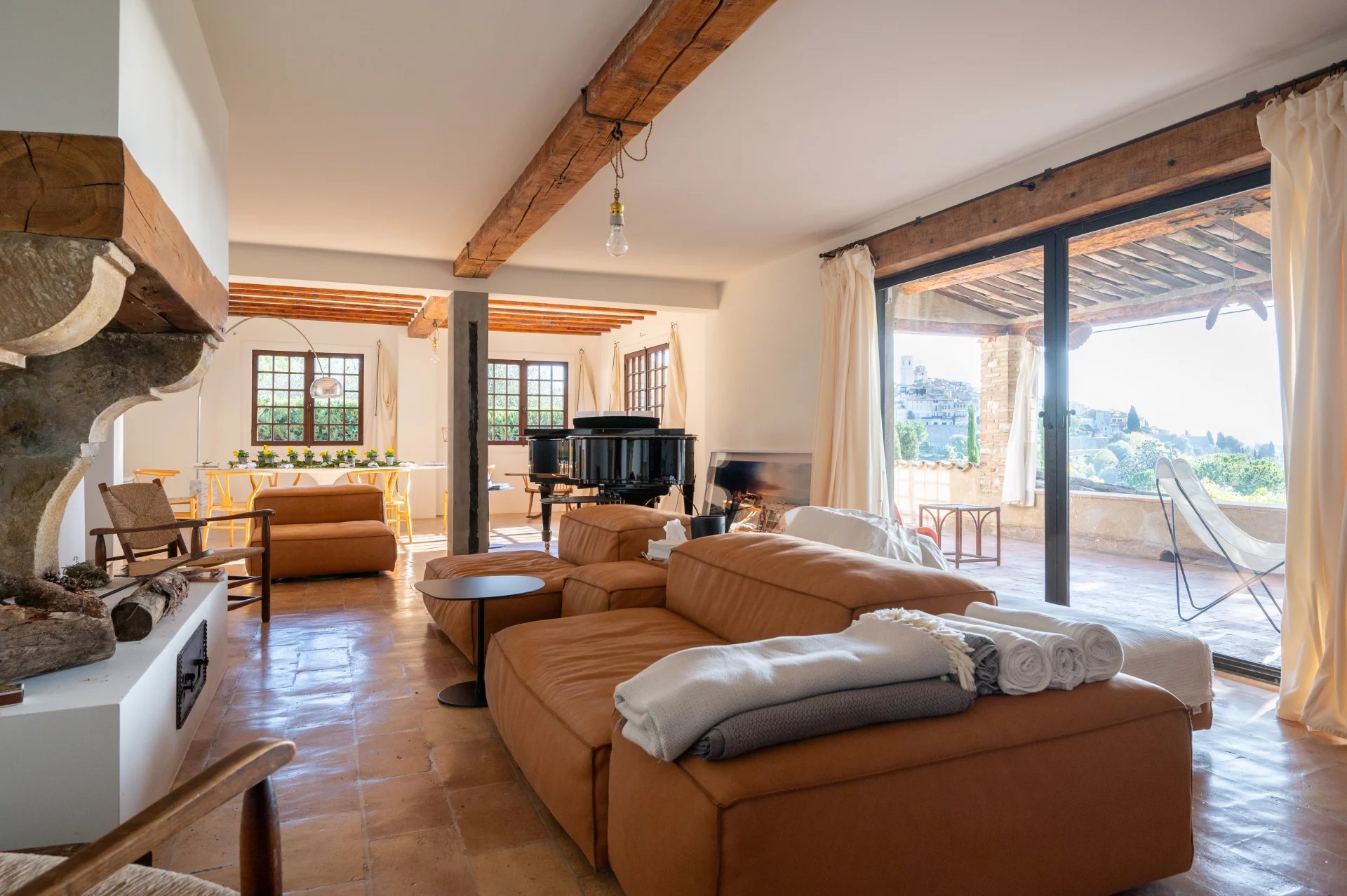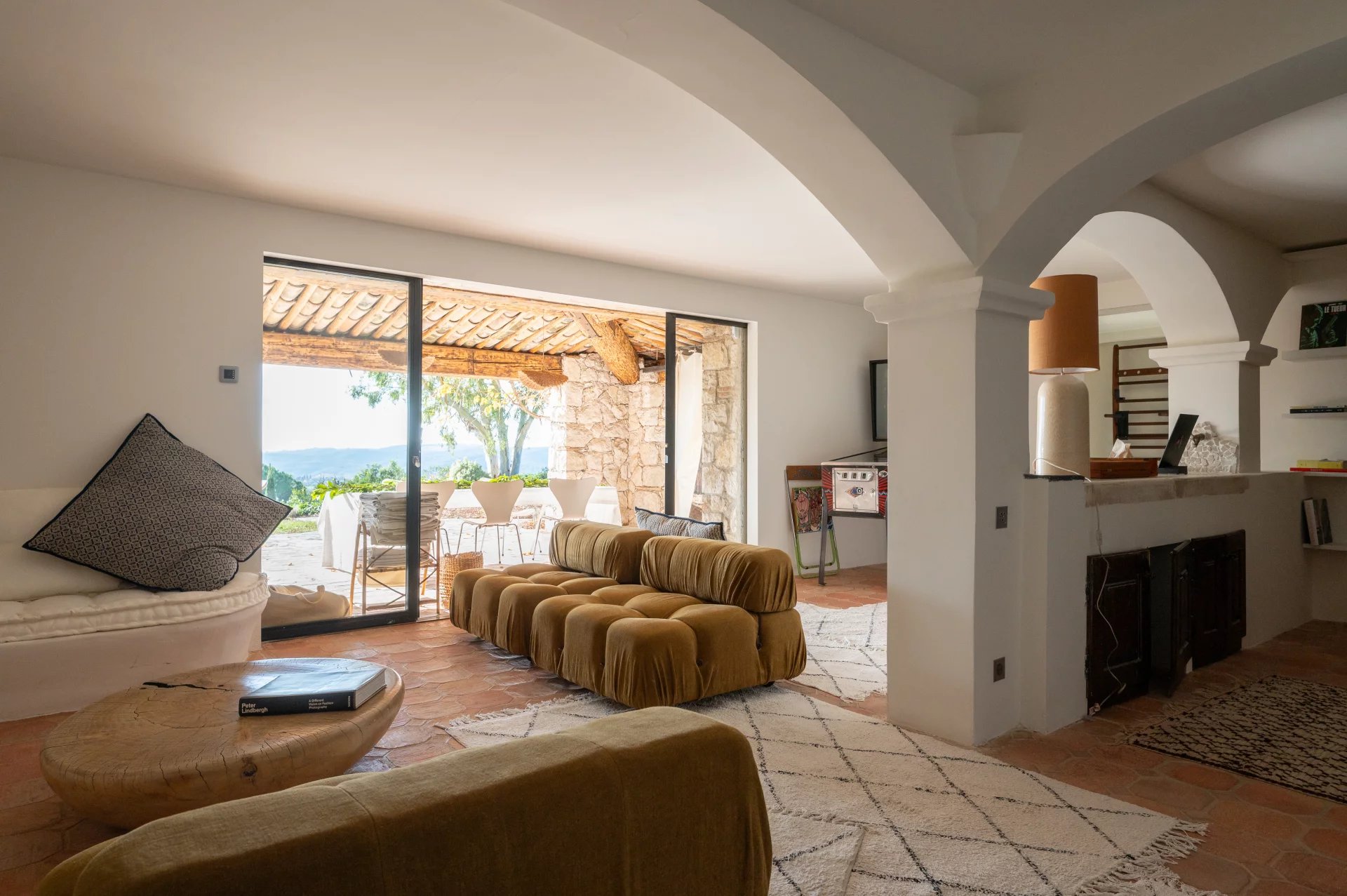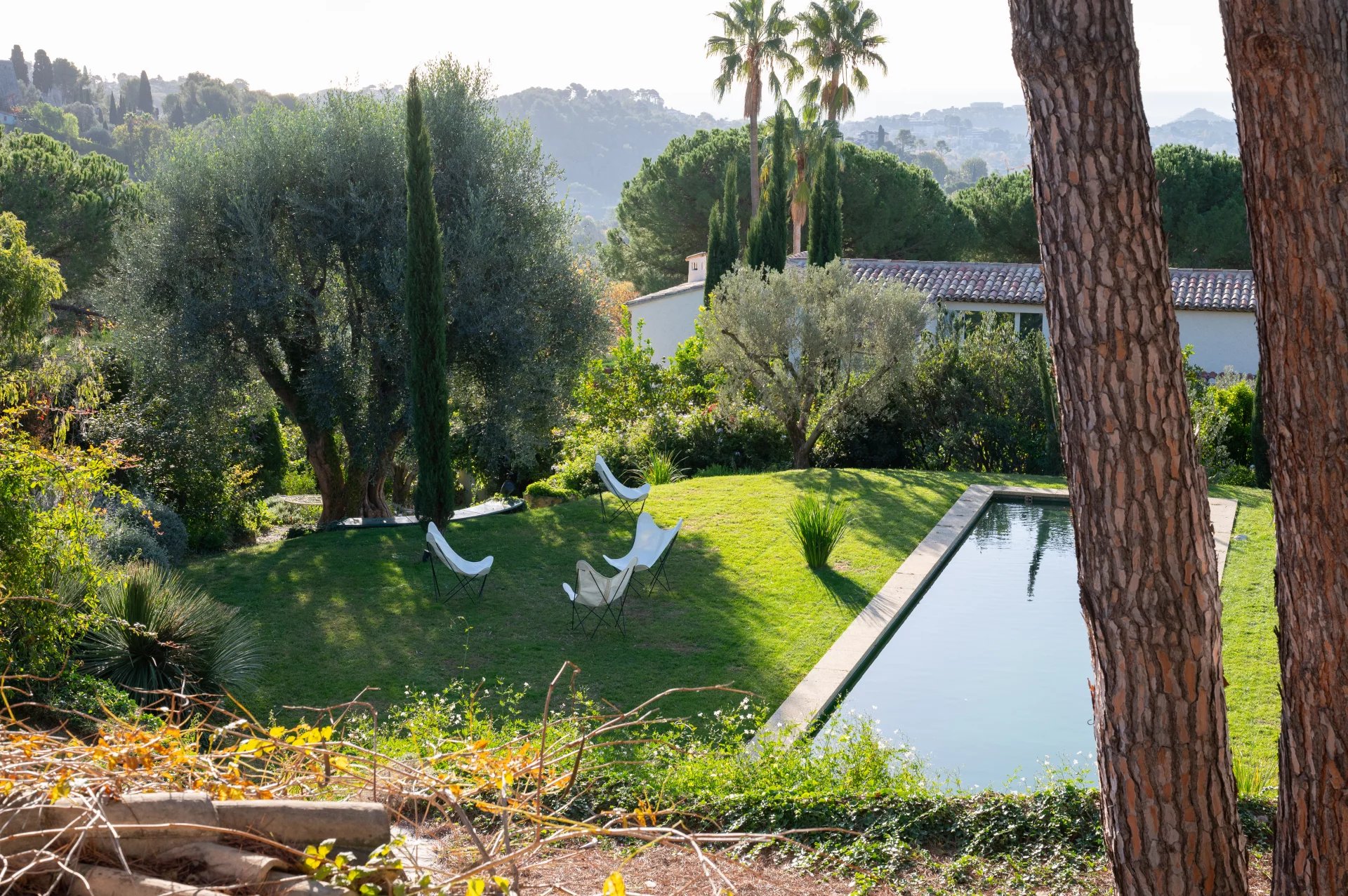 Située face au village historique de Saint-Paul de Vence et à quelques centaines de mètres de la Fondation Maeght. Cette belle maison à la décoration signée Jacqueline Morabito développe sur trois niveaux une surface habitable de 400 m2 environ. Cette maison claire et apaisante prend place sur une parcelle de terre de 2940m2 environ et bénéficie d’une superbe situation offrant une vue imprenable sur le village de Saint Paul et sur l’horizon méditerranéen.