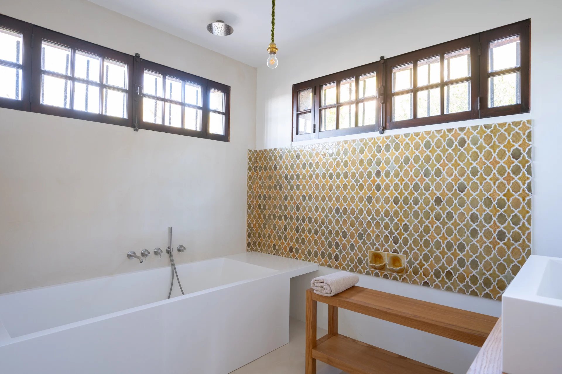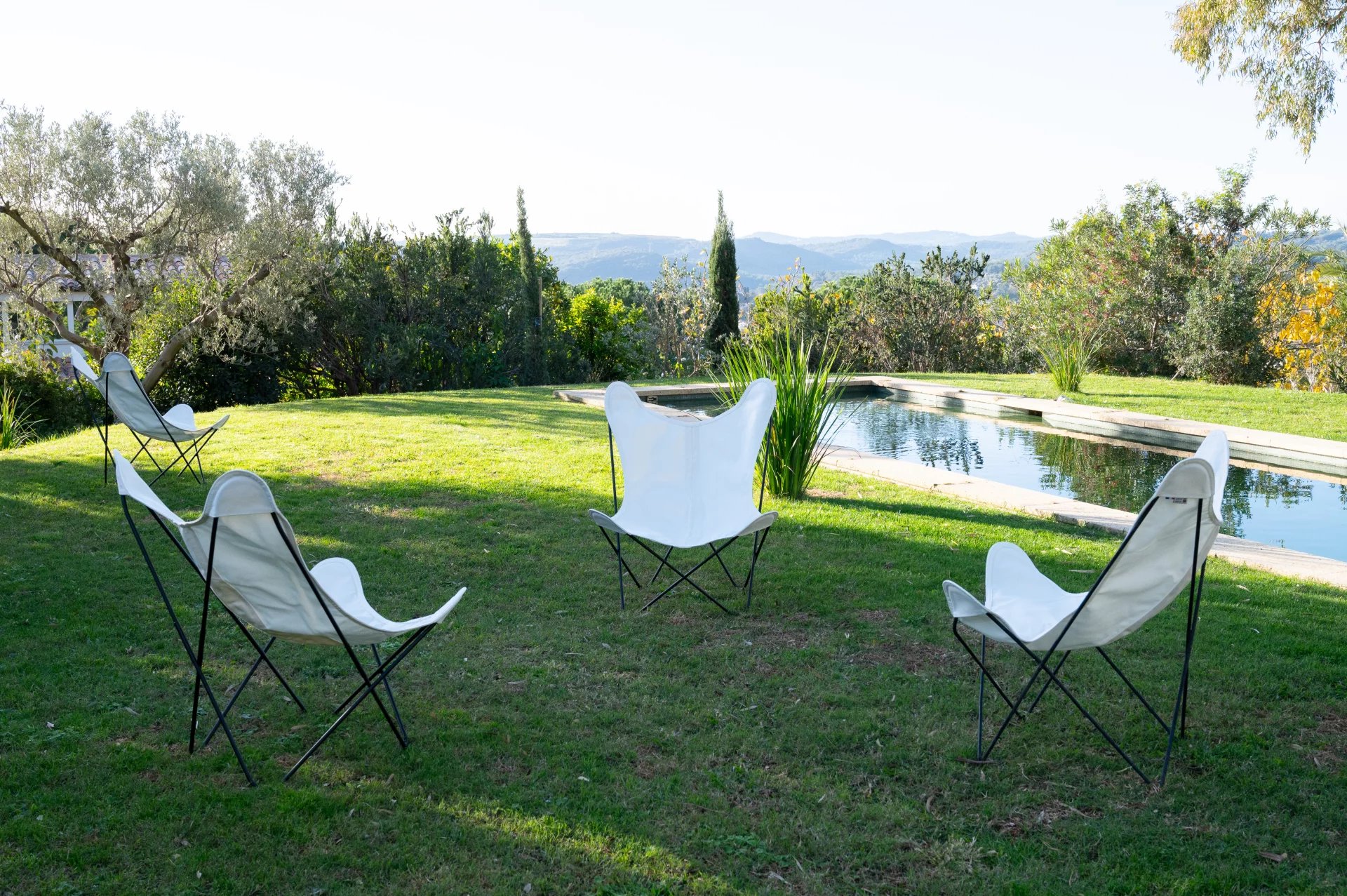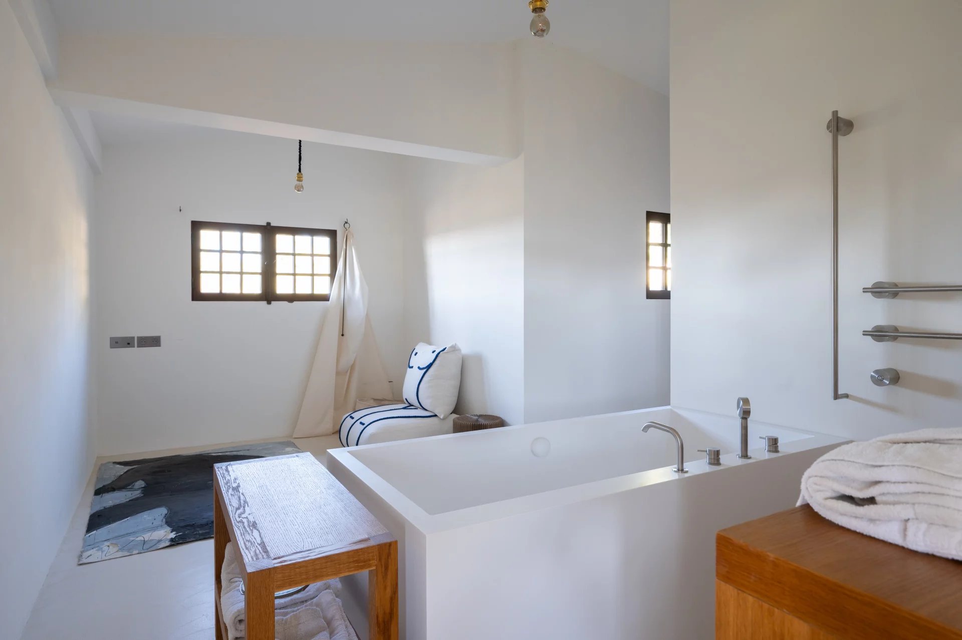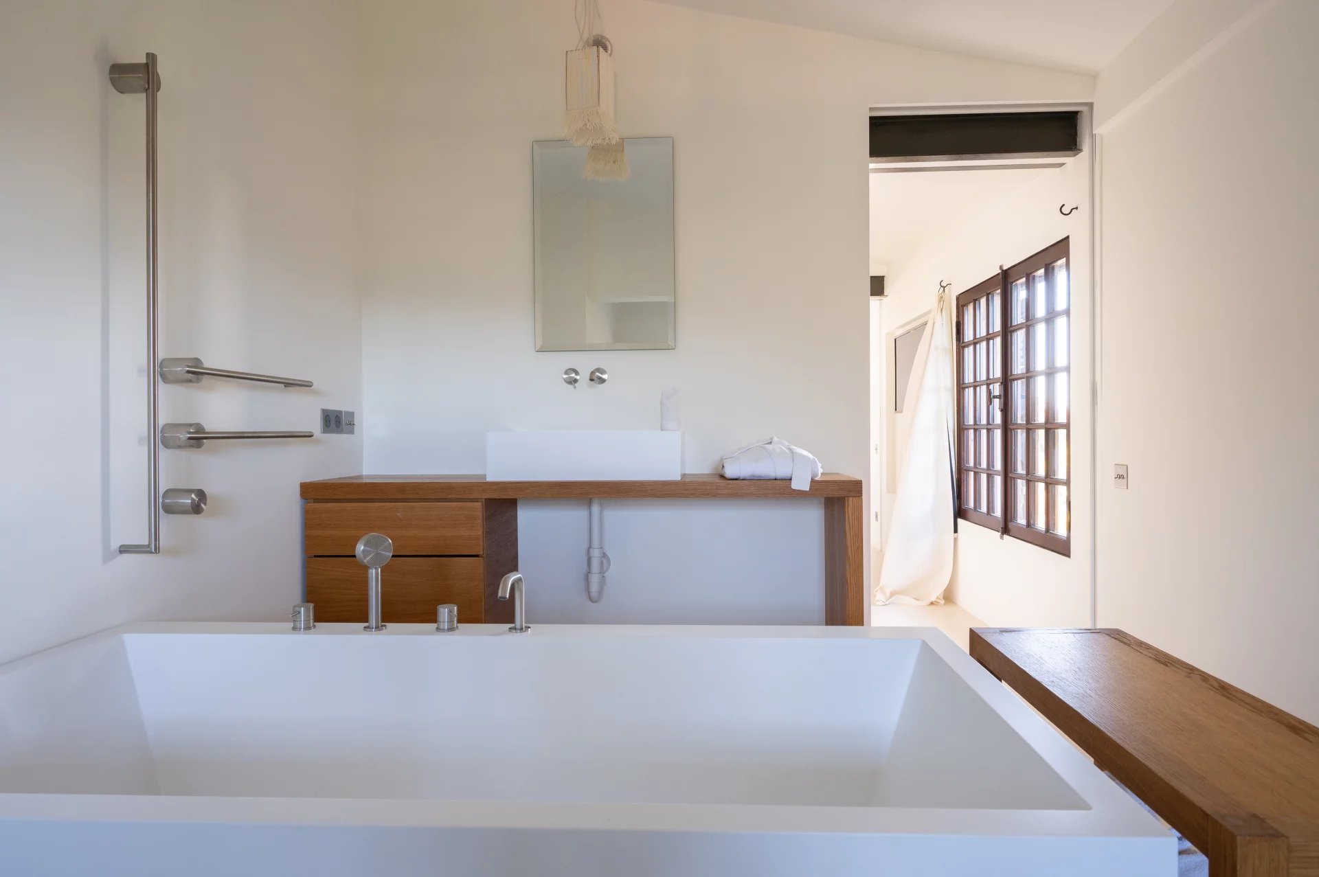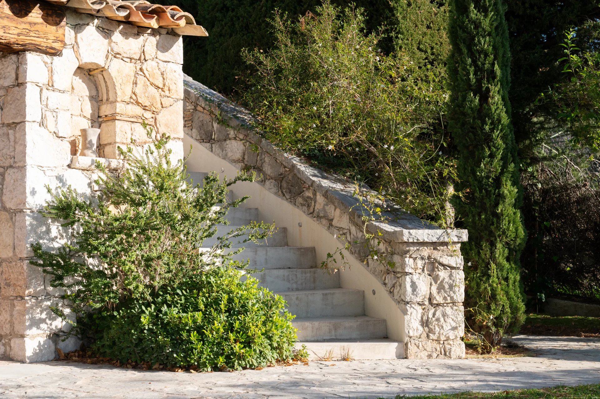 Des escaliers rappelant ceux de la Colombe d’or mènent au premier étage vers la master composée de grands dressings et deux salles de bains.