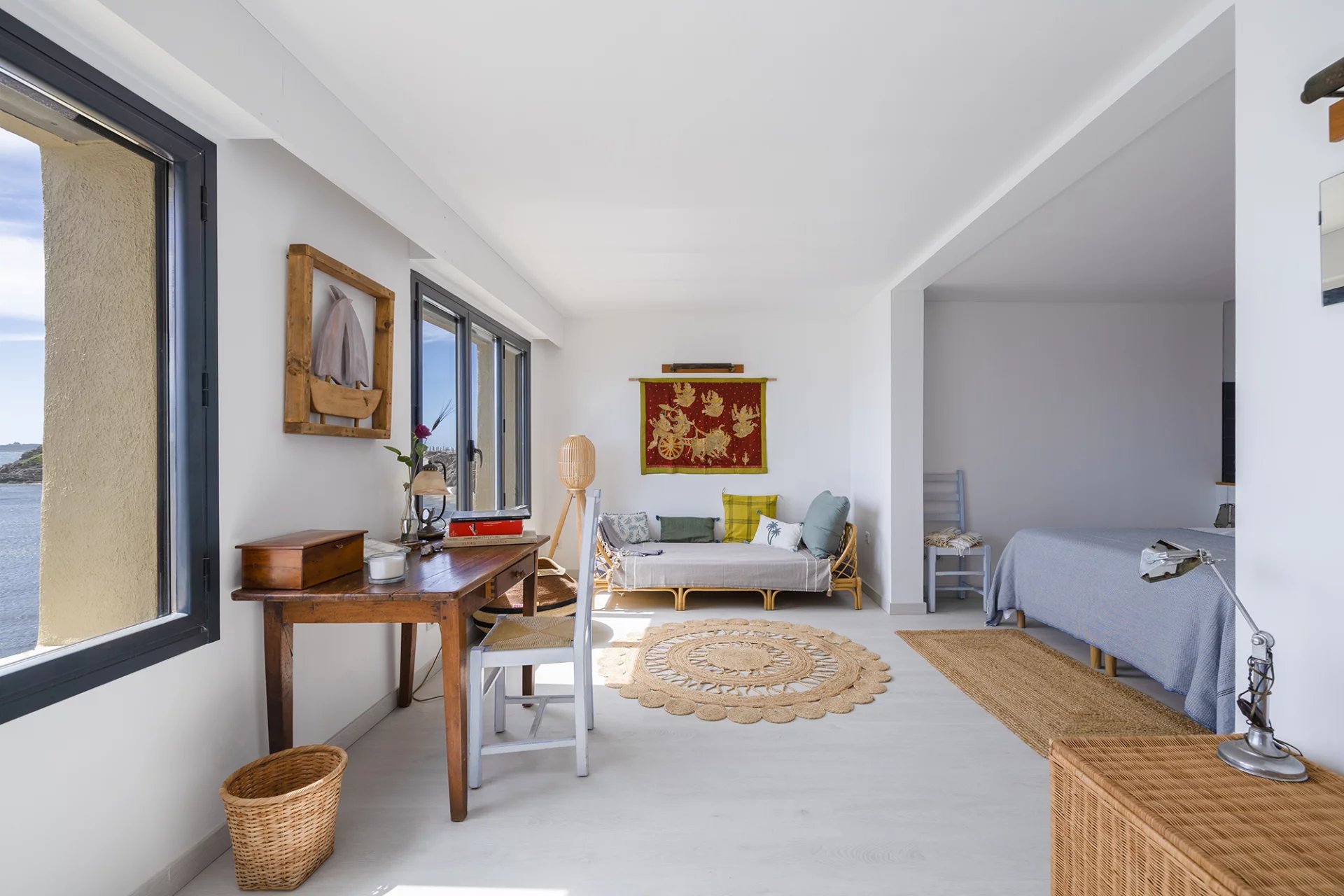 Bordée par la méditerranée, cette petite maison de pêcheur bénéficie d’une situation exceptionnelle qui permet de profiter du soleil tout au long de la journée. Les espaces extérieurs et intérieurs sont largement ouverts sur la mer et profitent d’une vue panoramique sur toute la baie et les îles d’Or.