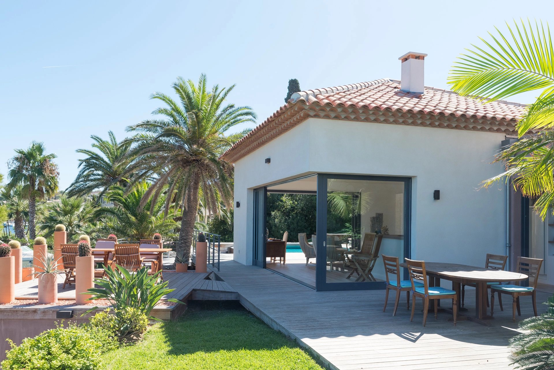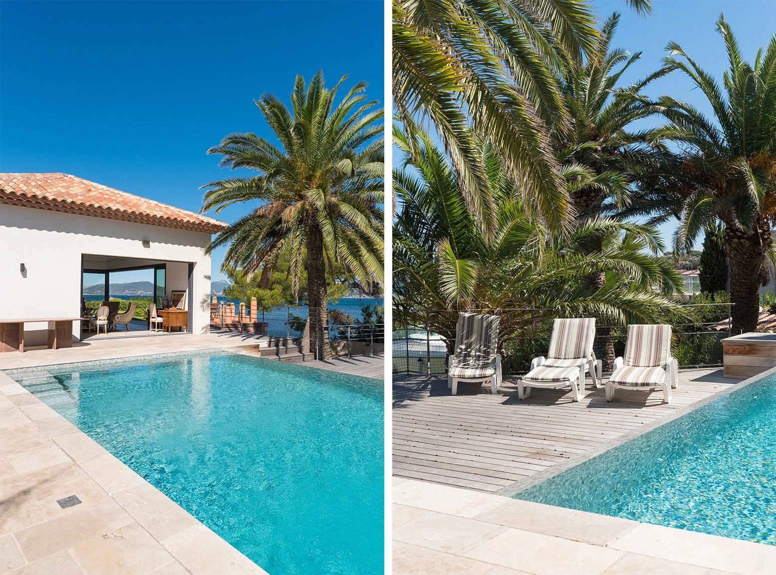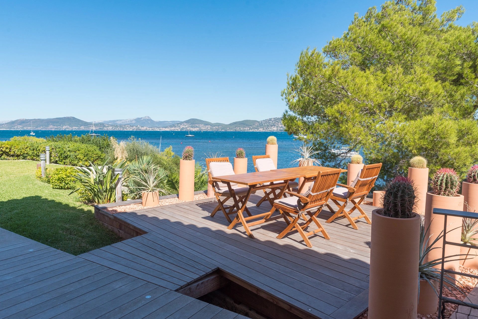 Location saisonnière de cette somptueuse villa neuve avec accès privé à une crique, un ponton propre à la propriété, et une piscine à horizon d'eau. Les prestations sont de belle facture.Idéal pour des vacances de reve en famille ou entre amis. Grille de prix : Haute saison: juillet/aout:9900€ la semaine Mi-saison: juin/septembre:7500€ la semaine Basse saison : 6600 € la semaine