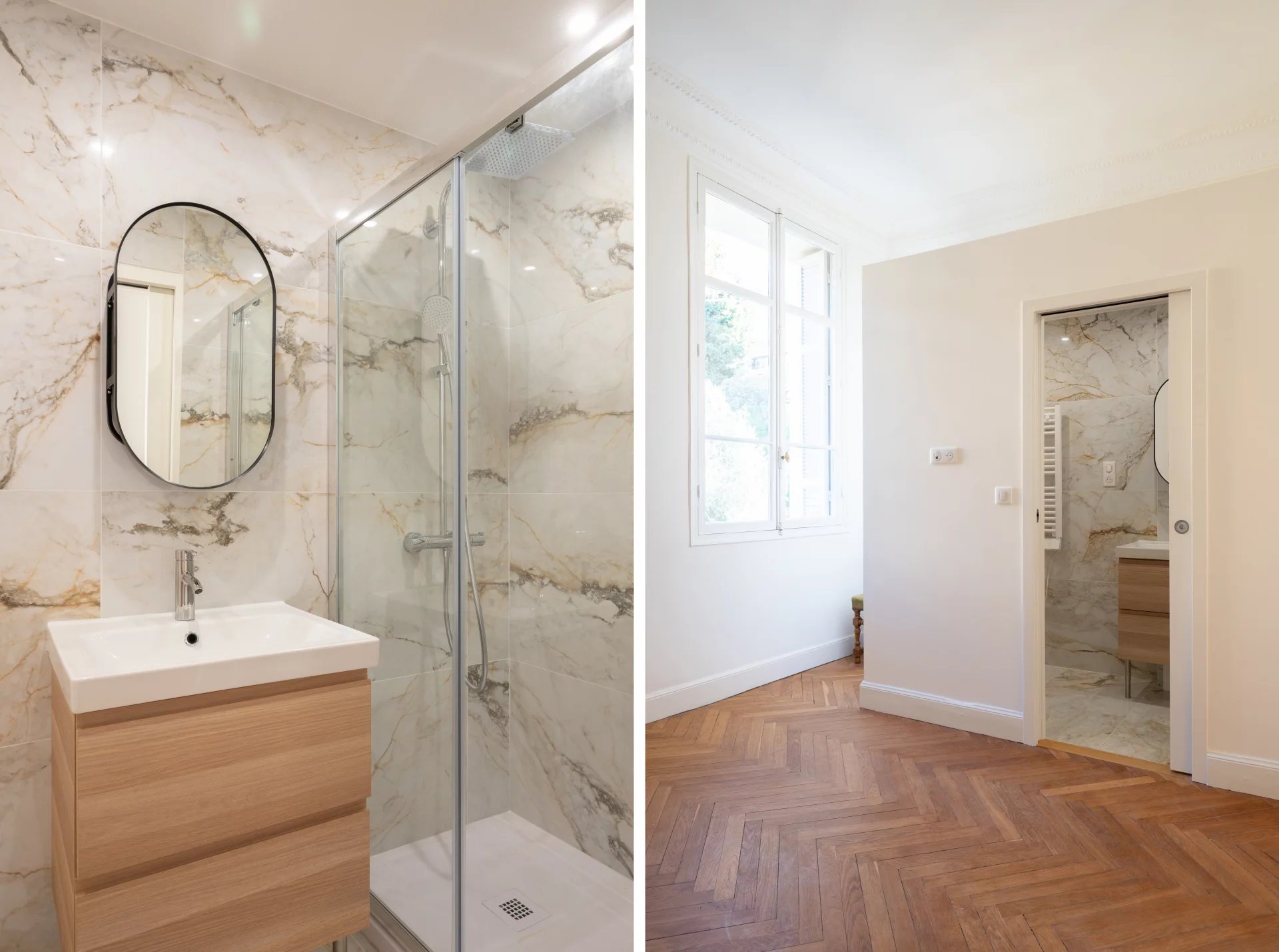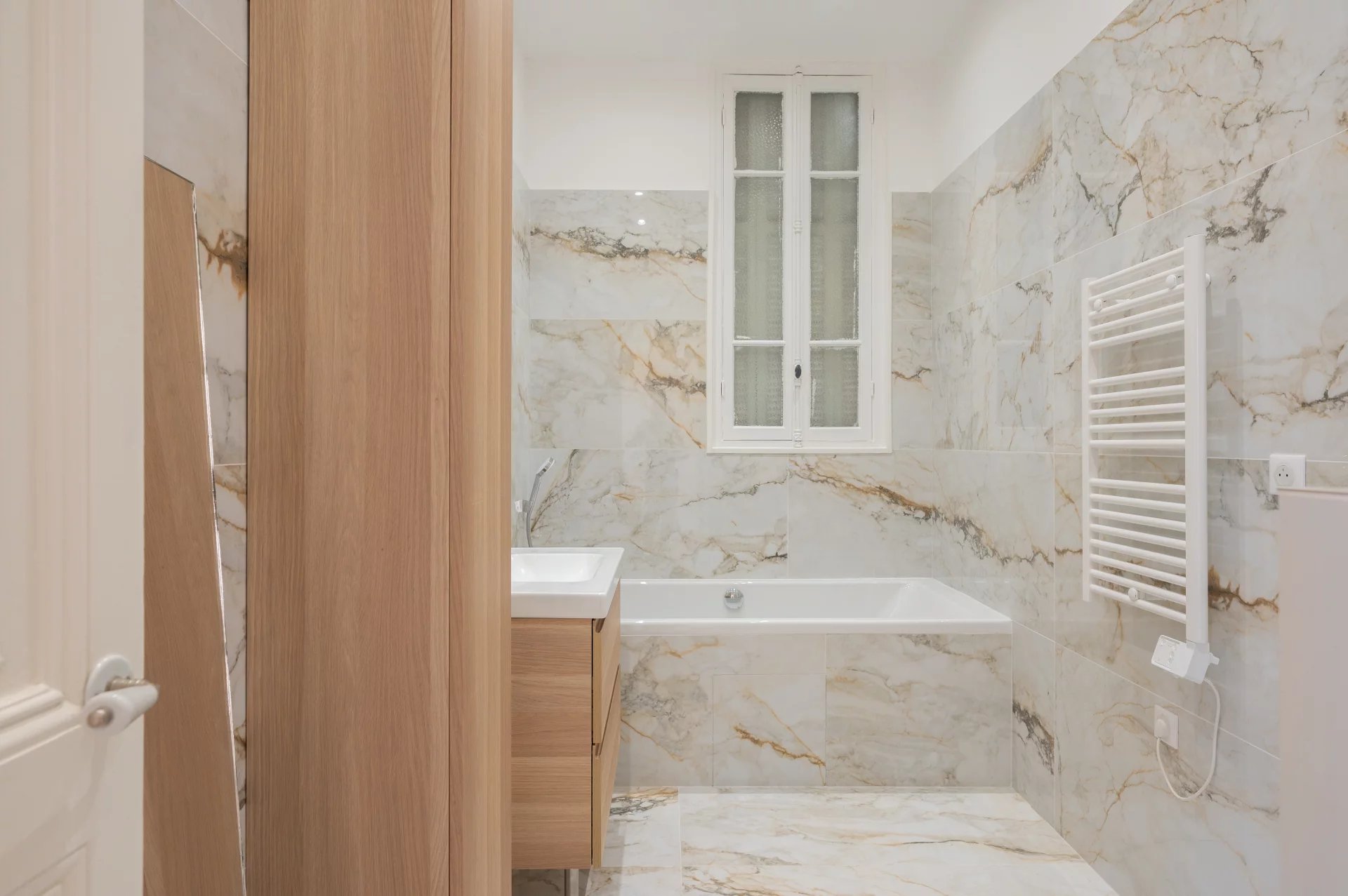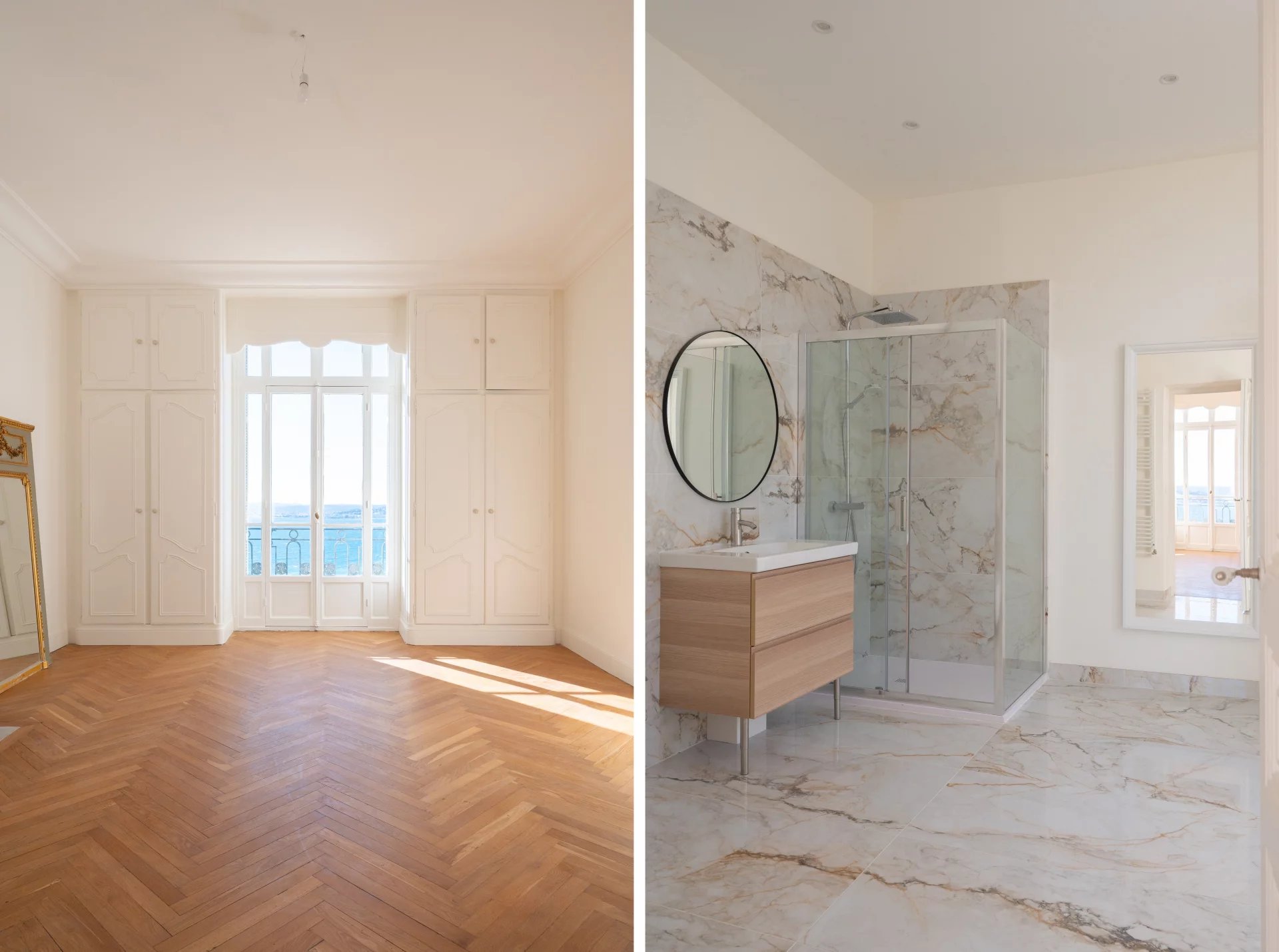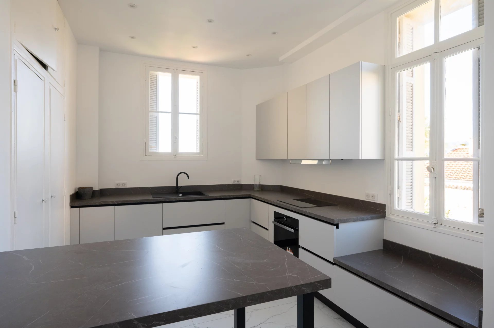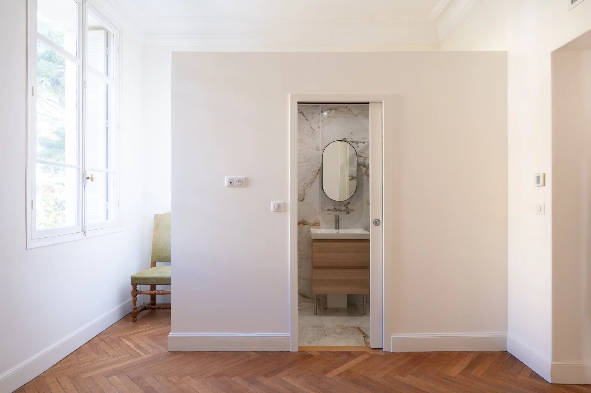 Ce vaste appartement a été rénové, avec de belles prestations et matériaux de qualité.
