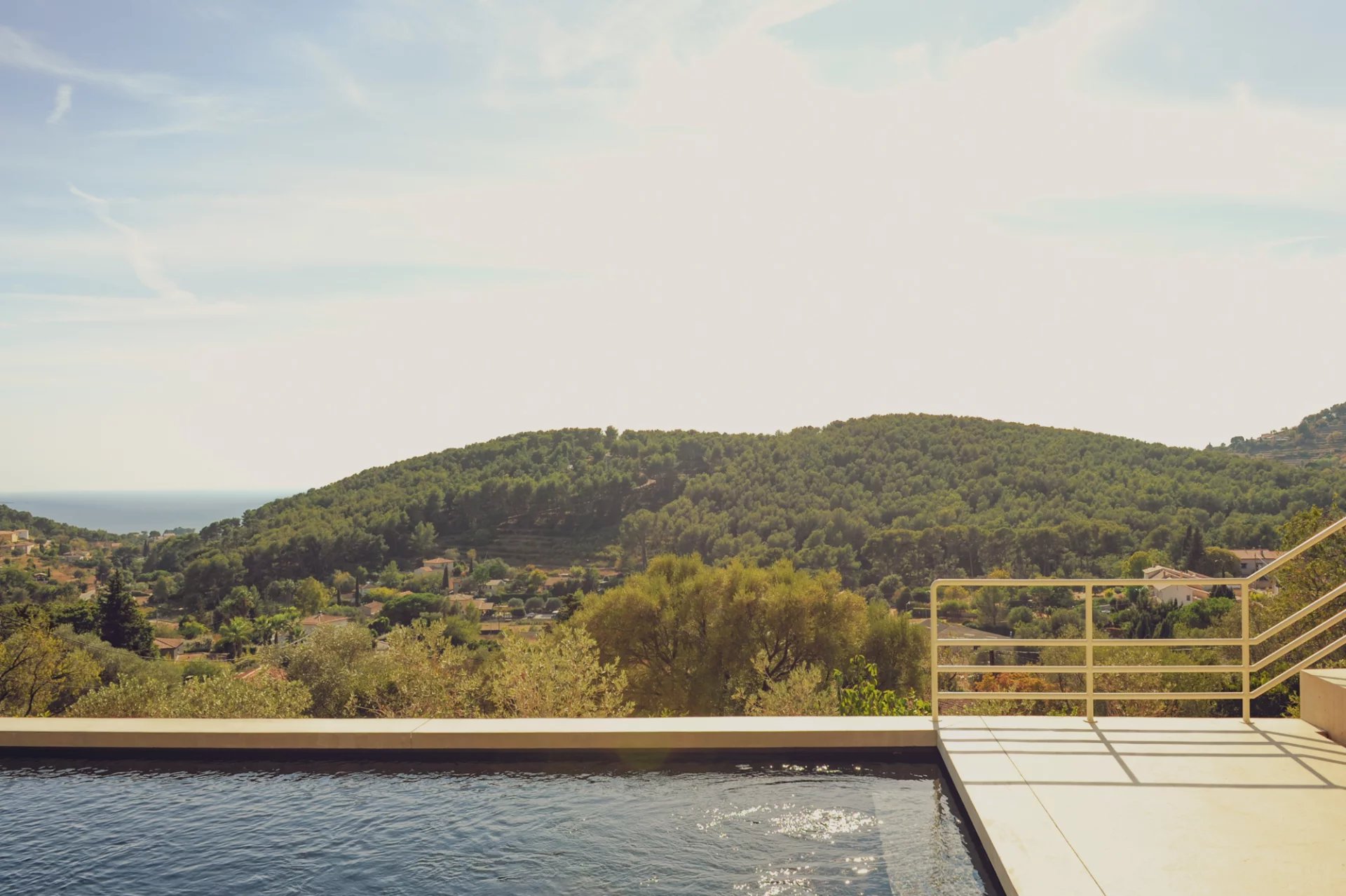 La villa est exposée plein sud laissant apprécier une vue vers l’horizon mariant les collines et la mer.
