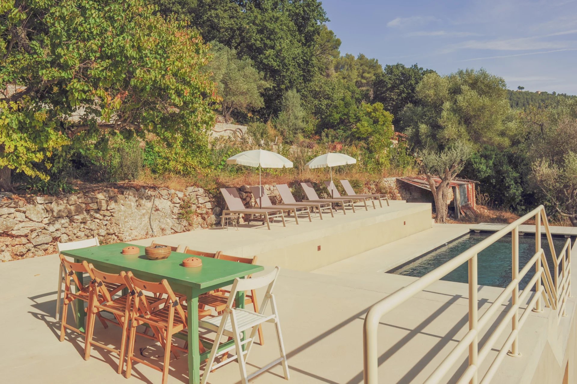 Ancrée au bord de la Méditerranée, la villa Anémone se déploie sur un site sauvage et paisible alliant relief, restanques d’oliviers et jardins d’agrumes.