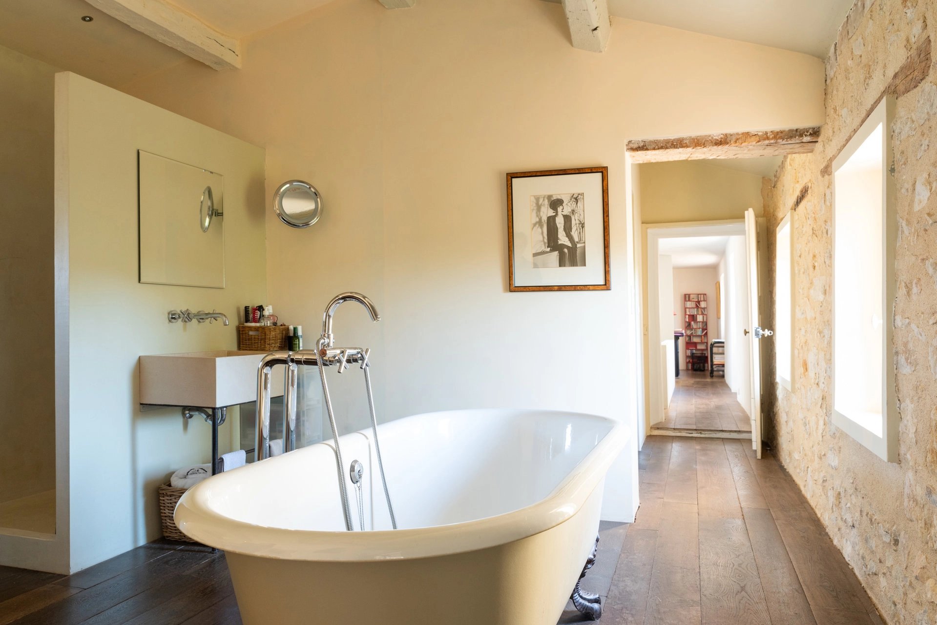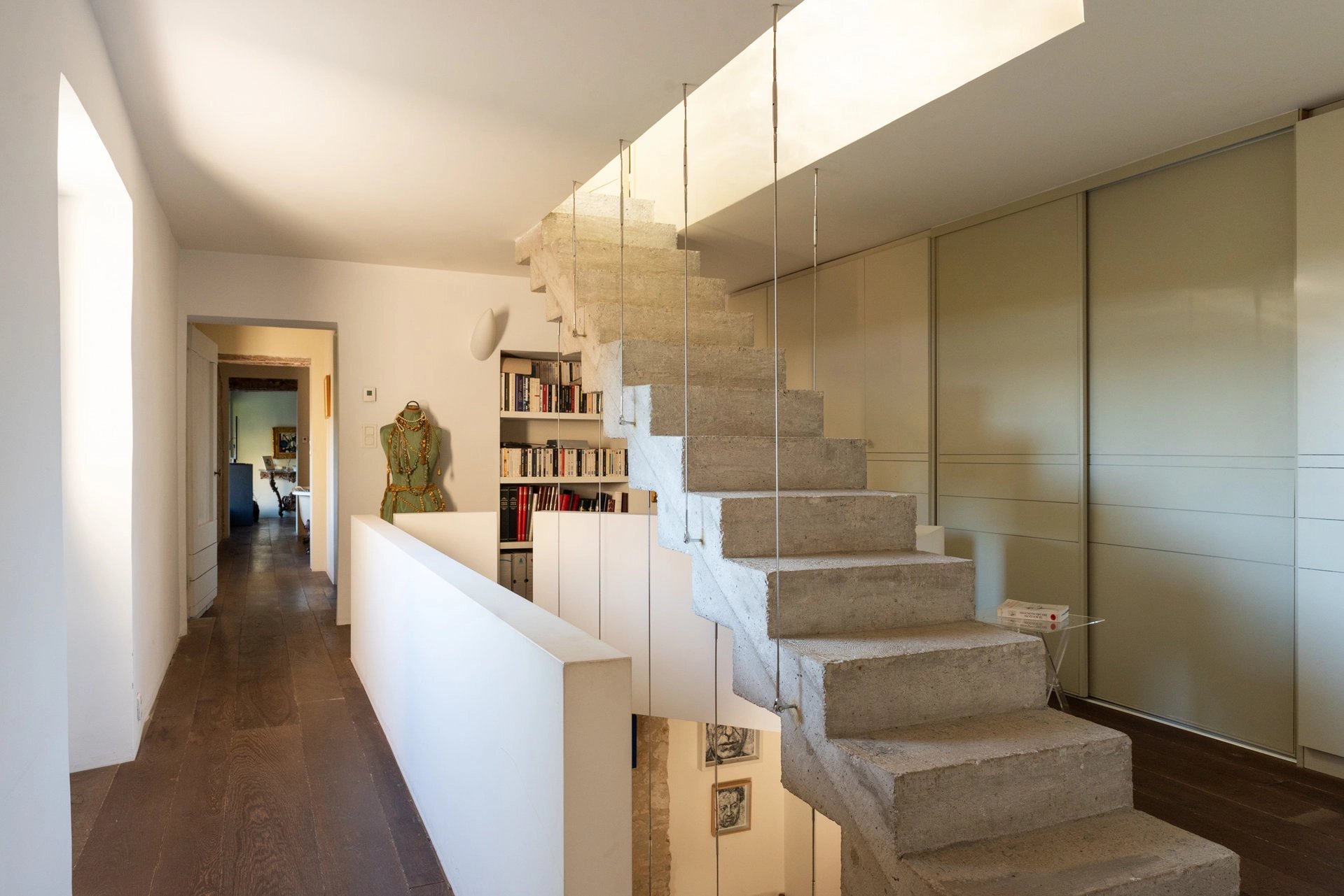 Au premier étage : une suite de maître avec mezzanine ouvert sur terrasse tropezienne, mezzanine, bureau, toilettes indépendant, deux dressings ; au deuxième et dernier étage une chambre avec salle de bains et toilettes.