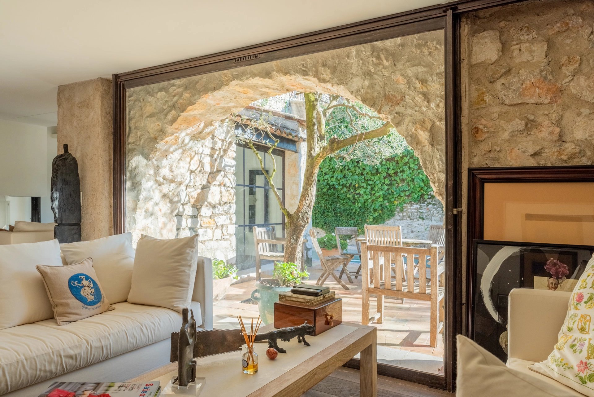 Située au cœur du village de La Colle sur Loup, ancienne capitale de la rose à parfum, cette maison de 1780, a été rénovée une première fois avant 1992 par l’architecte CHAPU puis pour partie en 2013 par la décoratrice Jacqueline MORABITO avec des prestations et matériaux qualité.