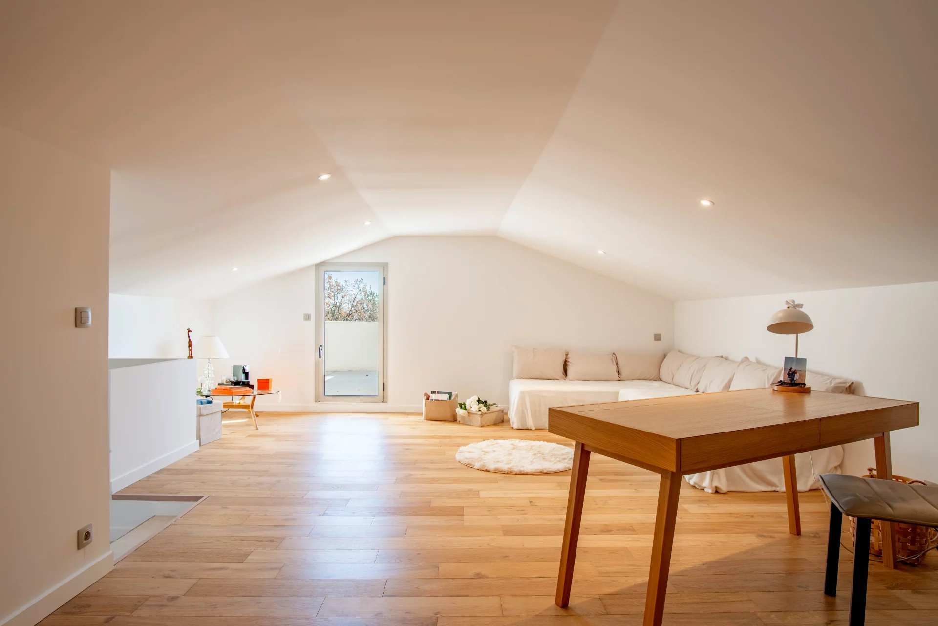 Un terrain attenant avec piscine au sel et parking complètent les prestations de cette belle villa.