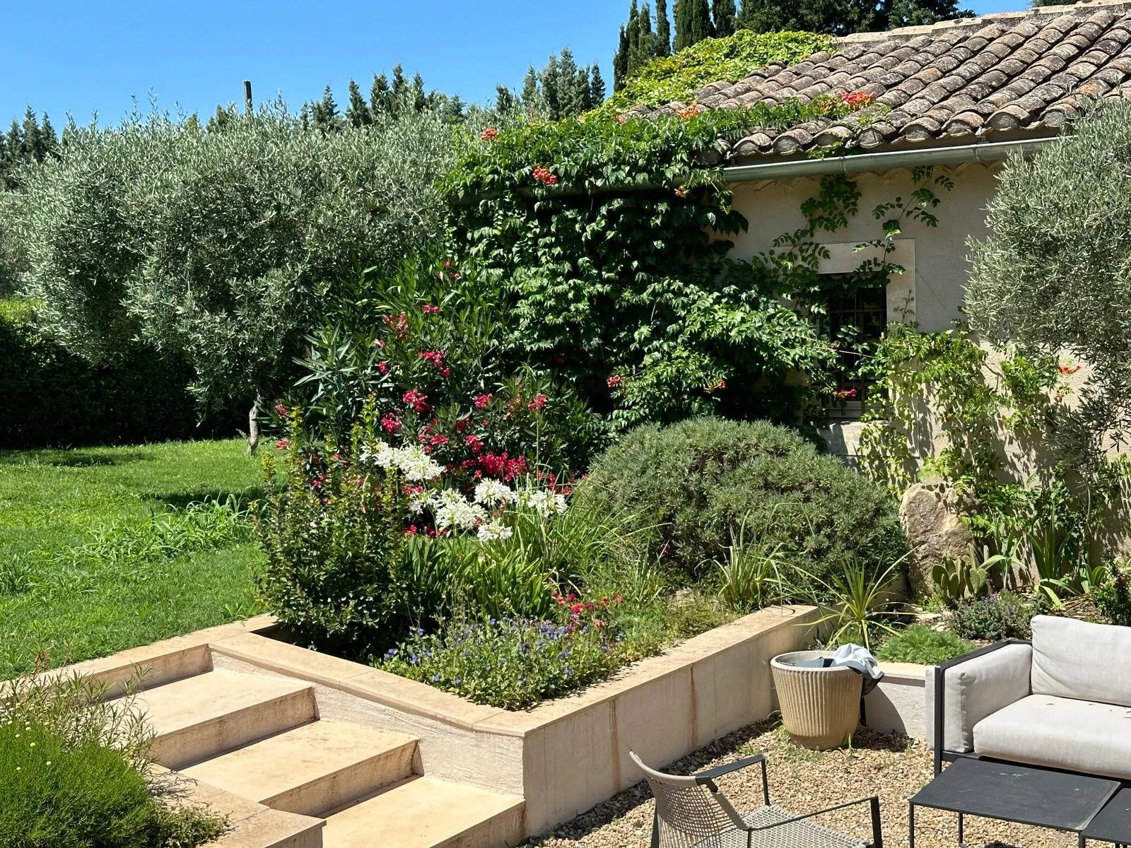 Le jardin a été étudié et paysagé avec raffinement et soin afin de sublimer cette demeure familiale.