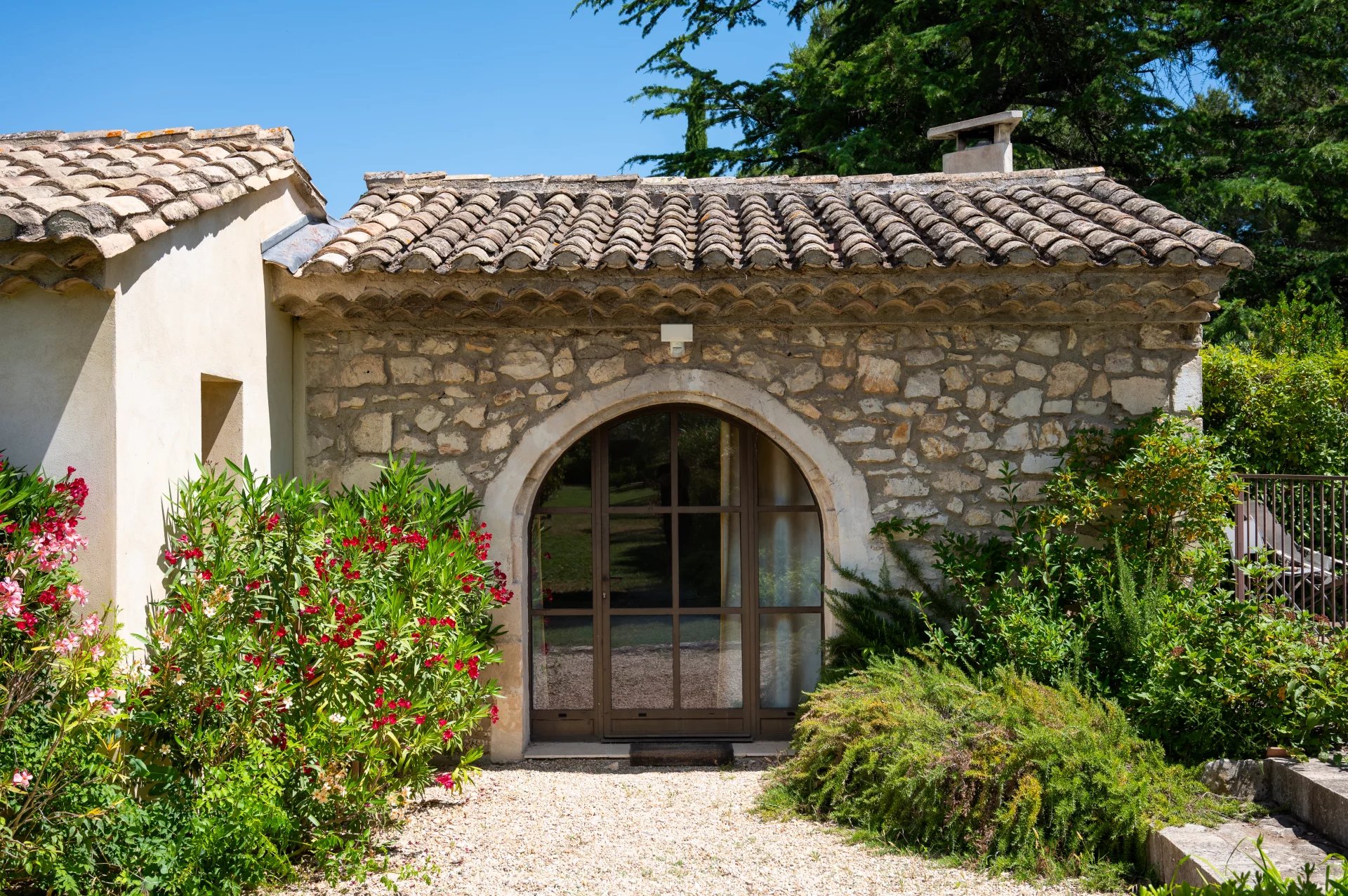 Une jolie dépendance en pierre entièrement rénovée accueille une cinquième chambre avec sa salle d'eau.