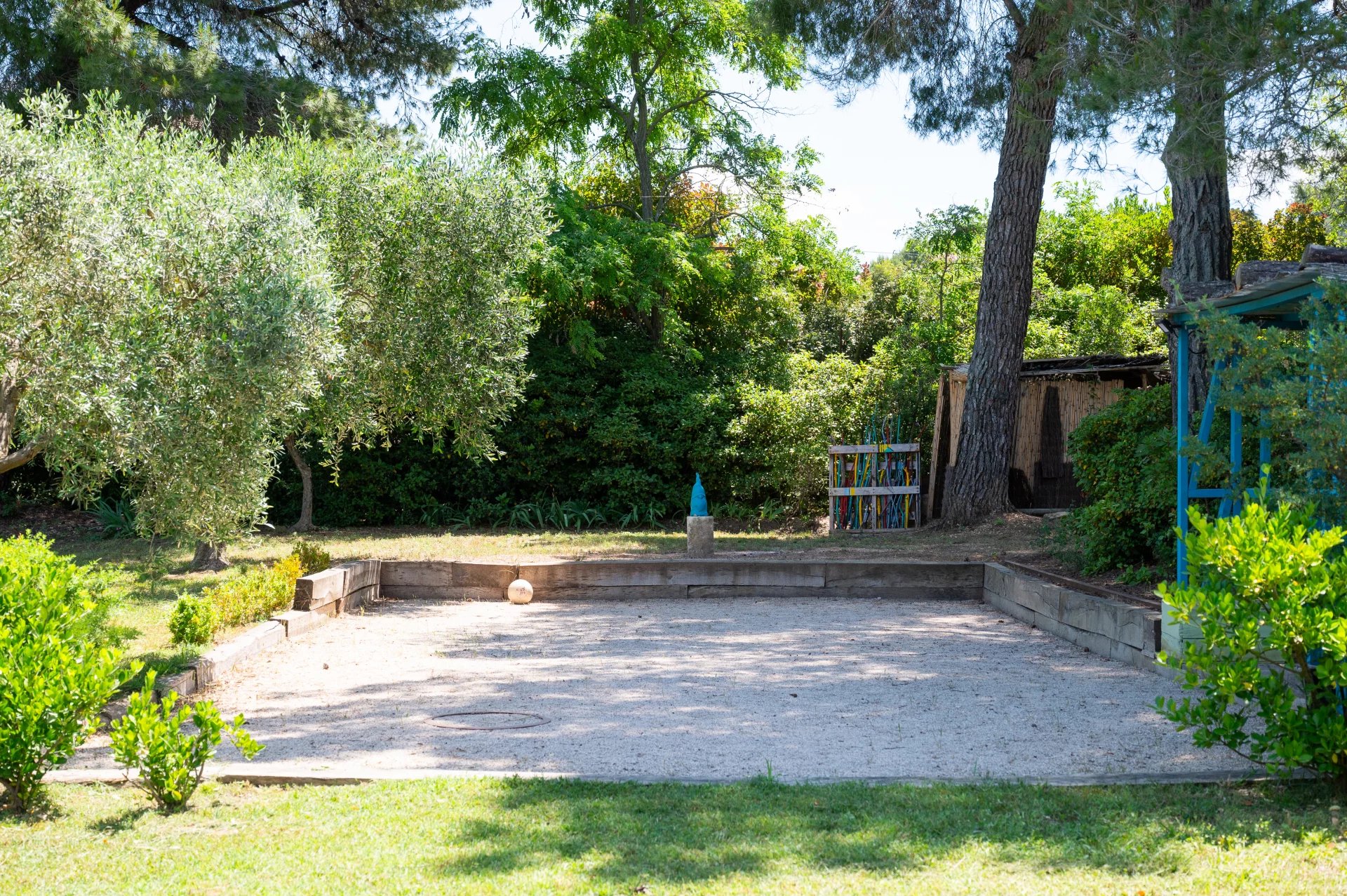 Le parc permet de profiter d'un bel espace piscine à l'abri des regards et sécurisée ainsi que d'un terrain de pétanque et sa petite cabane originale.