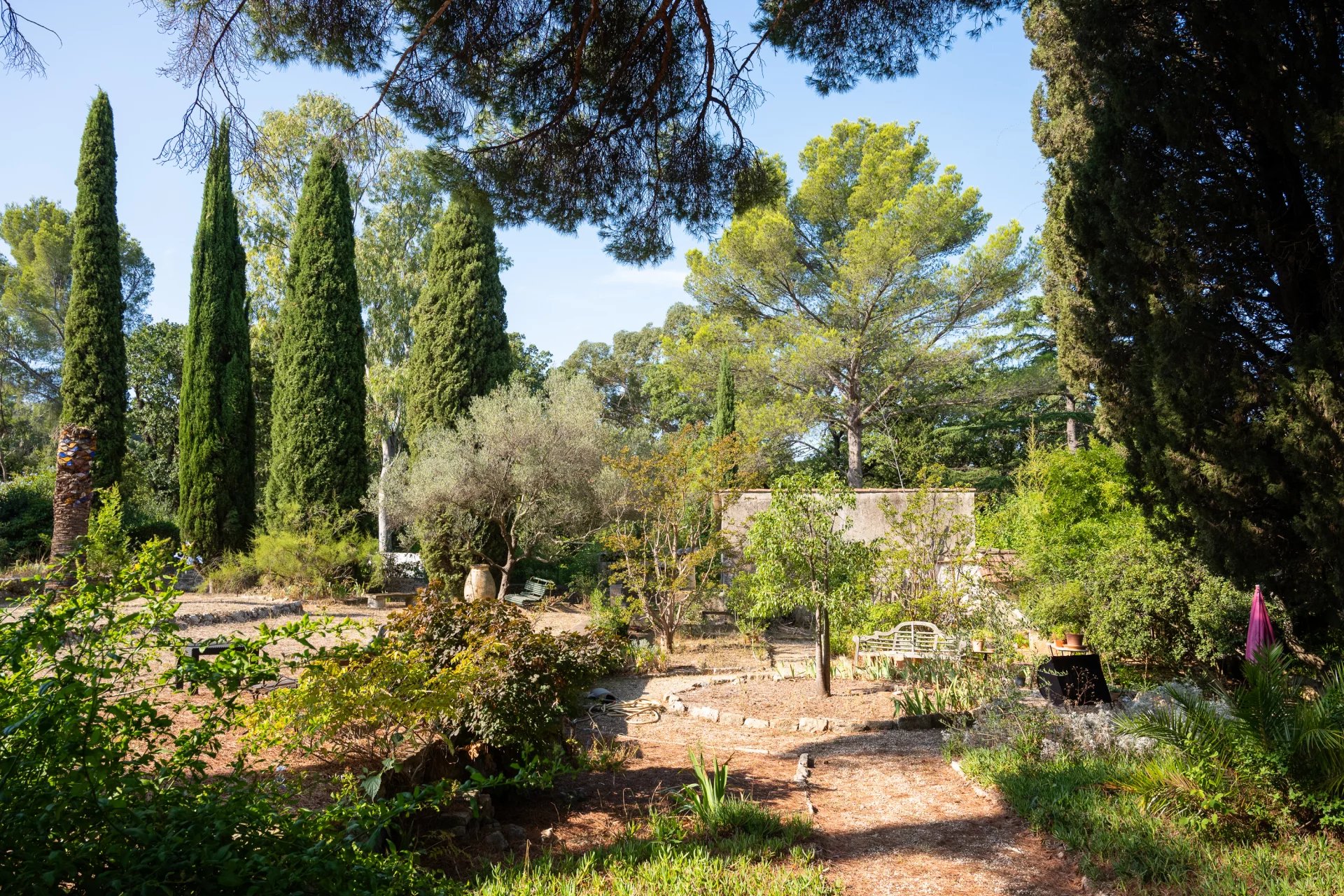 Le terrain de 3860m2 arboré possède de nombreuses terrasses avec bassin, lavoir et pourra accueillir sans difficulté une vaste piscine.