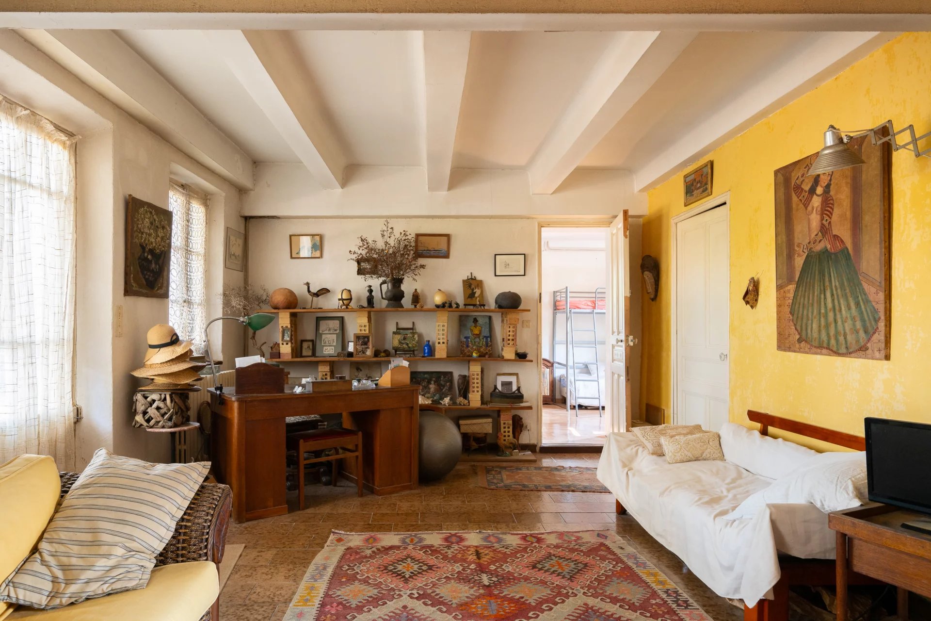 Elle est actuellement divisée en deux habitations, elle est agrémentée d'un bâtiment annexe de 67 m2 avec son garage attenant .