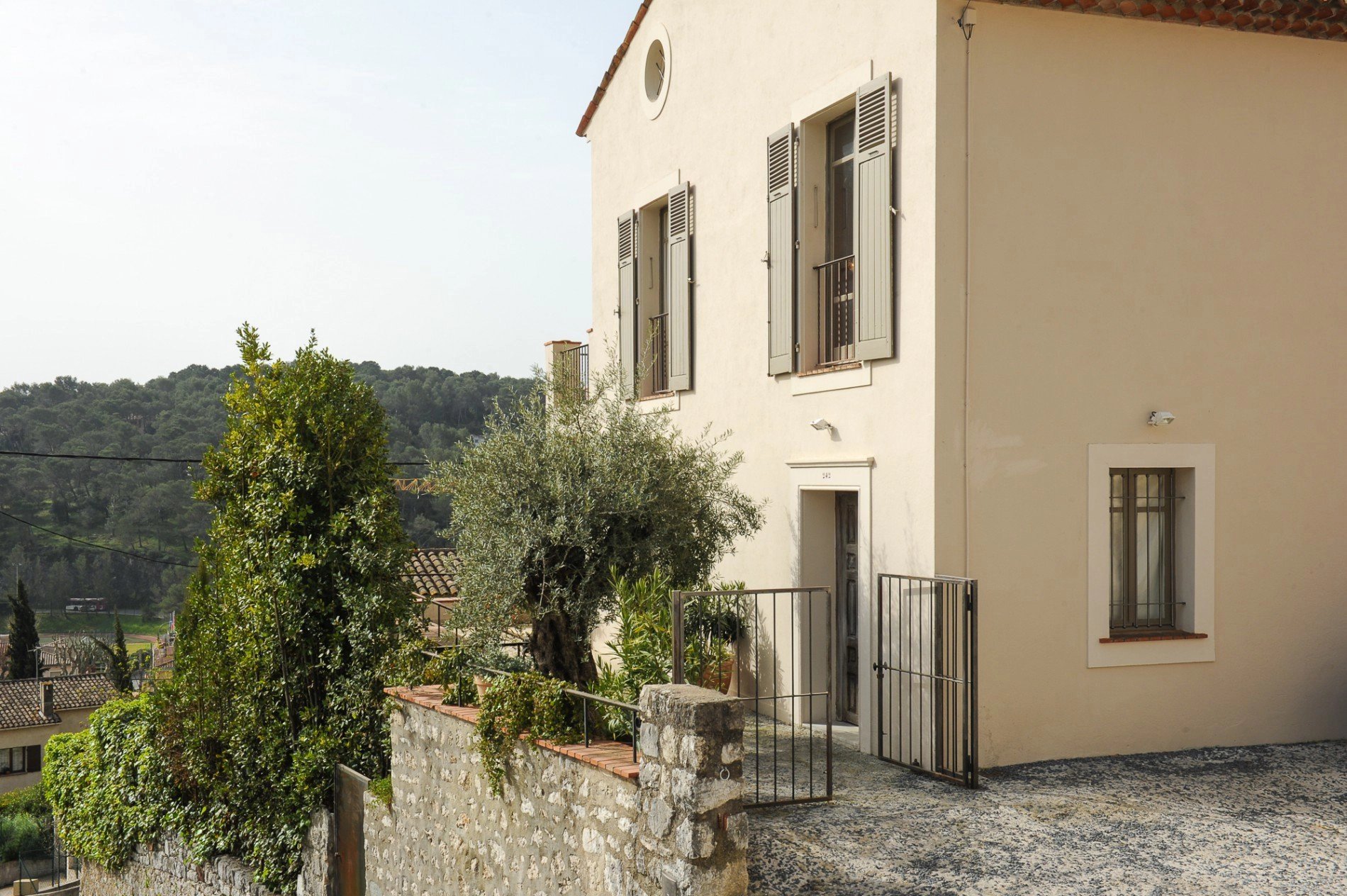 La demeure développe environ 200 m2 de superficie habitable, sur une parcelle de terrain paysager de 414m2. Ses trois niveaux se composent : au rez-de-chaussée de l’espace vie, à l’étage de l’espace nuit et au rez-de-jardin des pièces techniques et d’un vaste atelier d’artiste, le tout agrémenté de multiples terrasses sur chaque niveaux permettant de profiter du calme et du soleil de l’arrière pays.