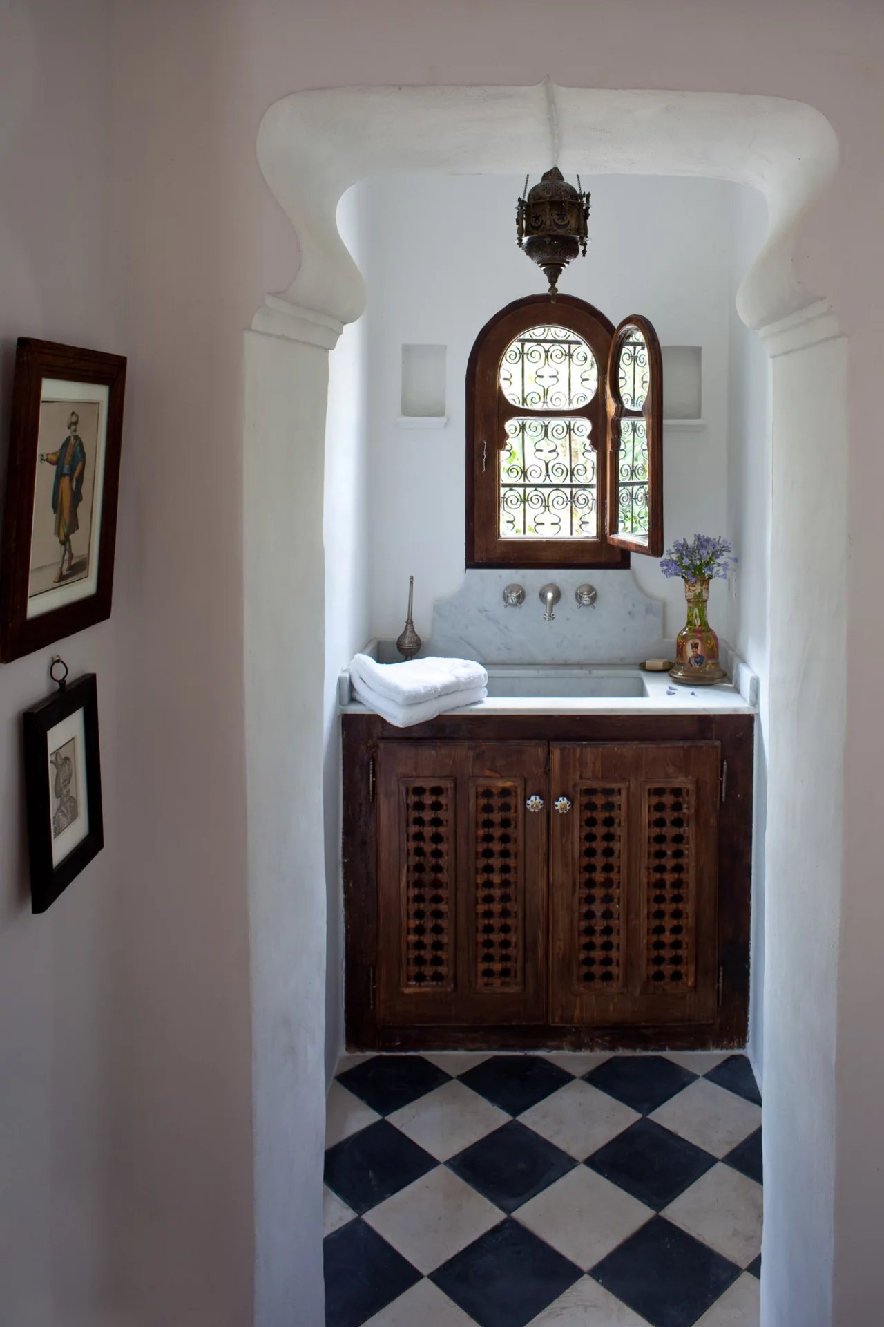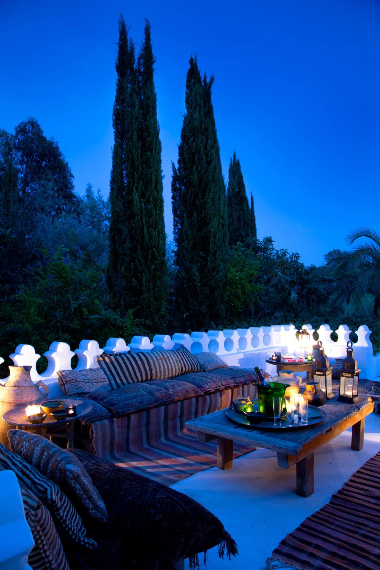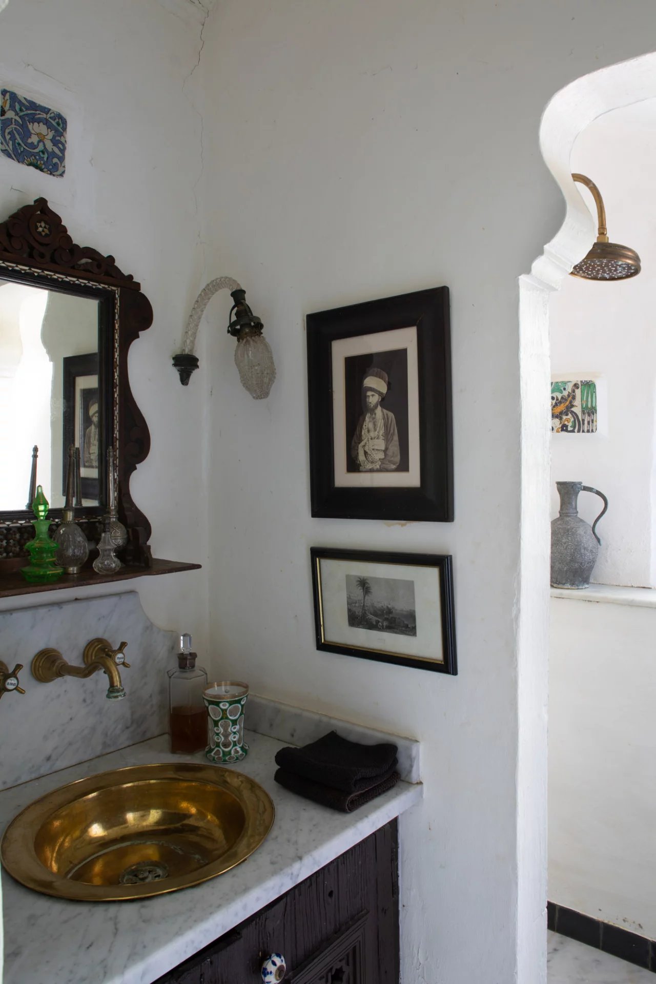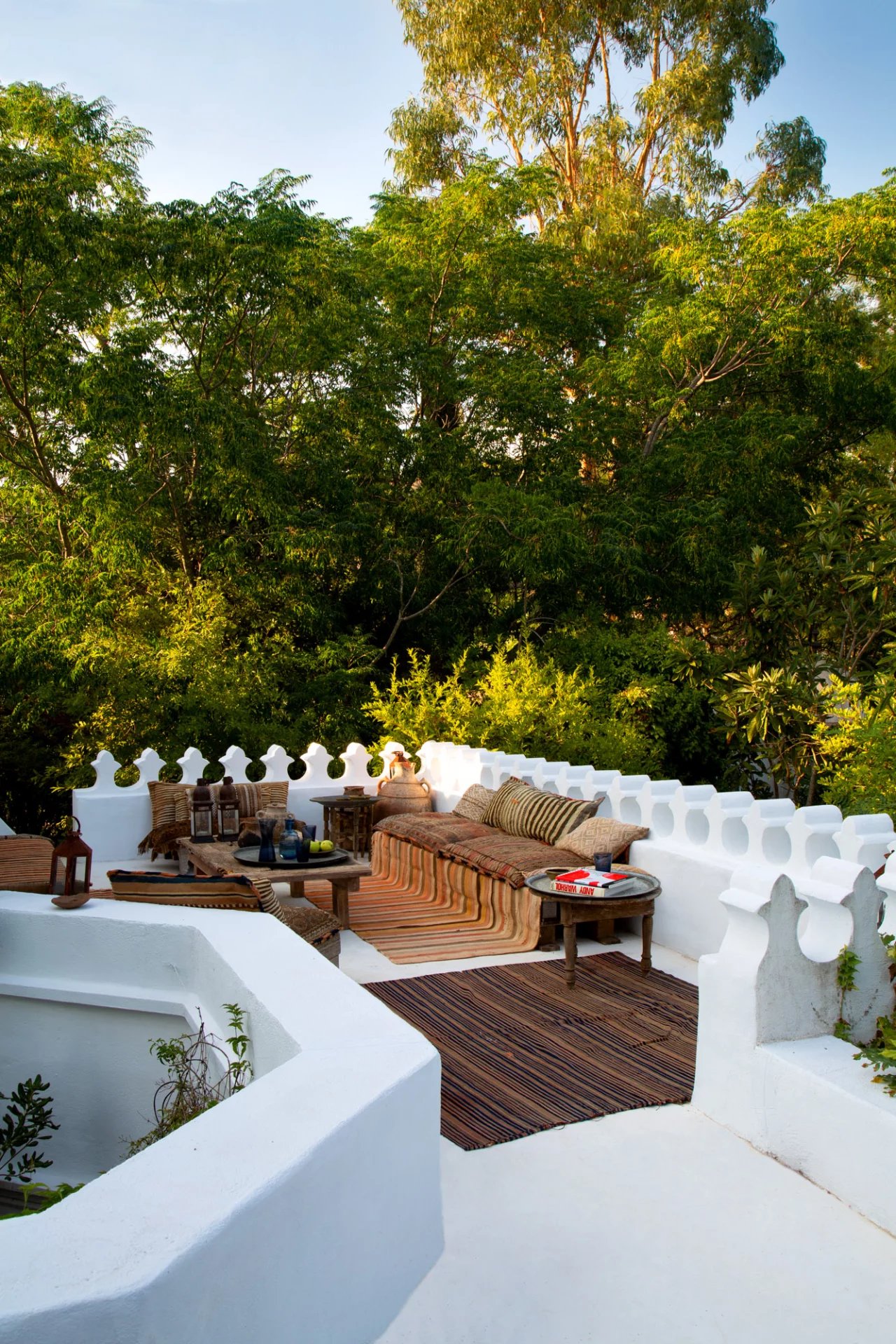 La nature luxuriante fusionne avec le style orientaliste de cette petite folie. Entièrement planté par l’architecte il y a quelques années, la nature s’invite désormais partout ; L’eau vert émeraude de la piscine bordé d’un muret blanc évoque les bassins d’Afrique du Nord.
