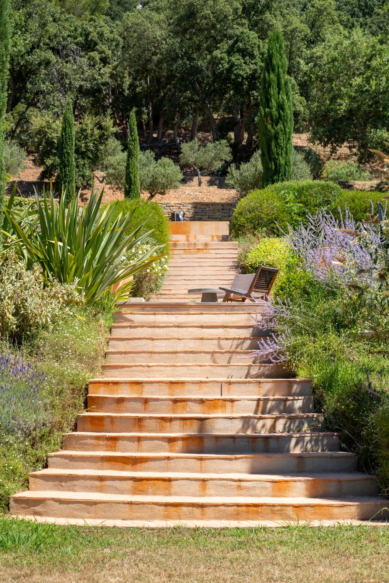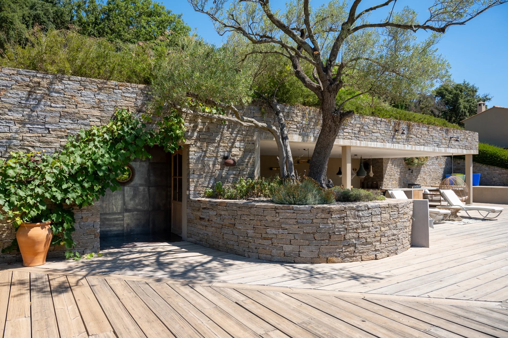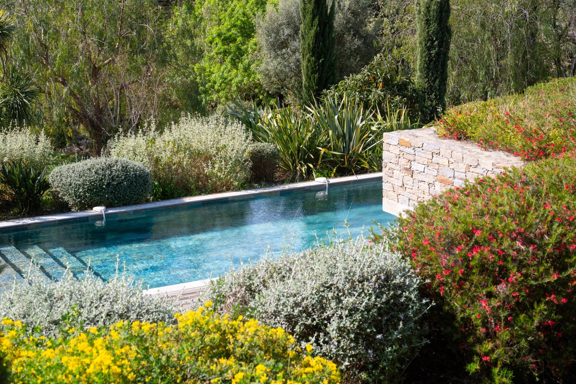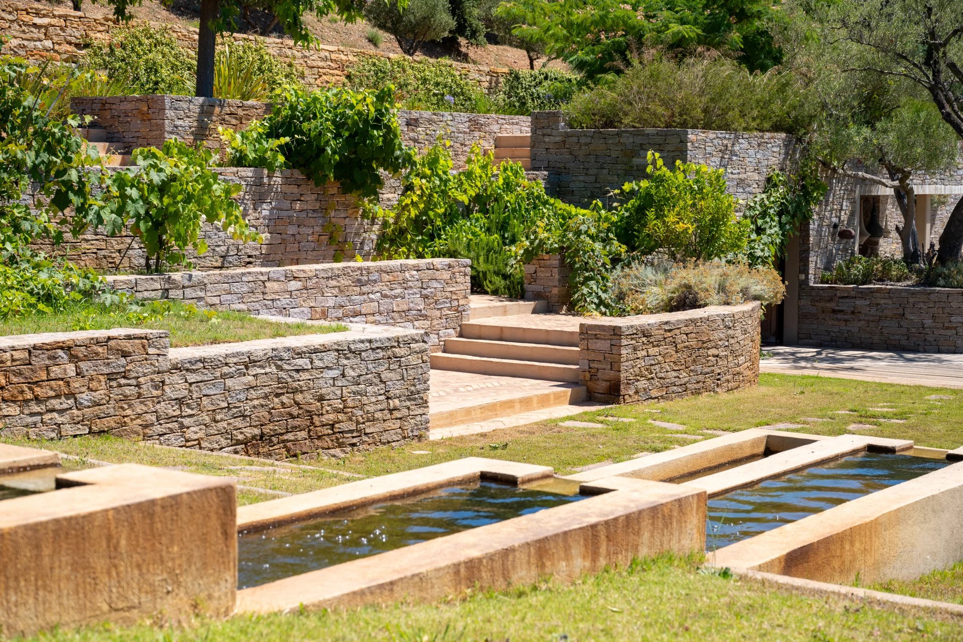 Le jardin est paysagé avec soin, structuré de magnifiques murs en pierres, de plusieurs bassins d'agréments, il permet de profiter des extérieurs selon ses envies.
