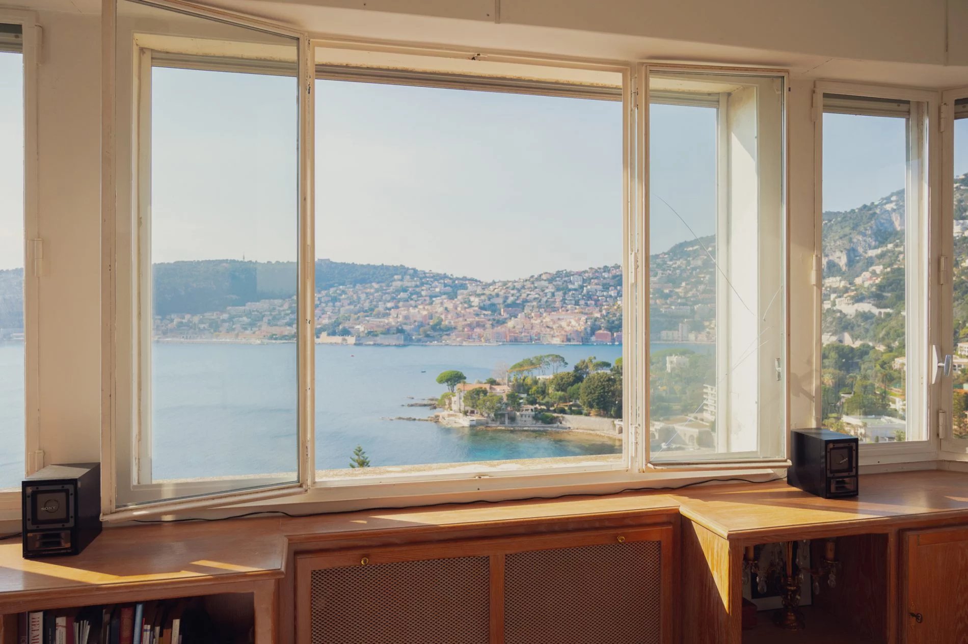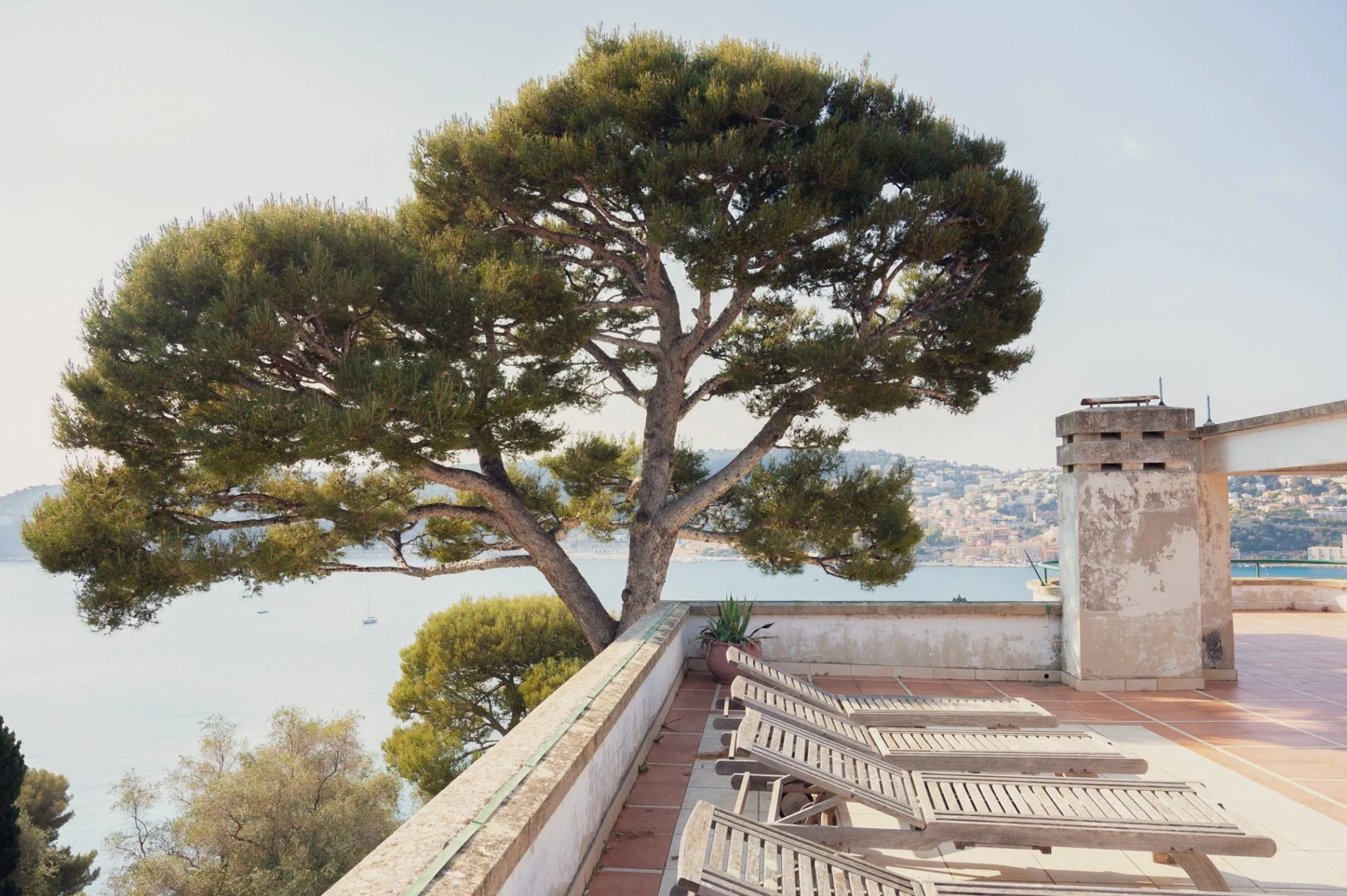 Un clin d’œil également à l’architecture navale, à l’image du casino de Saint-Jean-de-Luz de Robert Mallet-Stevens en 1928, on retrouve les ouvertures à l’esthétique de hublot et les terrasses bordées de garde-corps en tube d’acier comme autant de bastingages autour des coursières d’un navire. En parcourant le grand escalier extérieur, de la terrasse surplombant la rade de Villefranche à la manière d’un pavois au toit-solarium, on profite du paysage et de la brise marine comme sur le pont-promenade d’un paquebot. Au sommet de la maison, le lanterneau a des airs de sémaphore surmonté par une vigie. Une chambre à l’ouest s’ouvre vers l’horizon, telle une passerelle de pilotage, seule la barre manque.