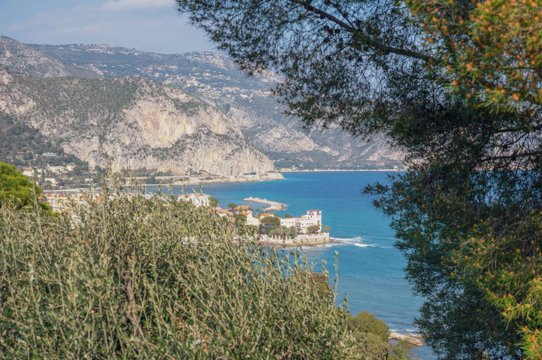 En position dominante, non loin de la villa Ephrussi de Rothschild, les vues vont de l’Italie au cap d’Antibes, offrant un panorama à 360° sur ce magnifique paysage méditerranéen. L’idée majeure de l’architecte était d’implanter la construction perpendiculairement au système de terrasses qui épouse l’important dénivelé du terrain d’assise, d’anciennes restanques agricoles complantées d’oliviers. « La Ligne Droite » se présente ainsi comme un rectangle allongé mesurant plus de 30 mètres de longueur, gravissant la pente sur quatre niveaux étagés ; elle est flanquée au nord de trois escaliers rectilignes superposés qui témoignent de la hiérarchie des fonctions et participent à la justification de son appellation.