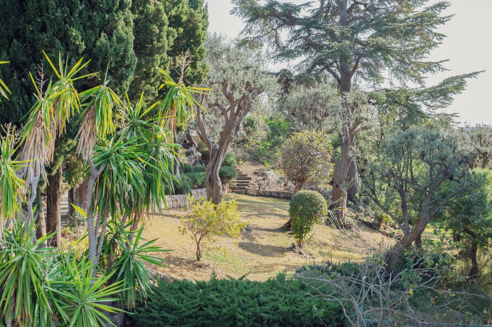 Le parc comprend à l’Ouest les espaces de stationnement, garages, car-port, le funiculaire menant aux différents niveaux, une calade ; un barbecue classé également au titre des Monuments Historiques prenant place sur l’ancienne emprise d’un moulin sur la crête et surmonté par une vigie dont les vues mènent de la citadelle de Villefranche jusqu’à la villa Kerylos et au port des fourmis à Beaulieu-sur-Mer. Le jardin paysager largement fourni se compose de nombreuses plantes endémiques : pins parasols, cyprès, oliviers, bougainvilliers, palmiers, cèdre et autres essences justement choisies par la propriétaire. La piscine chauffée de 13 mètres par 6 mètres, jouxte la maison dans une ancienne restanque engazonnée.