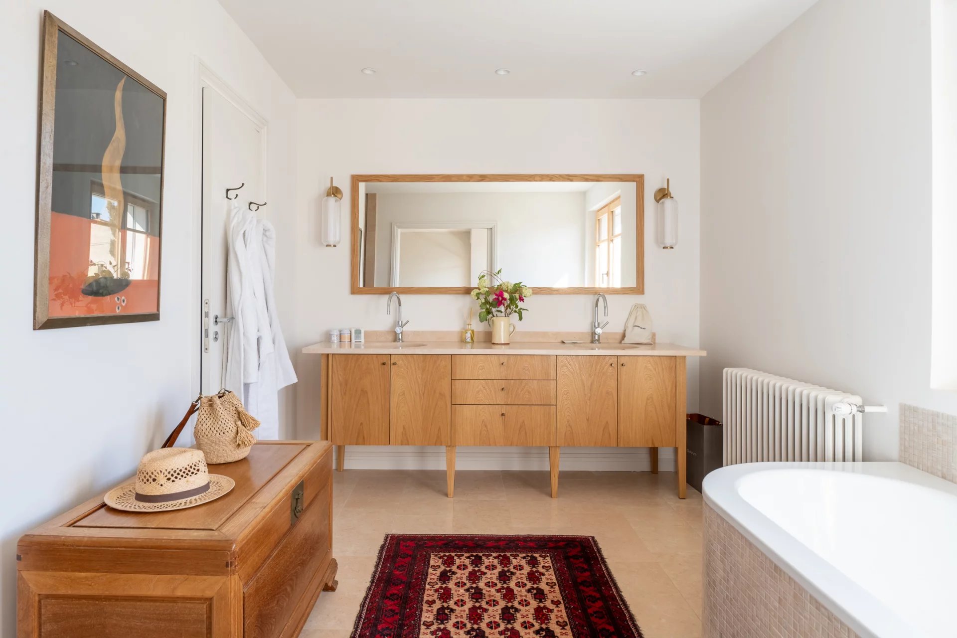 Au premier étage : Suite parentale avec salle de bains, douche et WC, suite avec salle de douche, deux chambres partageant une salle de douche.