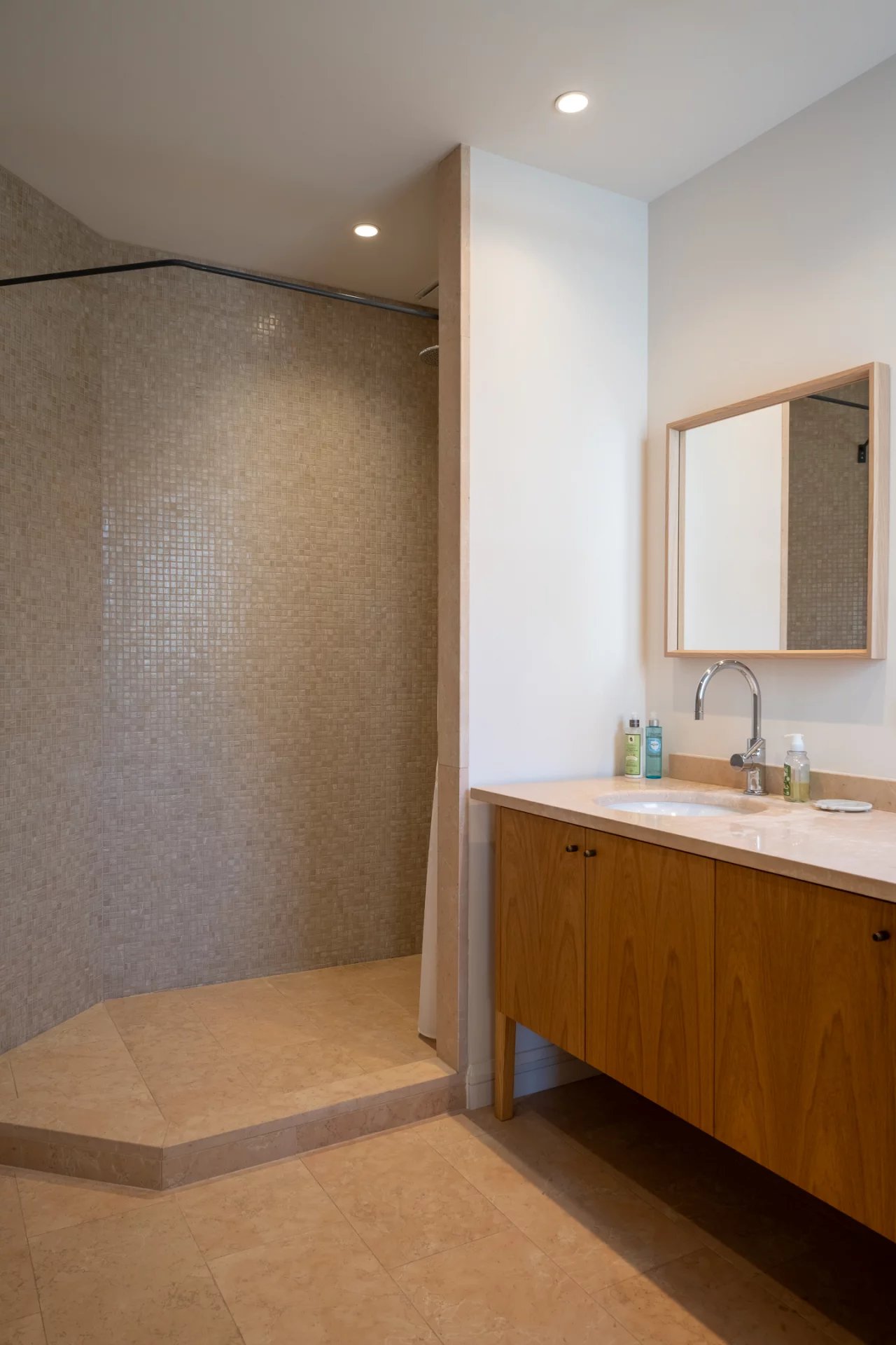 Un jardin arboré vient compléter l’ensemble, offrant un véritable havre de paix et un aperçu sur la Tour de la Fondation Luma, œuvre signée par l’architecte Frank Gehry.
