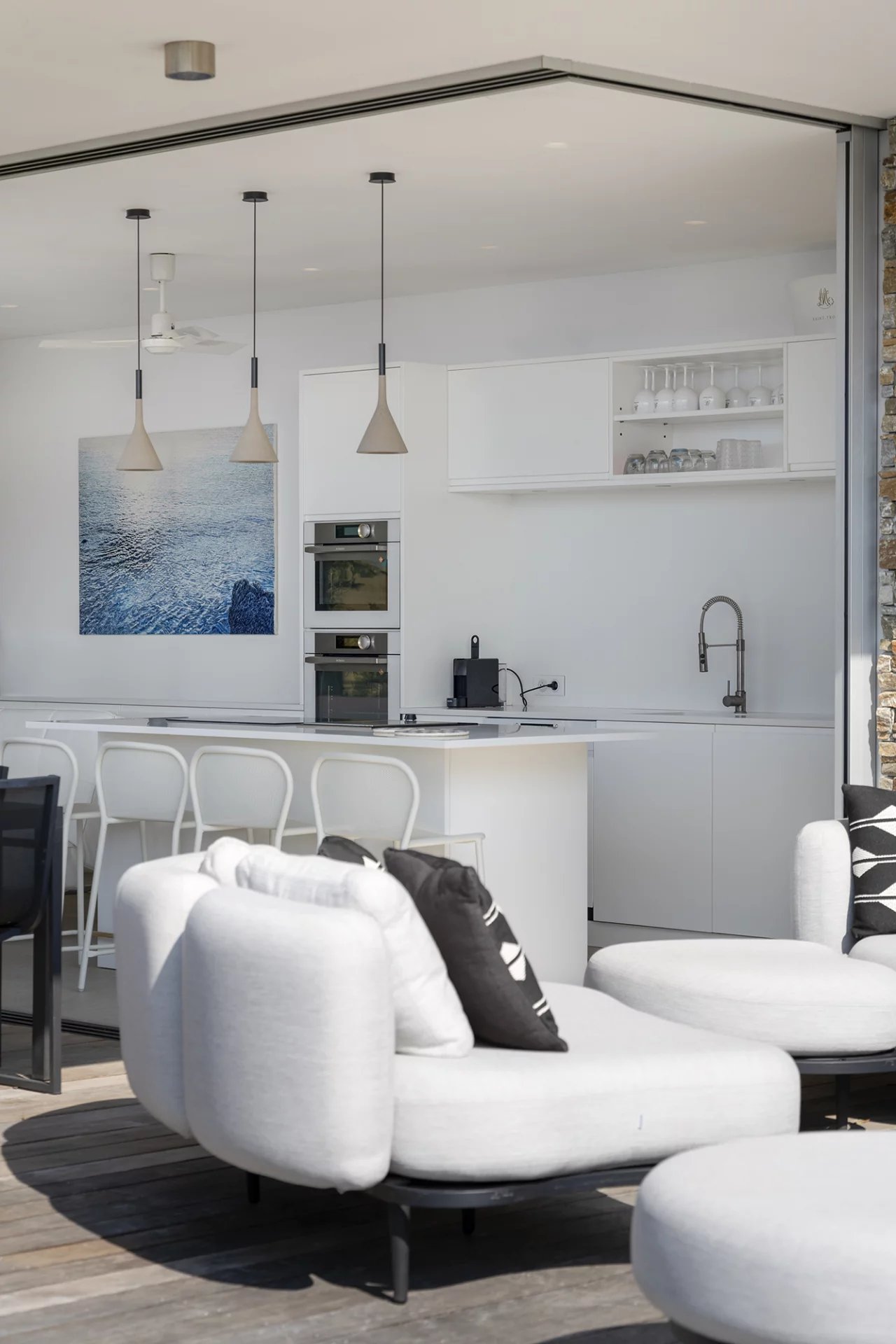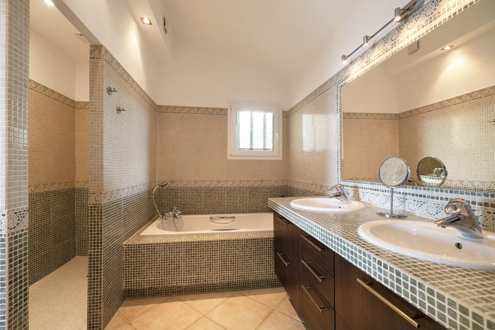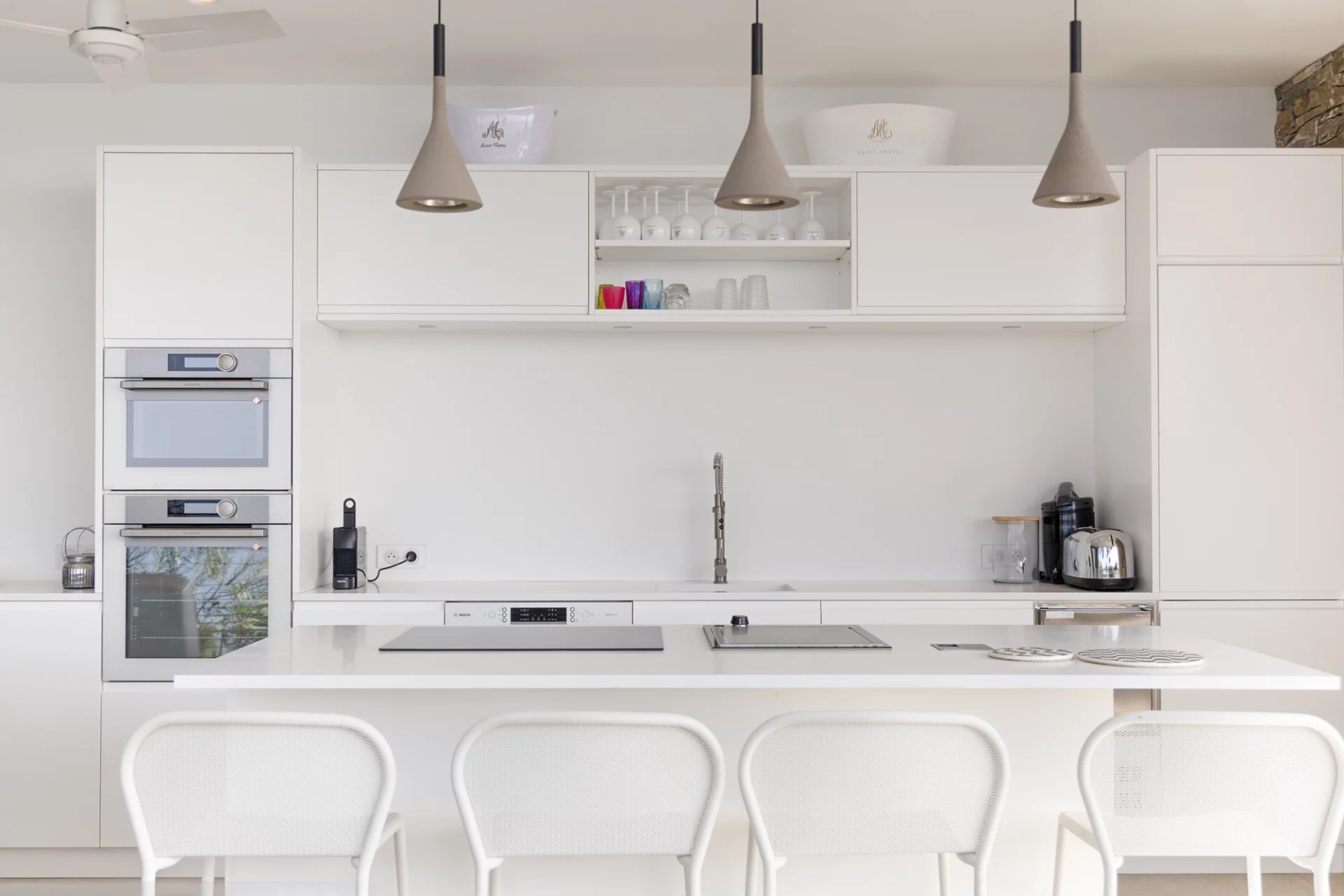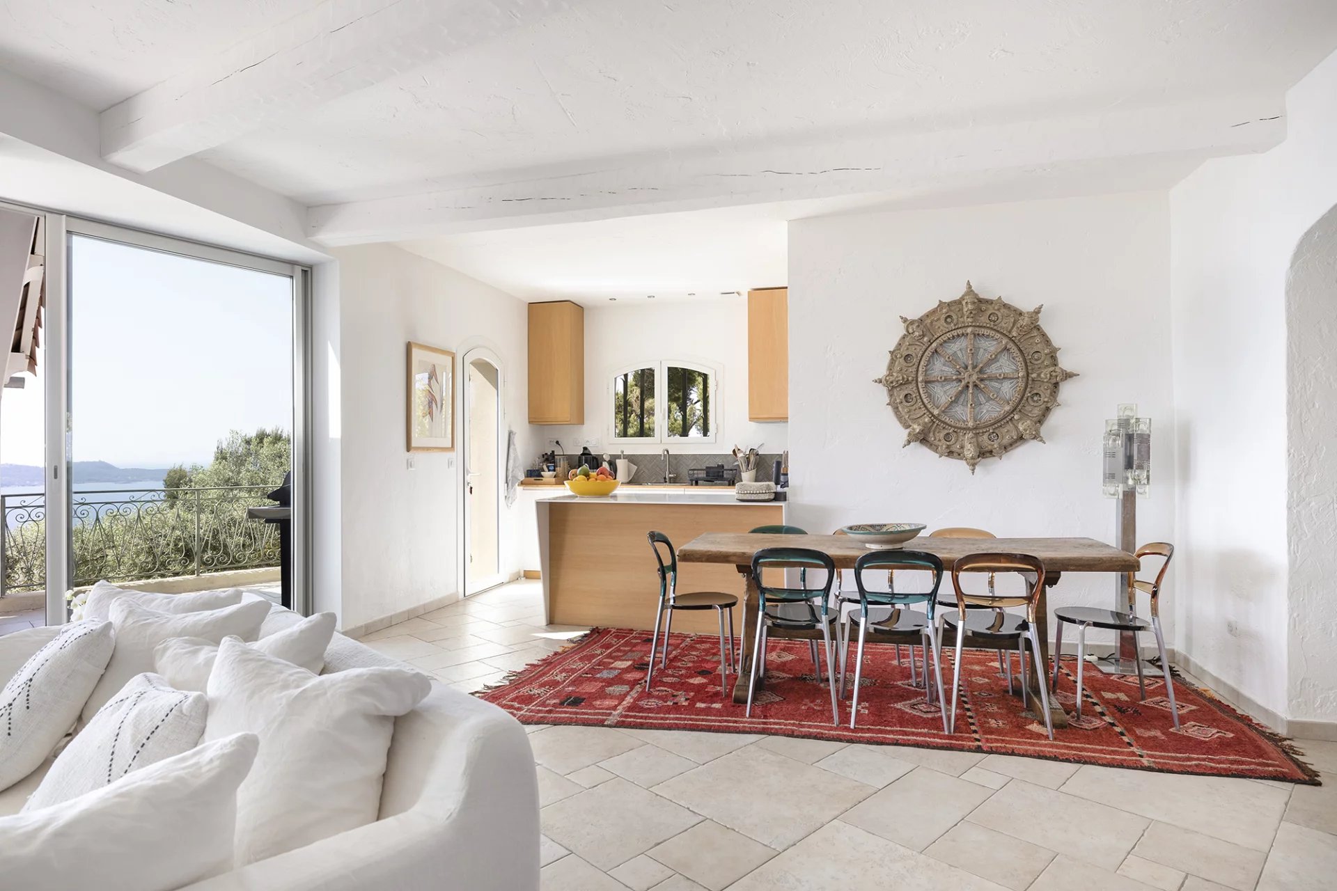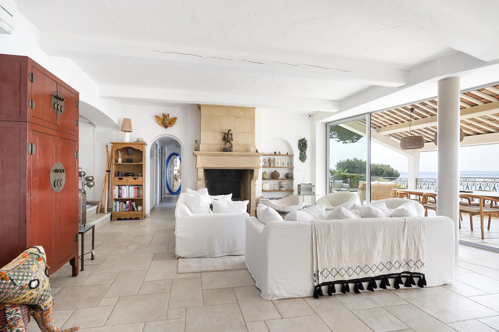Construite dans les années 1980 dans un style méditerranéen, la villa a fait l’objet d’une rénovation complète et d’une extension en 2016, confiée à l’architecte Frédérique Pyra. L’intervention a permis la création d’un pool-house indépendant ainsi que d’une terrasse en bois de 140 m², offrant un cadre de vie contemporain, fonctionnel et résolument tourné vers l’extérieur.