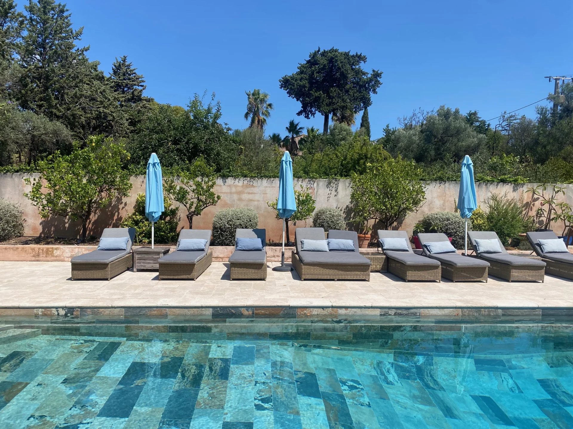 Un bel espace piscine intégralement sécurisé avec pool house permet de prendre sans difficulté ses repas les pieds dans l'eau.