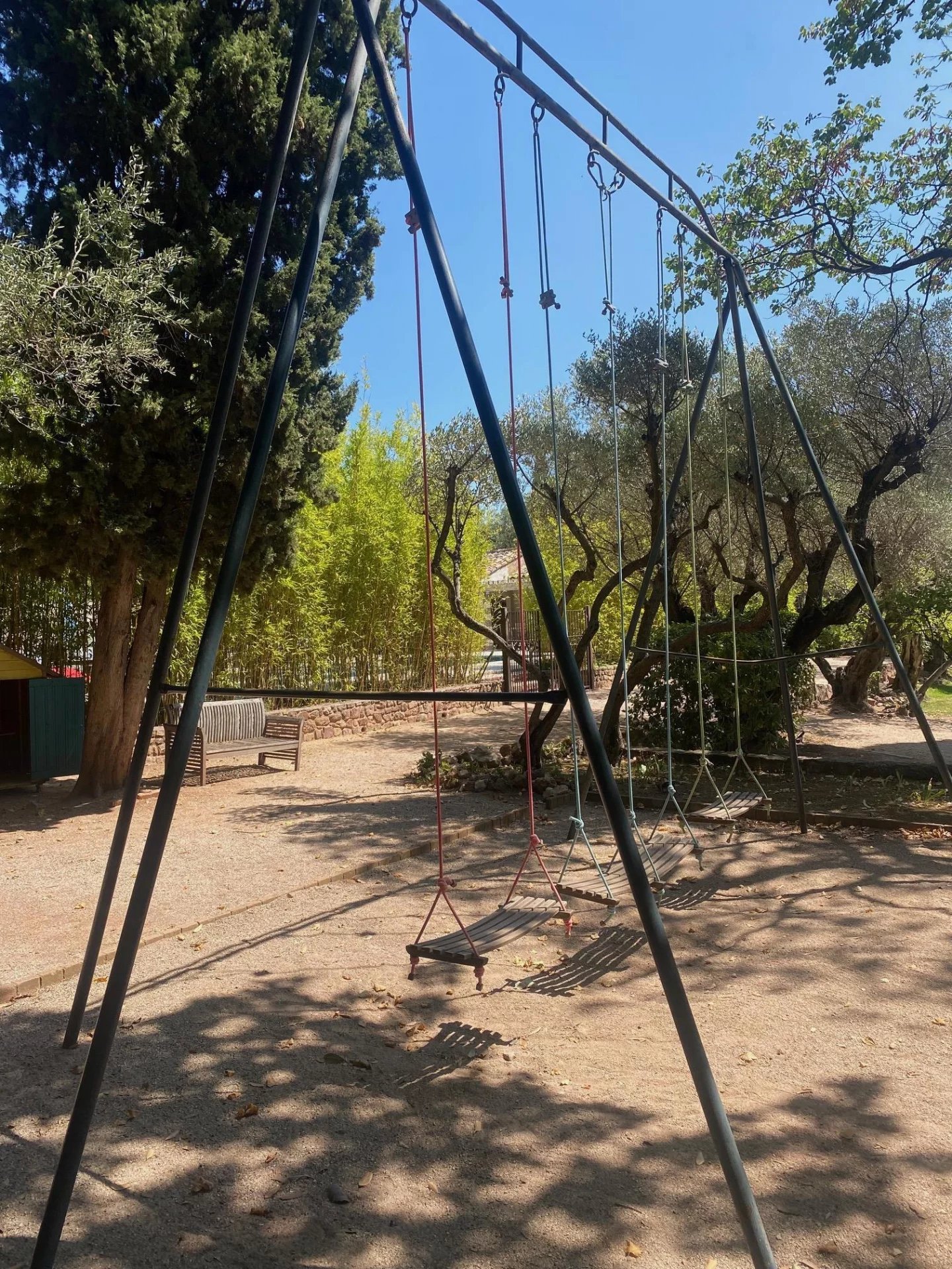 Le terrain plat permet de garer sans difficulté des voitures mais aussi de profiter aussi bien de coin à l'ombre, du portique pour les enfants, ou de s'organiser une pétanque ...