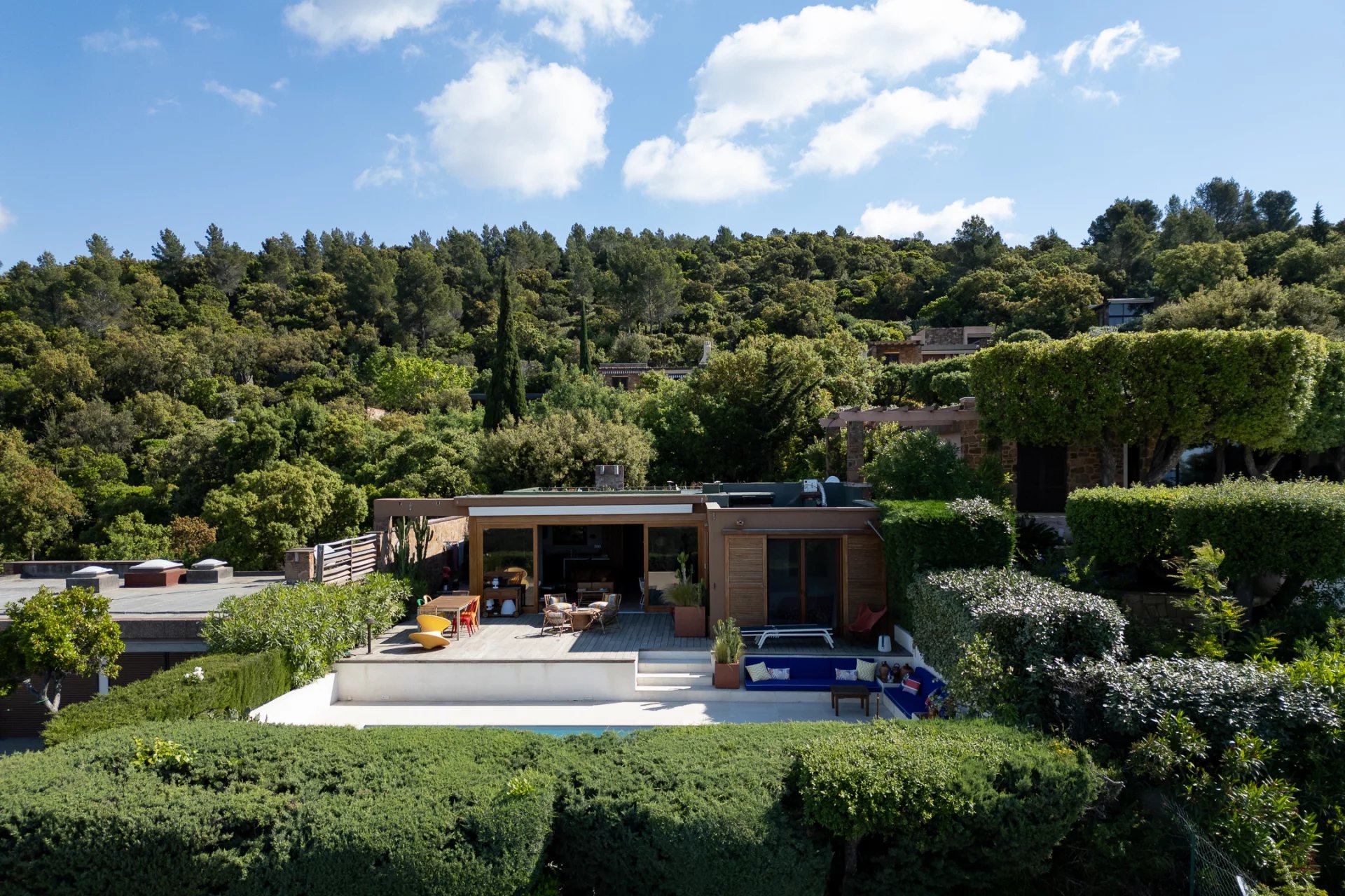 Cette architecture moderniste et intégrée, idéalement située dans un joli domaine clos à Saint-Raphaël, fait face à la mer. Alliant confort, élégance et qualité, cette maison de 95 m² environ de surface totale a été entièrement rénovée en respectant les codes architecturaux originel de ce domaine rappelant ceux du Gaou Bénat, offrant ainsi une parfaite intégration dans son environnement naturel.