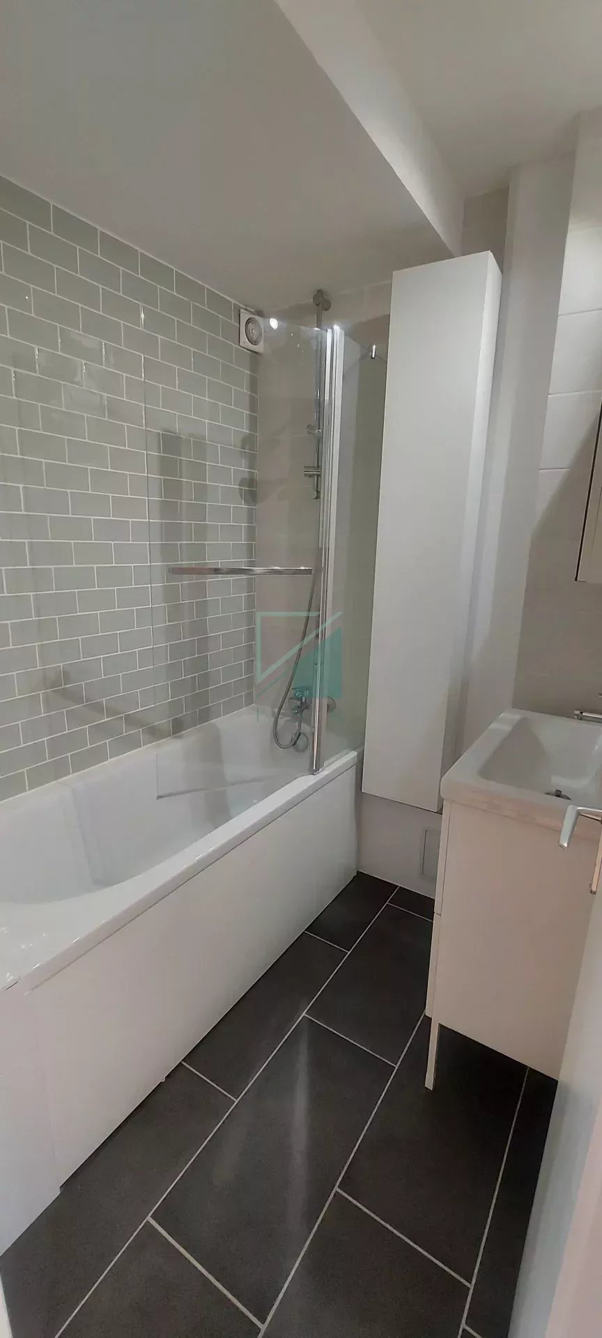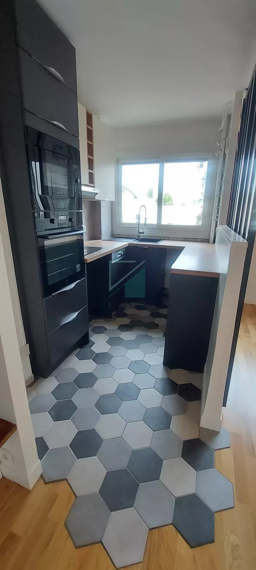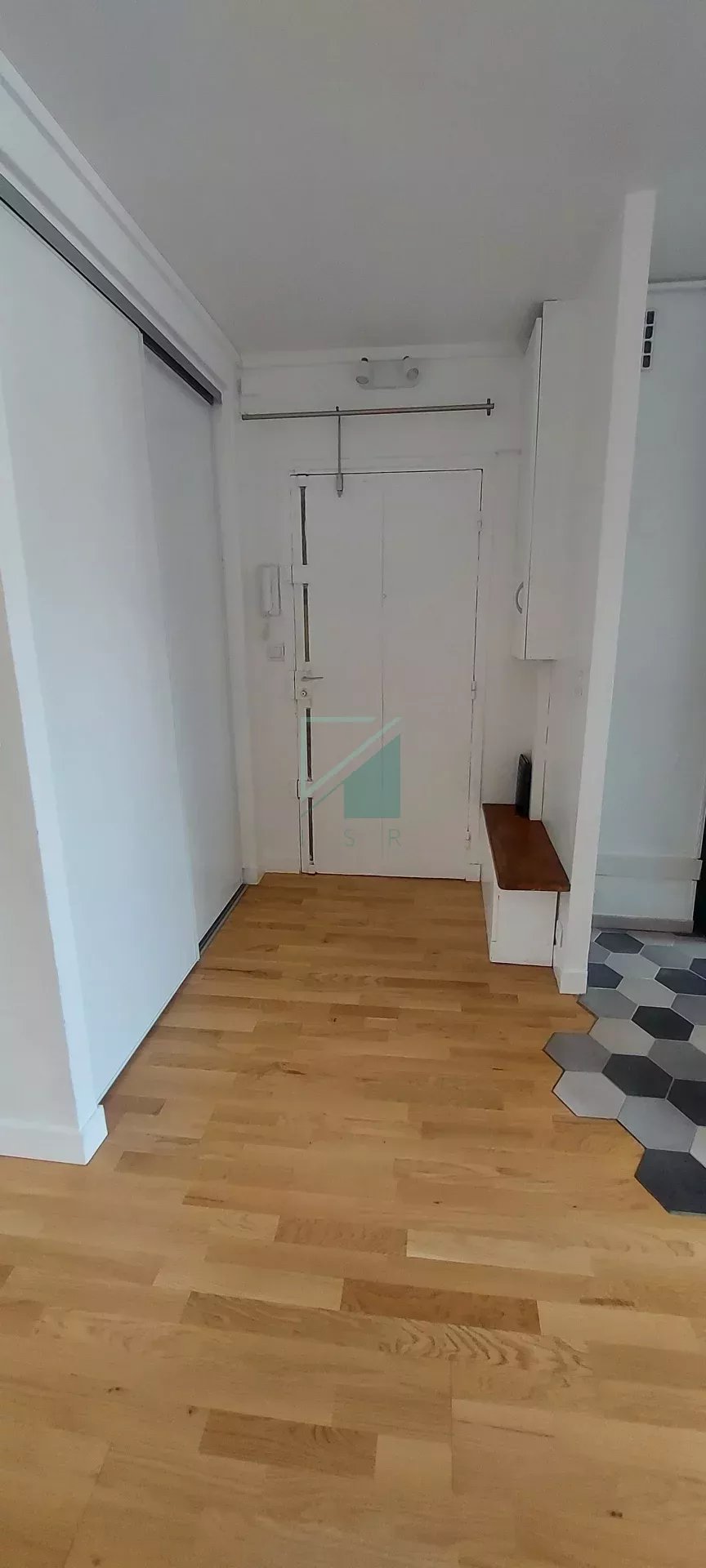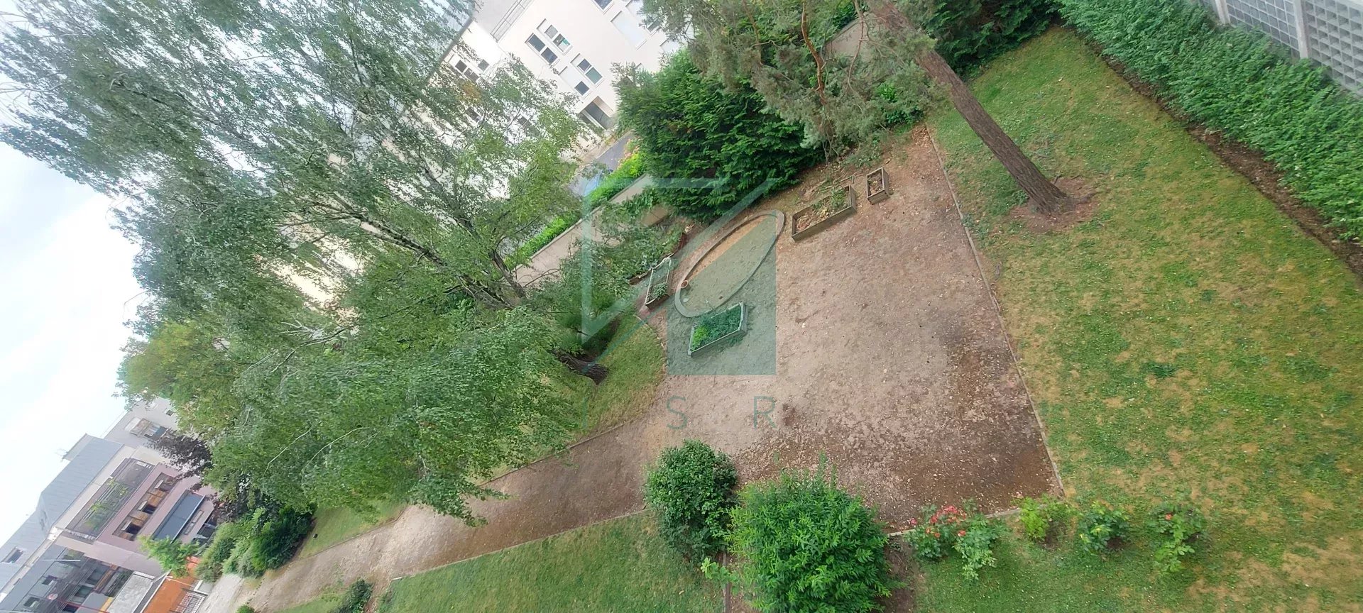 LE PRE SAINT-GERVAIS - Au sein d'une résidence arborée et fleurie, au 3ème étage avec ascenseur, un appartement exposé Est/Ouest, entièrement rénové, comprenant une entrée avec placard intégré, un séjour avec cuisine séparée par une cloison de type verrière atelier, un dégagement, deux chambres, une salle de bain, et un WC séparé. Une cave au sous-sol complète ce bien. Cette résidence sécurisée bénéficie d'un gardien à demeure, d'un local vélos et surtout d'un magnifique jardin collectif. Proximité immédiate de la station de métro HOCHE (ligne 5), du tramway et arrêts de bus. Les commerces et les écoles sont à moins de 5 minutes à pied.