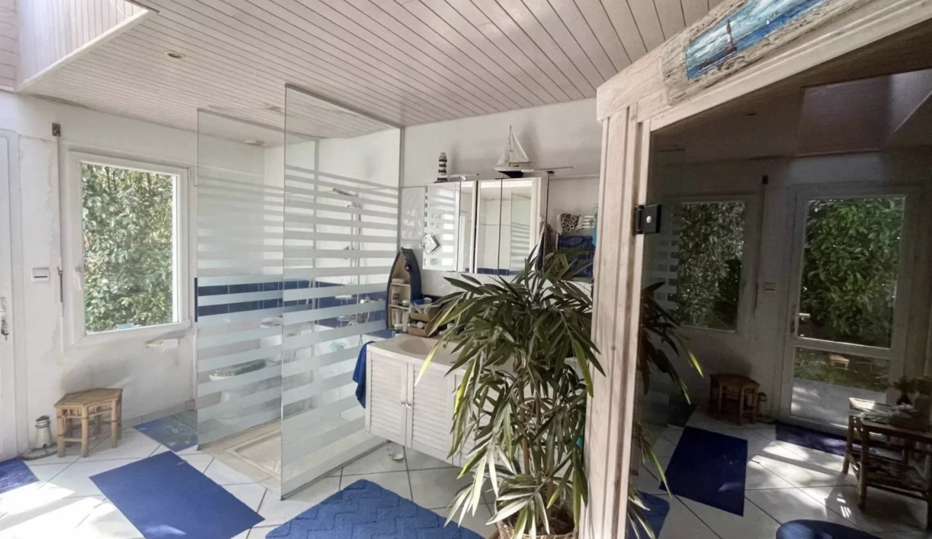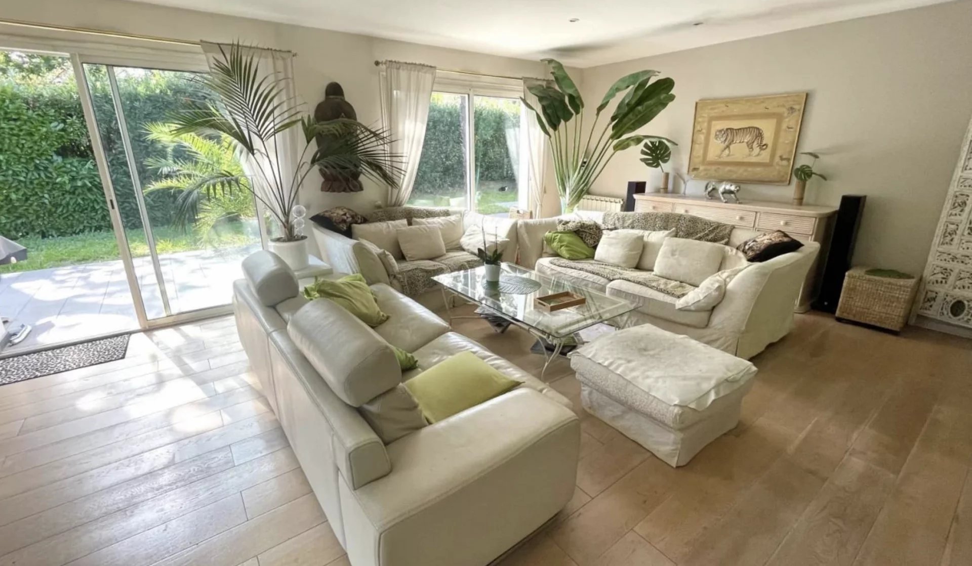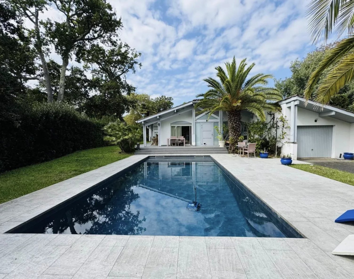 Villa contemporaine nichée dans un écrin de verdure de 1000 m2 avec piscine rénovée et jacuzzi. 4 chambres à rafraîchir.