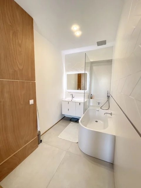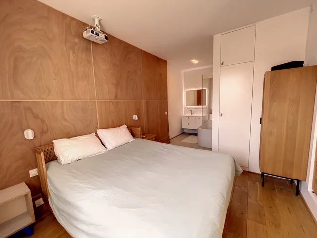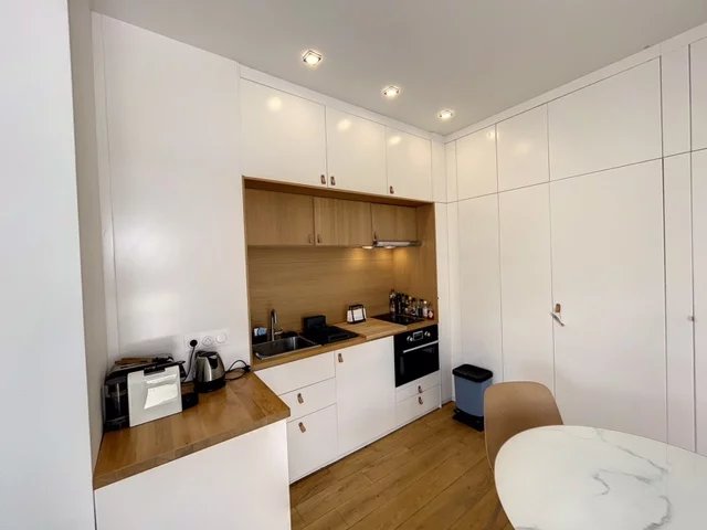 La cuisine est compacte et fonctionnelle, équipée de tout le nécessaire pour préparer vos repas. Avec un agencement intelligent, cet appartement offre tout le confort moderne dans un cadre chaleureux et accueillant.
