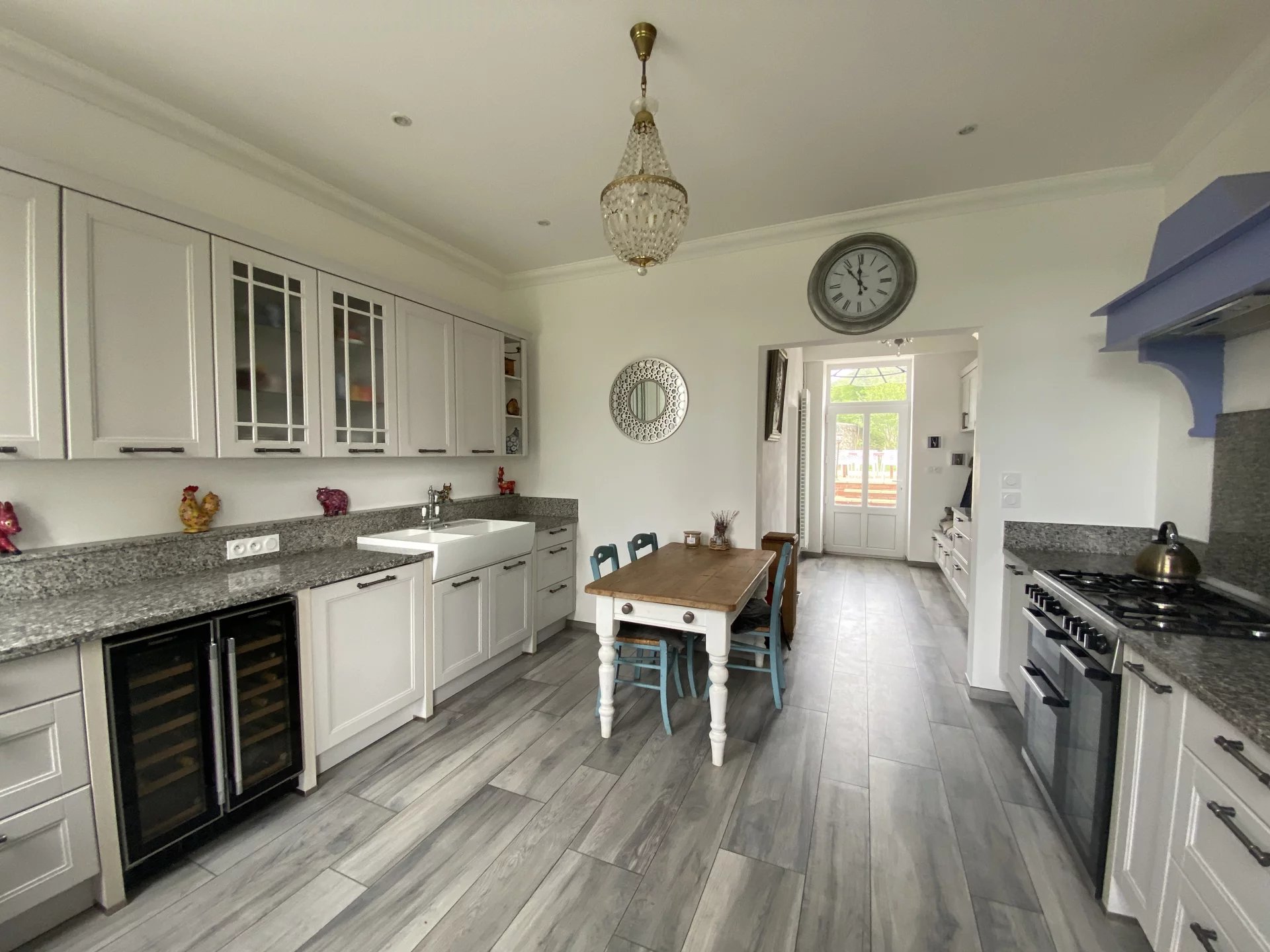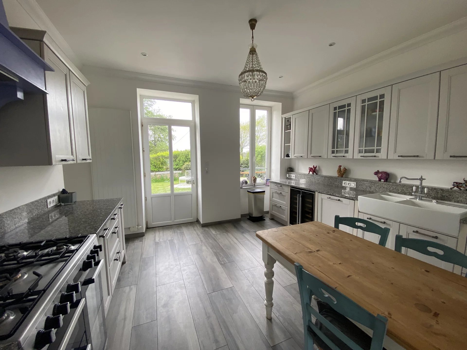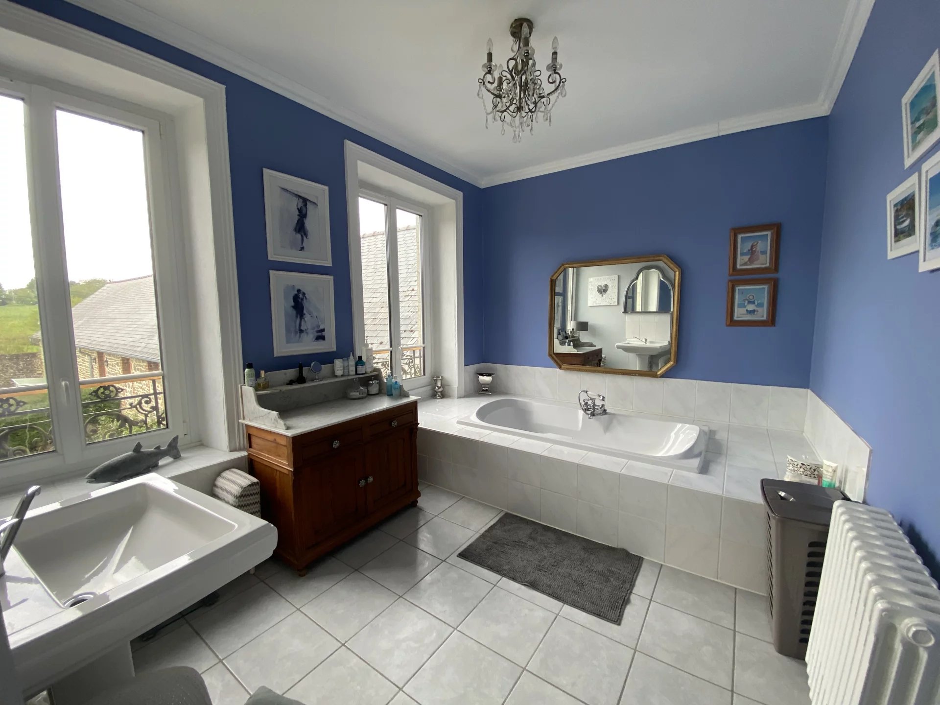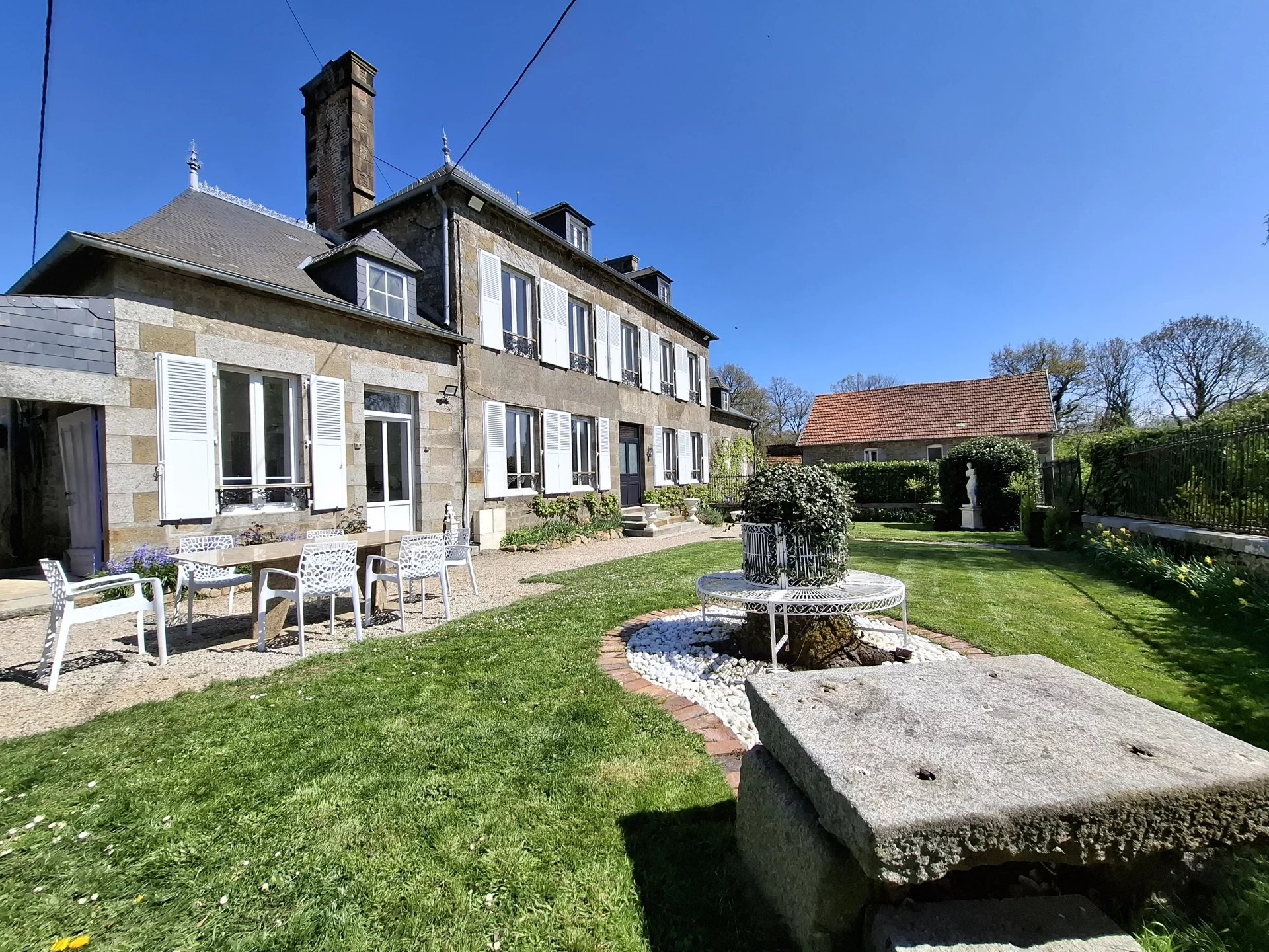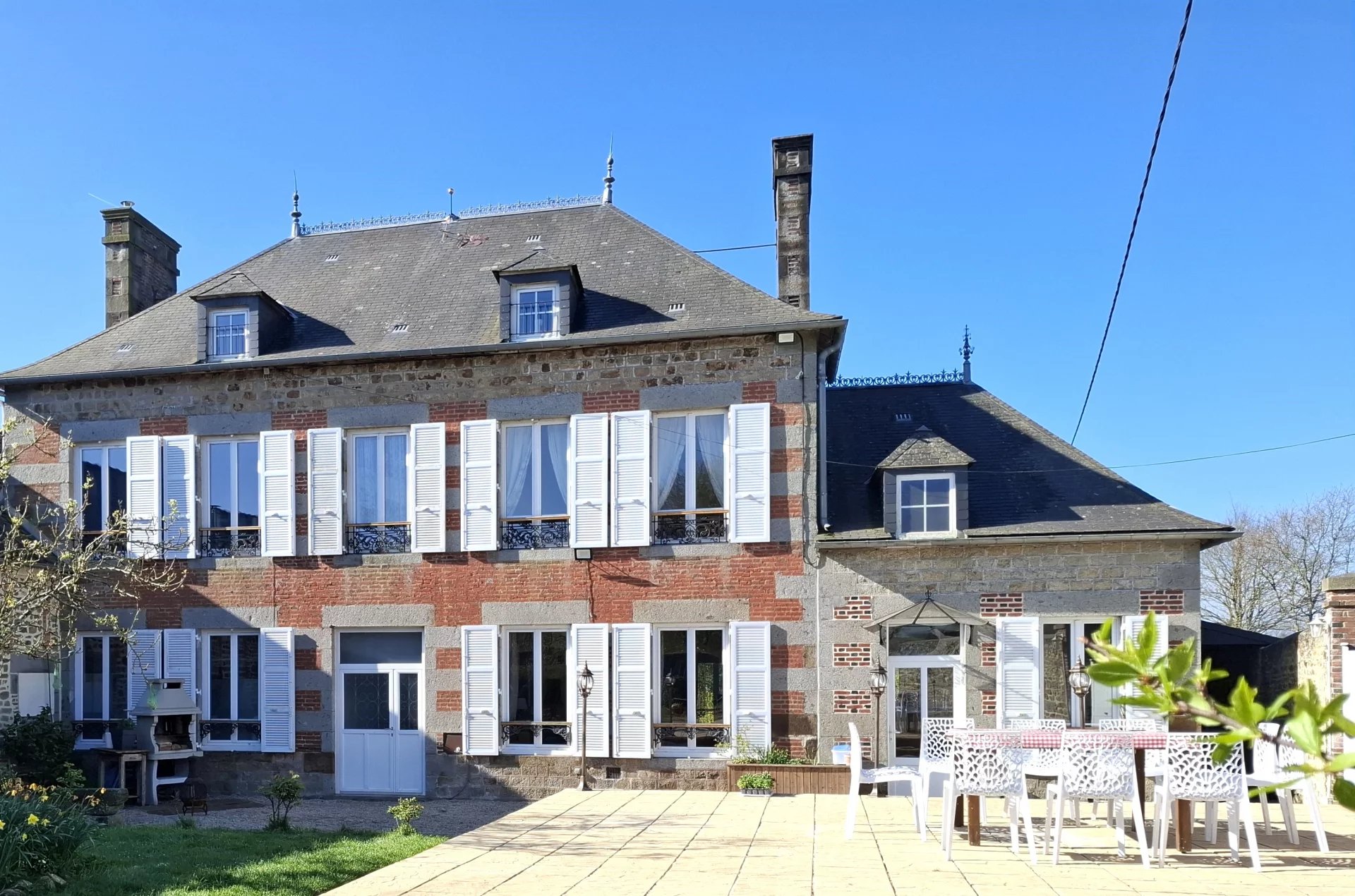 A seulement 20 kilomètres d'Argentan (gare avec liaisons régulières vers et depuis Paris), propriété dans un village calme et agréable avec une demeure ancienne datant du XIX ème restaurée avec goût et matériaux de qualité offrant sur trois niveaux et 240 m²: au rez-de-chaussée, une entrée desservant un salon-bureau, un salon-salle à manger avec cheminée et poêle, une cuisine indépendante, dînatoire et équipée, une arrière-cuisine-lingerie, une salle de bains, un wc, une cave à vin; au premier étage, un palier desservant quatre chambres, une salle de bains, un wc; au deuxième étage, trois chambres, une salle de bains avec wc. Attenant à la maison, une grande dépendance aménagée et restaurée avec sur deux niveaux et environ 350 m²: en rez-de-chaussée, une piscine intérieure sur 100 m² (chauffage en géothermie) avec salle d'eau-wc, un bar et un préau; au premier étage, une grande salle de jeux (billards...) de 88 m², une salle de sports de 73 m² et une cave. Deux dépendances aménagées l'une en studio de musique de 54 m² et la seconde en cuisine d'été avec possibilité d'aménager l'étage en chambres. Dépendance avec garages, ateliers. Parc clos et arboré de 2.5 hectares avec une terrasse, une mare. Proche de toutes commodités, dans environnement reposant et préservé. A seulement 2h00 de Paris en train, 2h45 en voiture et à 1h00 de la mer.