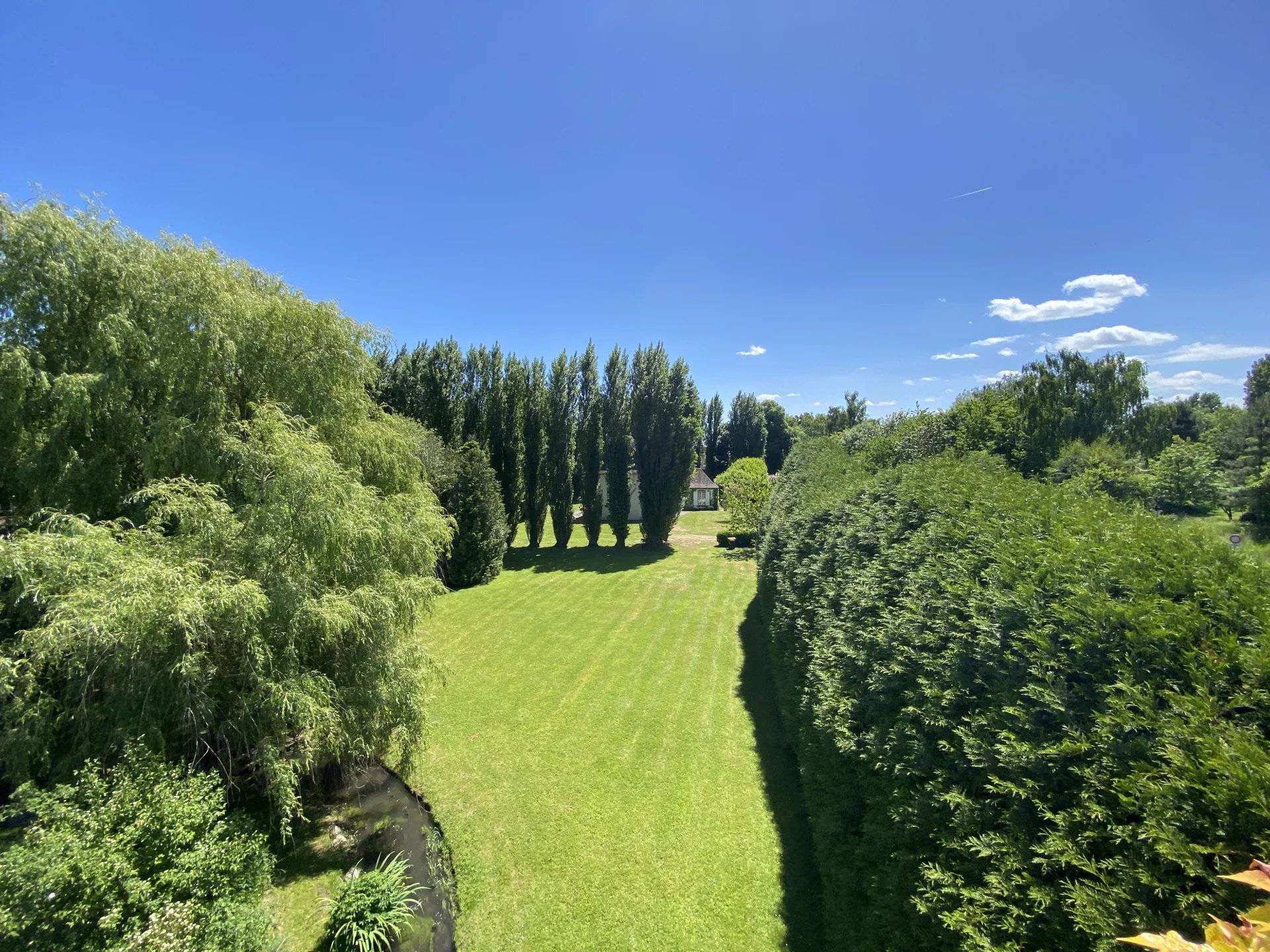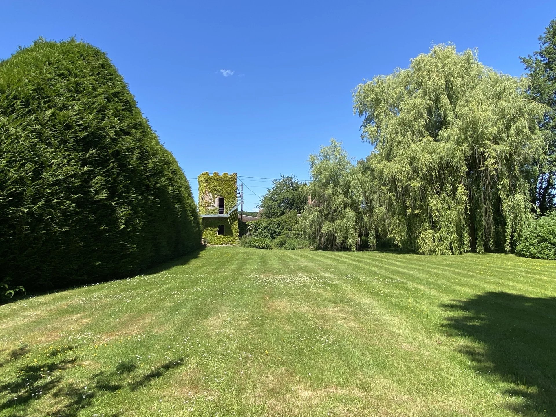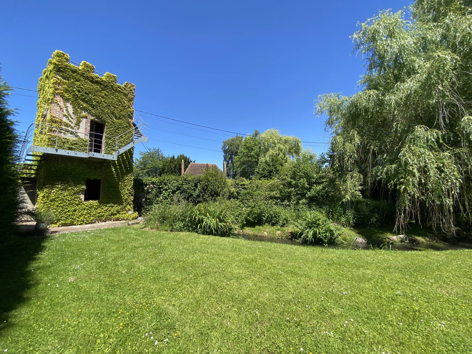 Cette maison dispose d'un parc arboré et clos d'environ 6000 m² avec une tour restaurée et traversé par un petit cours d’eau, d'une serre et de plusieurs terrasses.
