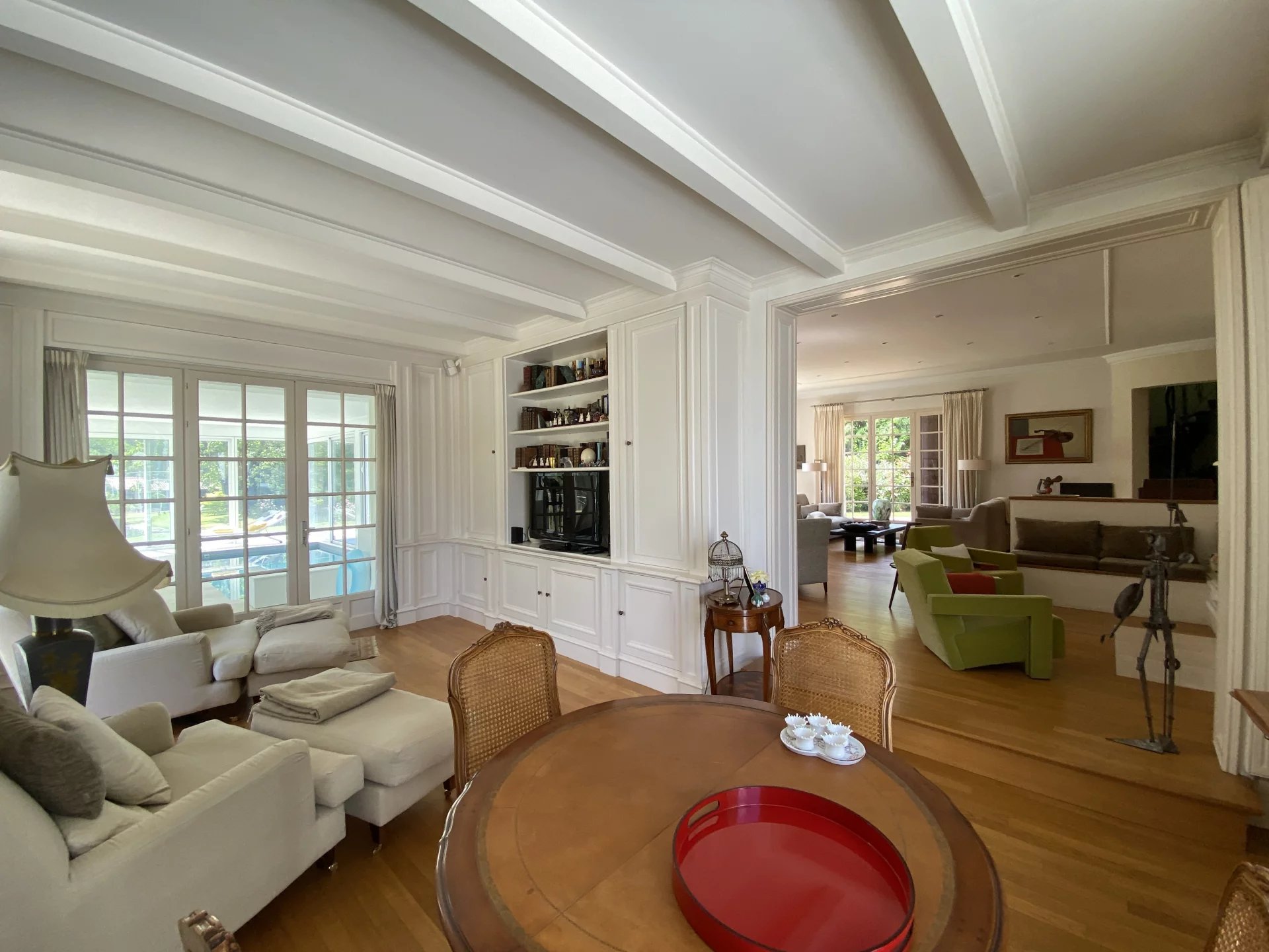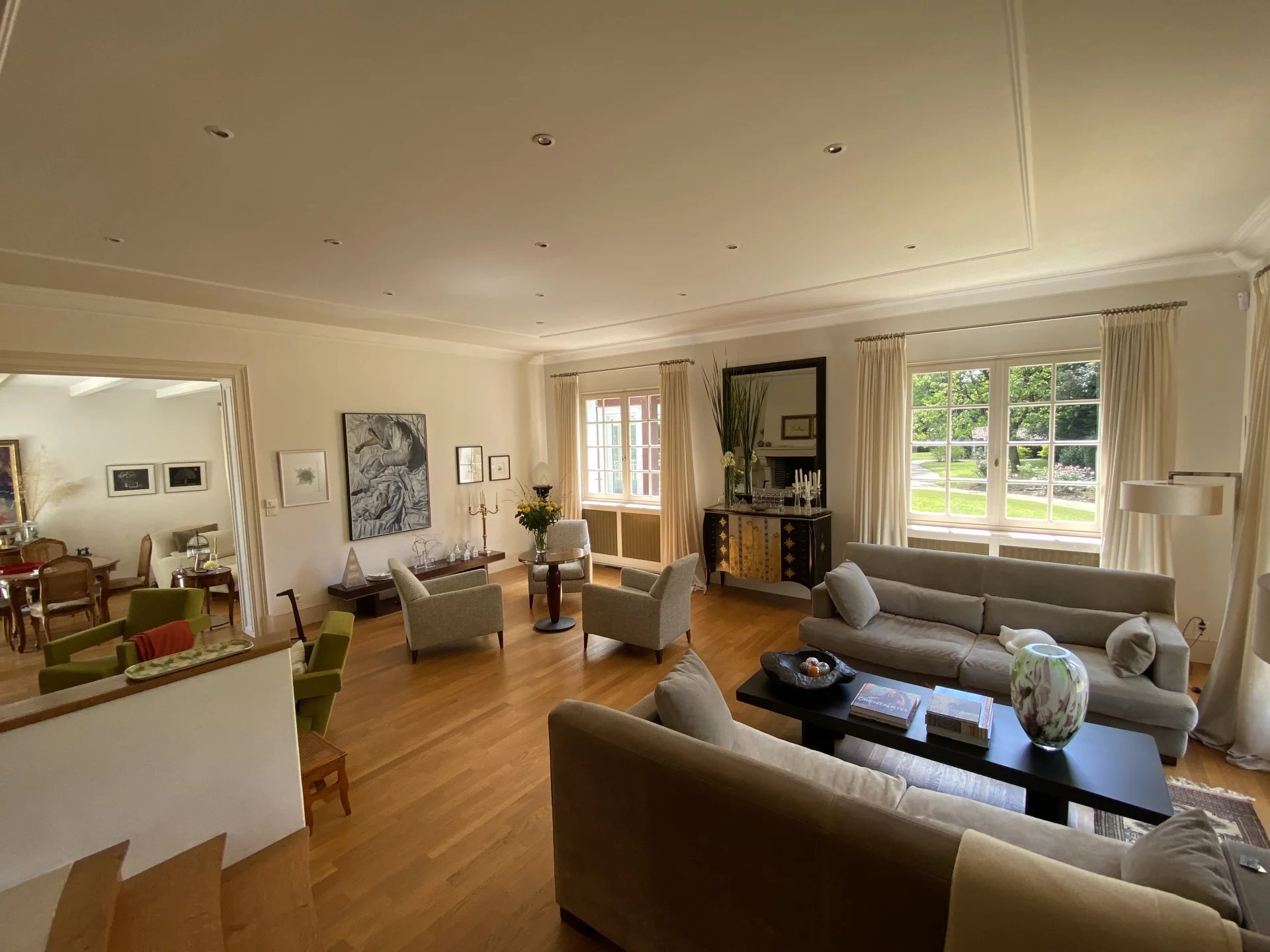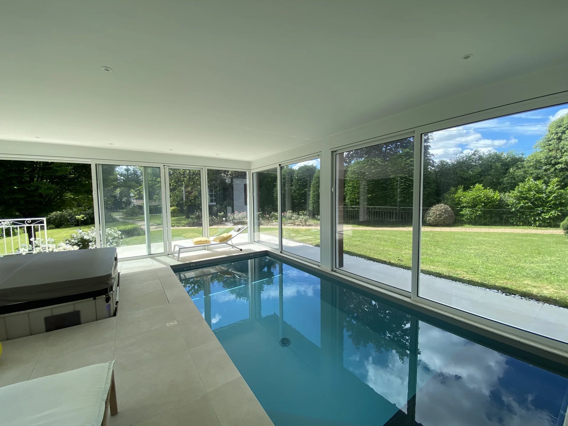 Dans une commune réputée, à seulement 20 minutes de Cholet et 1h00 d'Angers, très belle propriété comprenant une maison construite en 1973 avec des matériaux de qualité et décorée avec goût offrant sur quatre niveaux (avec le sous-sol) et environ 310 m²: au rez-de-chaussée, une entrée, un vaste et lumineux salon avec cheminée, un second salon TV avec accès à la piscine couverte, une salle à manger avec accès à une terrasse, une cuisine dînatoire, moderne et équipée avec accès à deux terrasses, un bureau, un wc, une lingerie arrière-cuisine, une piscine couverte avec jacuzzi; au premier étage, un couloir desservant une chambre avec salle d'eau et wc, un dressing, une suite parentale avec salle de bains et wc, deux chambres dont une avec salle d'eau; au deuxième étage: deux grandes pièces utilisées en salon et bureau atelier (possibilité d'installer aisément une salle d'eau), un sous-sol avec un grand garage (pour trois voitures), une grande pièce-salle de jeux, un bureau, un cellier, un local technique, une remise. Cette maison à la décoration raffinée et avec des prestations de qualité dispose d'un parc de 13.000 m² clos, arboré (avec de nombreuses essences d'arbres) très bien entretenu avec un puits et une dépendance (atelier, box, remise, garage…) et avec un étang d'environ 3000 m². Environnement calme et très agréable, proche de toutes les commodités. Maison reliée au tout-à-l'égout.