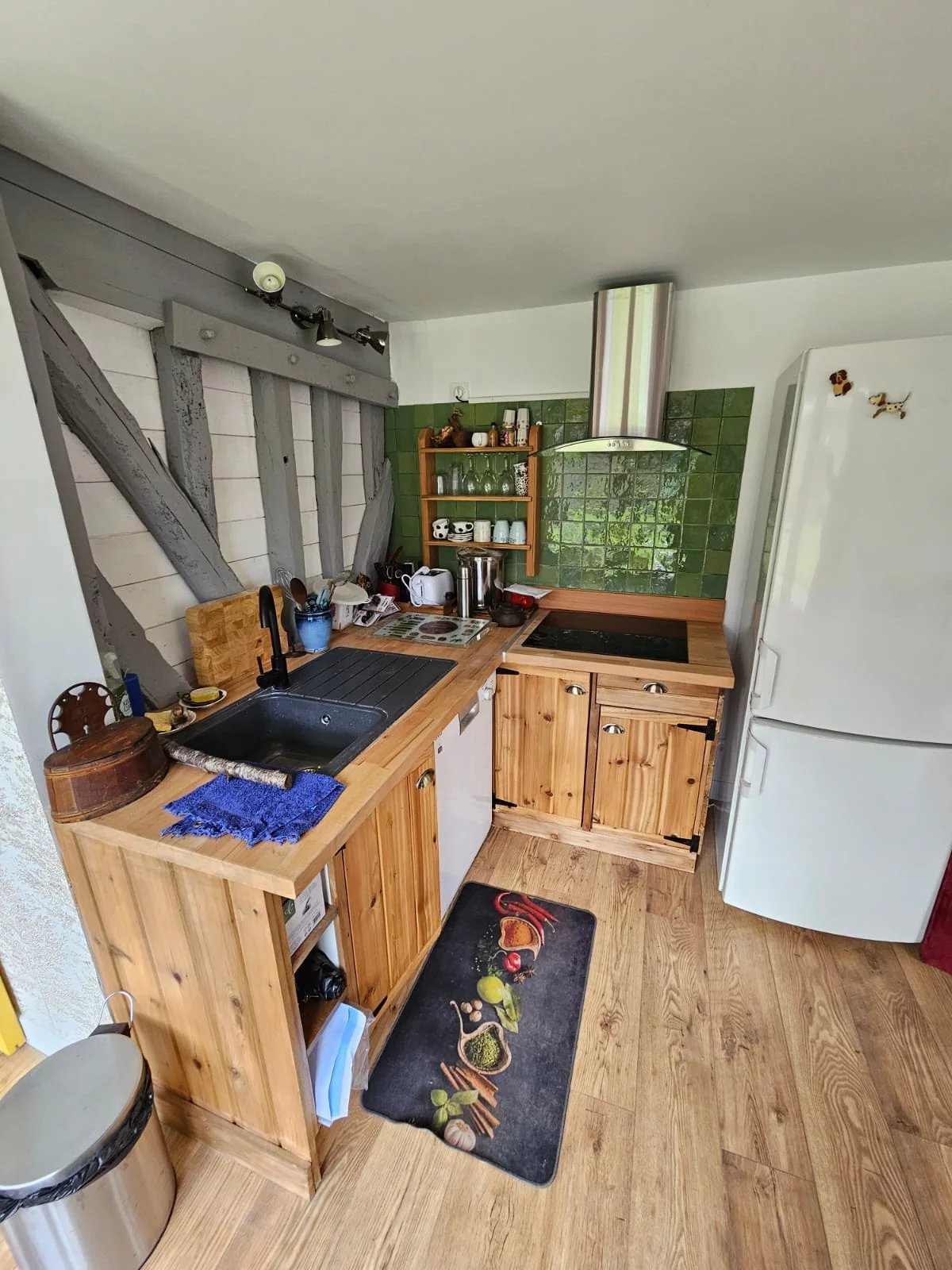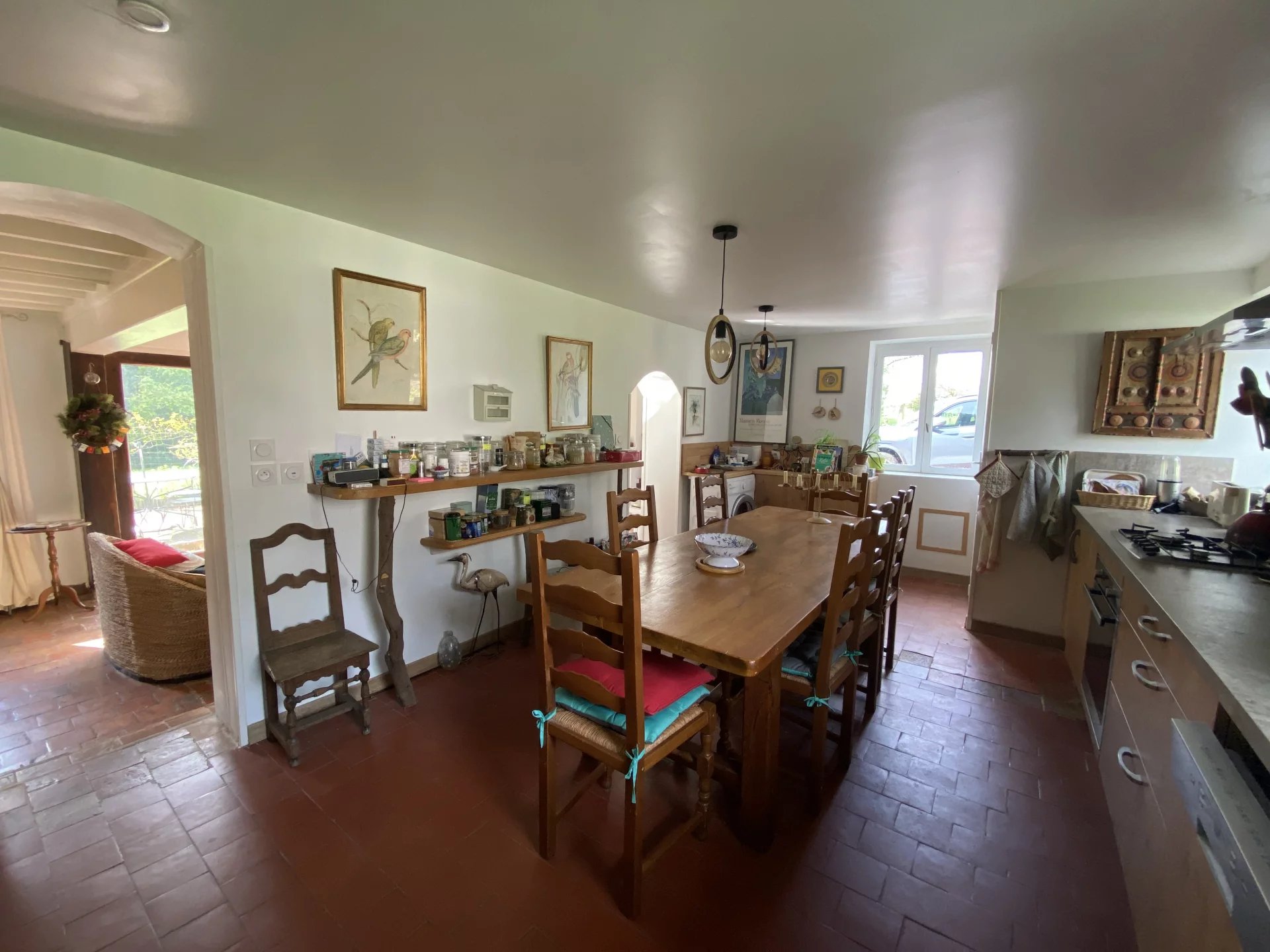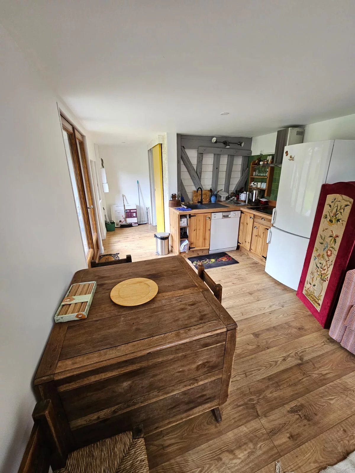 VENDUE PAR RIVARD IMMOBILIER. A proximité de Vimoutiers à pied, longère restaurée avec goût et matériaux de qualité offrant sur deux niveaux et environ 159 m² : au rez-de-chaussée, une entrée avec dressing, une cuisine dînatoire indépendante et équipée avec un poêle Oliger et un wc, un grand salon avec un poêle Godin et accès à une terrasse, une salle à manger ou bureau, une chaufferie-buanderie; à l'étage, un couloir desservant trois chambres dont une avec salle d'eau et wc, une salle de bains avec wc, une petite chambre enfant avec accès à une salle d'eau avec wc (commune avec la chambre de l'appartement); un appartement attenant et communiquant avec la maison avec un séjour avec poêle Godin et une cuisine en rez-de-chaussée et à l'étage, une chambre avec salle d'eau et wc. Une dépendance transformée en gîte offrant sur environ 30 m² : un séjour avec cuisine équipée, une salle d'eau-wc et une chambre en mezzanine. Double-vitrage dans l'ensemble de la maison et du gîte. Jardin clos et arborée de 1340 m². Beaucoup de charme et environnement calme et agréable. Proche de toutes les commodités. A 30 minutes de Lisieux et Evreux, à deux heures de Paris (1h30 en train).