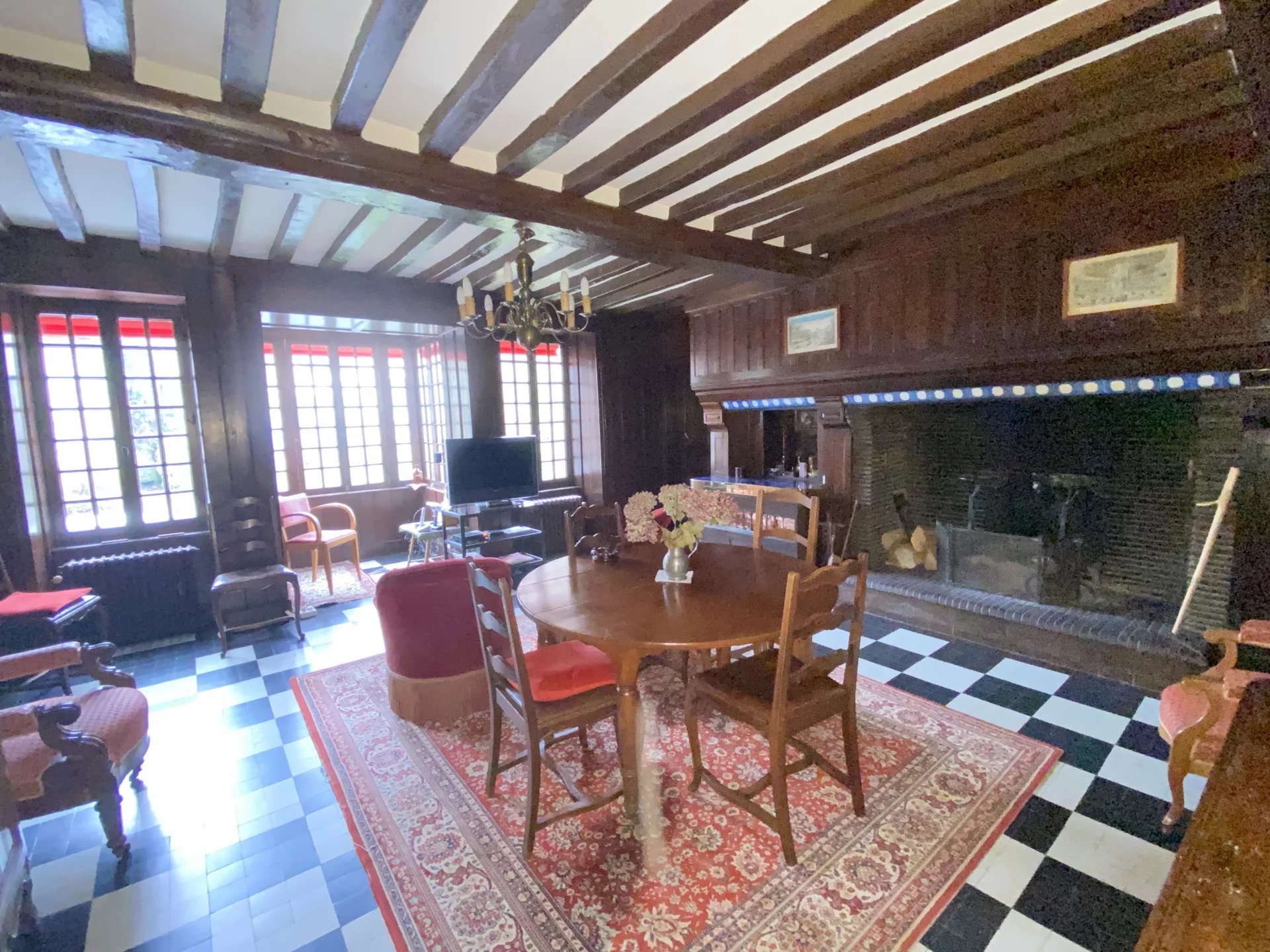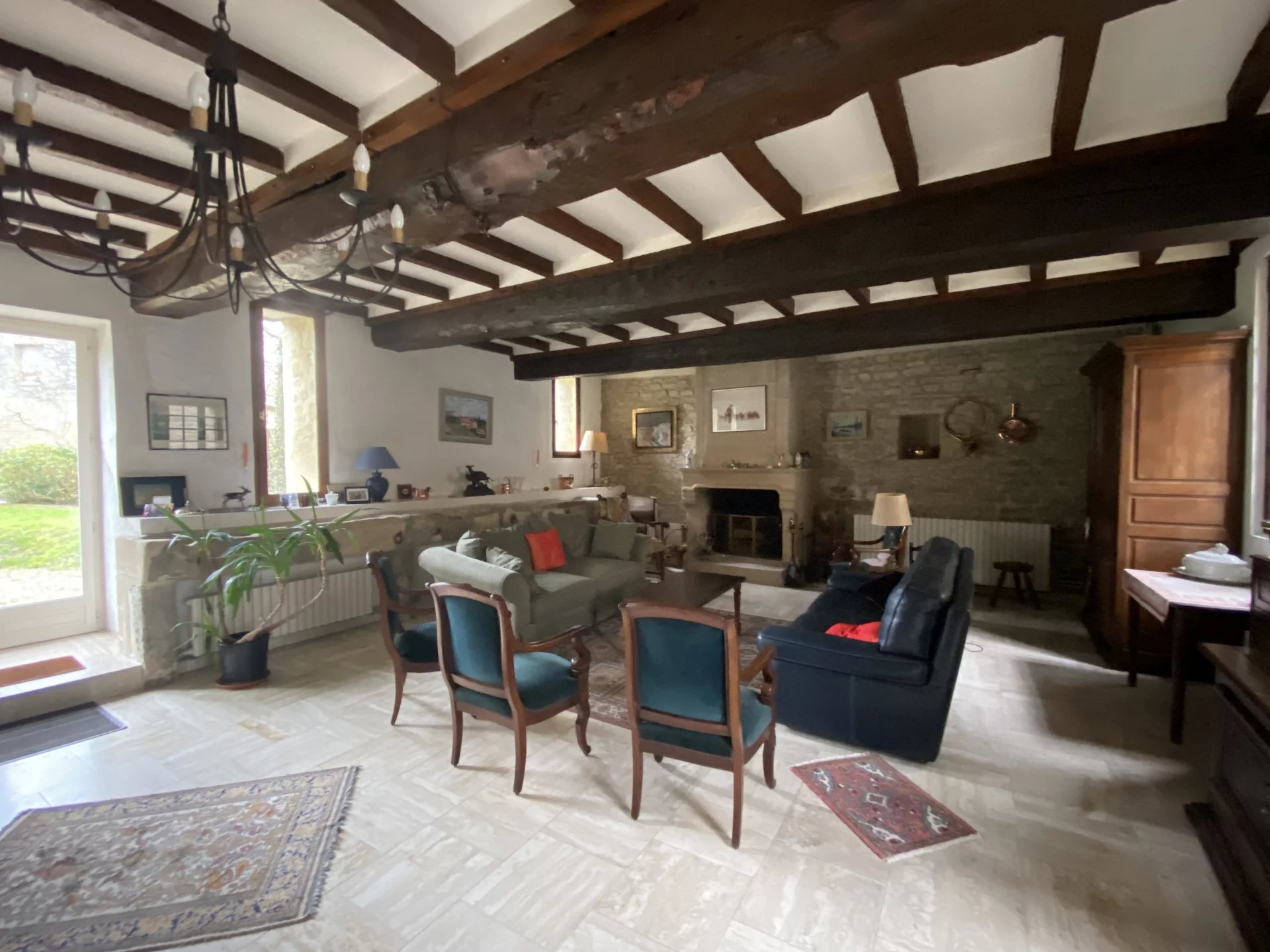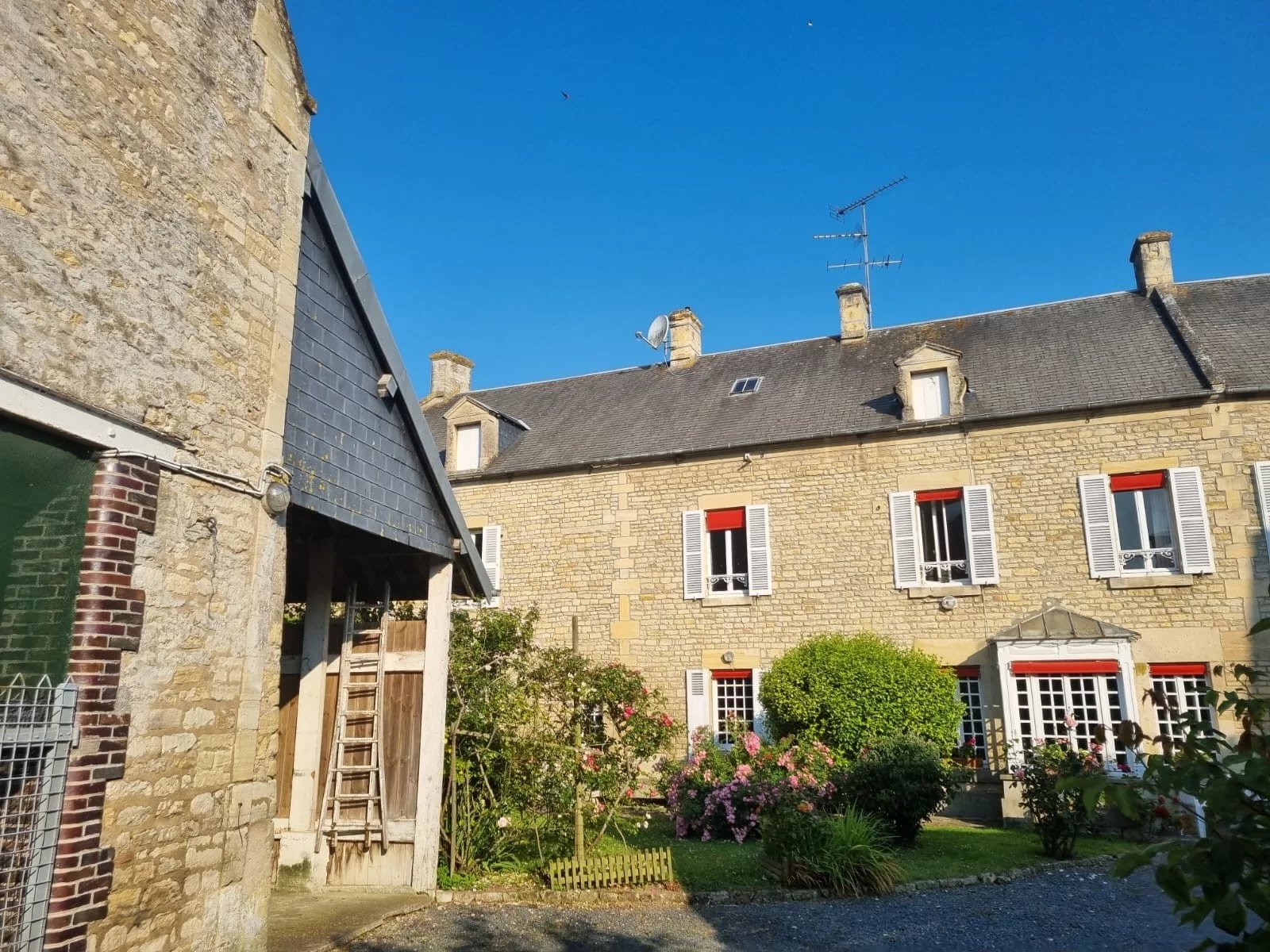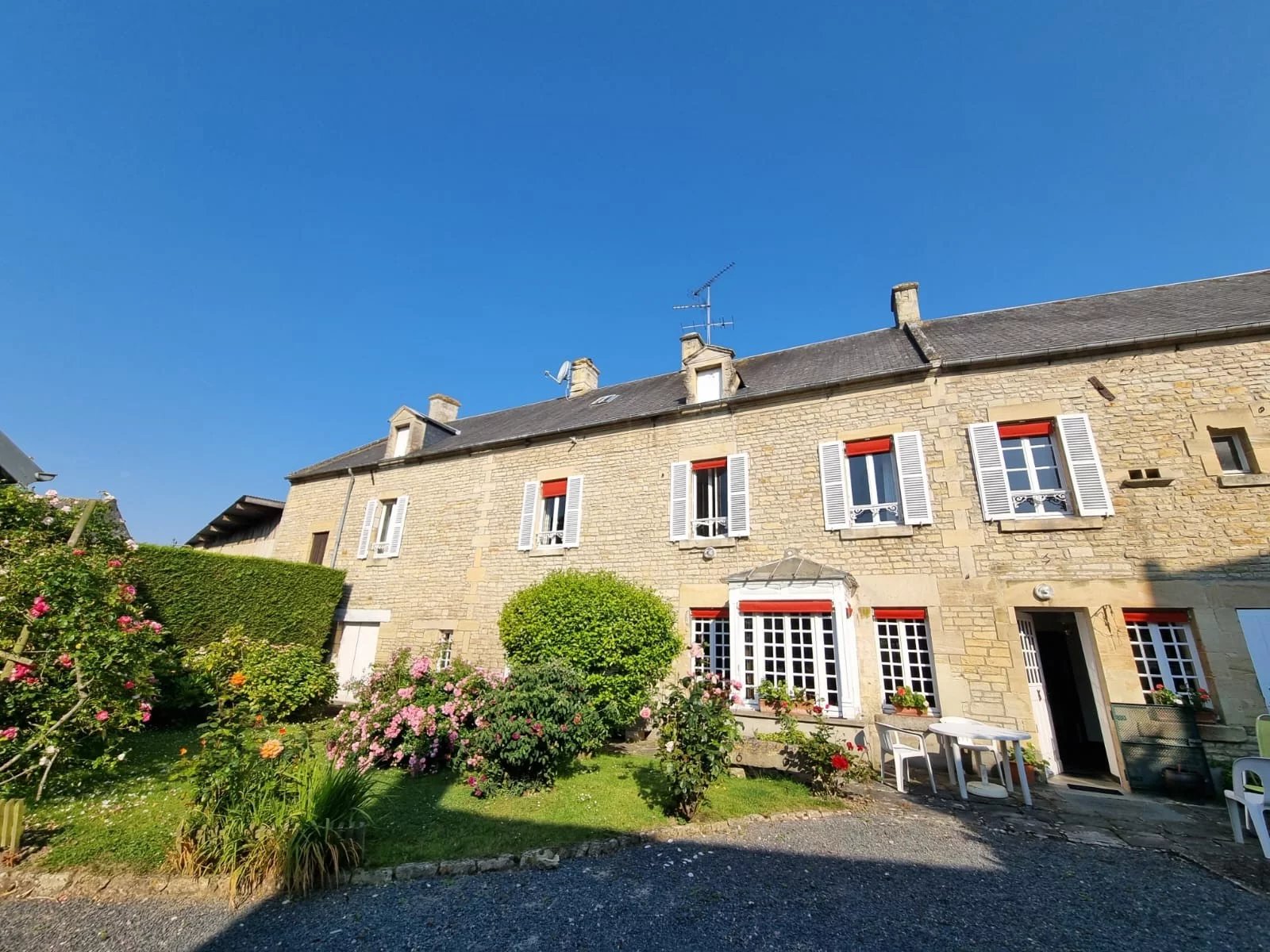 A seulement 20 kilomètres au nord de Caen, dans un village à 5 kilomètres de la mer et de Courseulles-sur-Mer, charmante maison ancienne offrant sur deux niveaux et 328 m²: au rez-de-chaussée, une entrée, un vaste salon salle à manger de 75 m² avec cheminée et accès au jardin, une cuisine indépendante et équipée, un salon, un bureau, une arrière cuisine et lingerie, une salle d'eau, à l'étage, un palier desservant trois chambres dont une avec salle d'eau-wc, une salle de bains avec wc, une seconde salle de bains avec wc, un couloir desservant trois chambres et un grenier aménageable en chambre (cette partie de la maison dispose également d'un accès à l'extérieur indépendant: configuration idéale pour développer des chambres d'hôtes). Cette demeure de caractère dispose d'un jardin de 1560 m² avec de nombreuses dépendances (garages, atelier, anciennes écuries, deux grandes salles de jeux...) et un appartement sur deux niveaux (avec un séjour et cuisine, deux chambres dont une avec salle d'eau et wc). Proche de toutes les commodités et à seulement 5 minutes en voiture de la mer. Environnement calme et agréable. Nombreuses potentialités. A 3h00 du centre de Paris en voiture (2h00 en train).