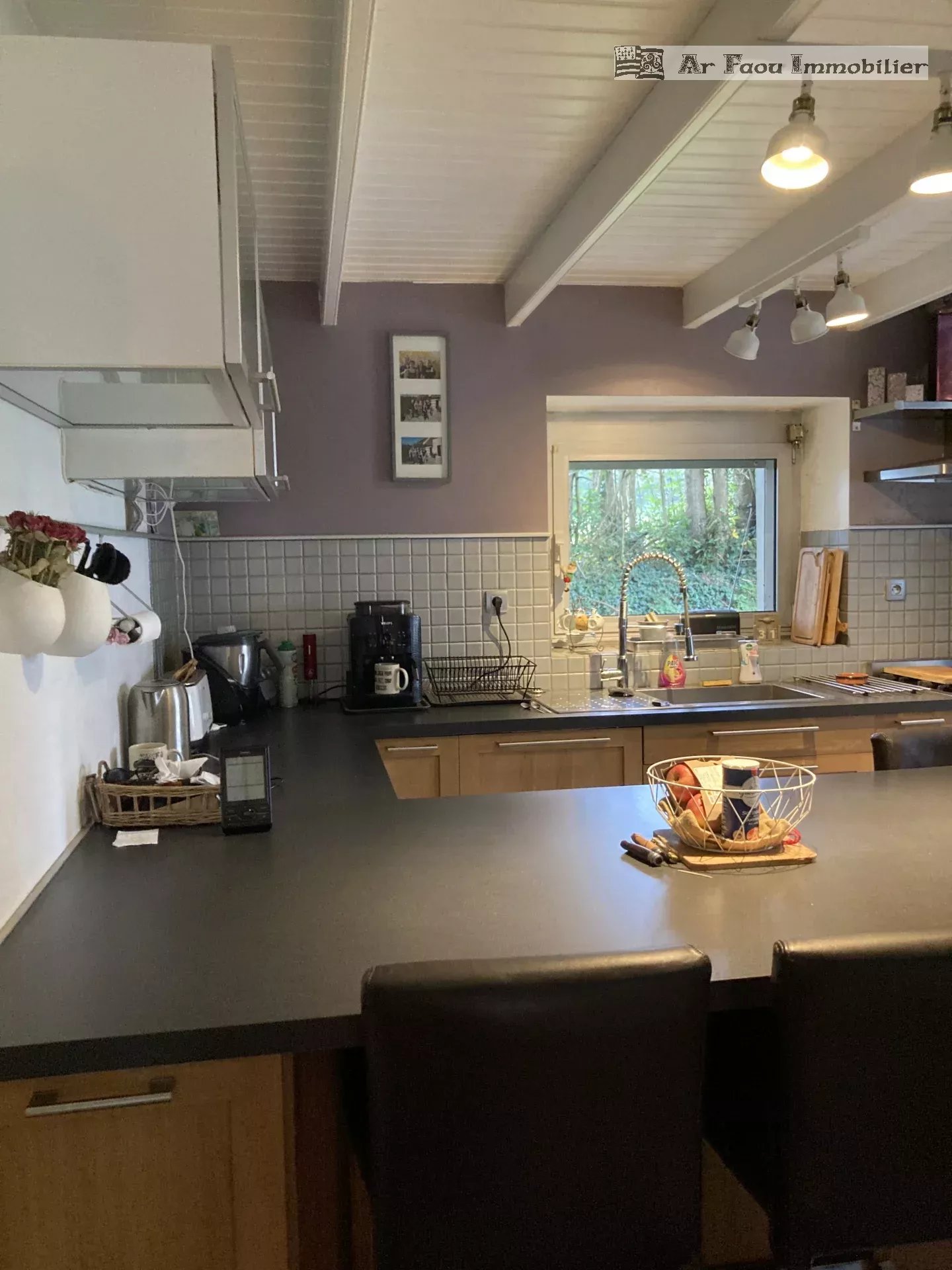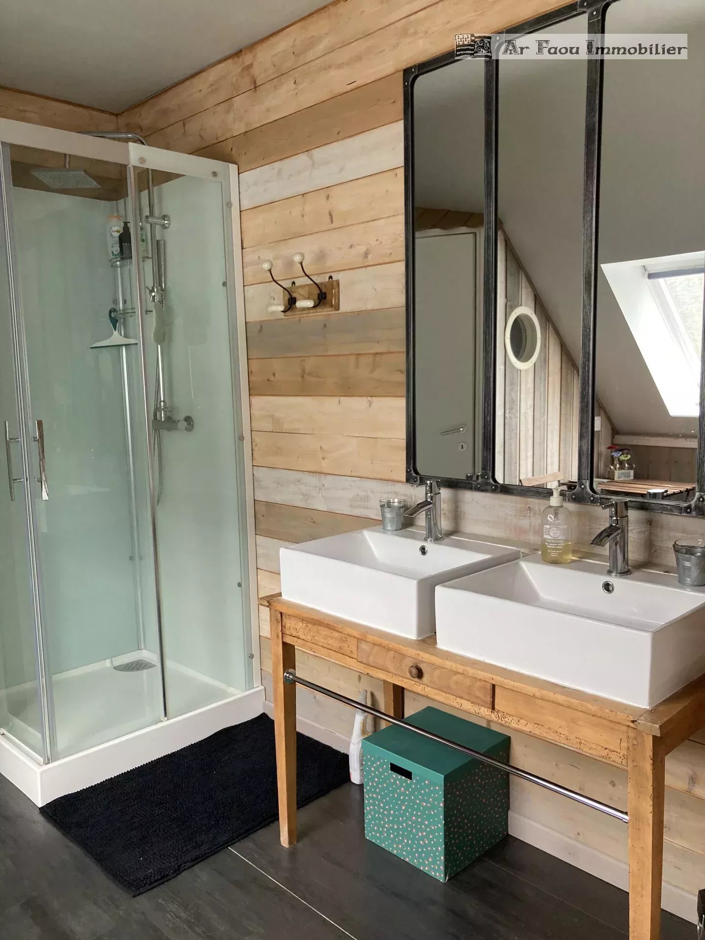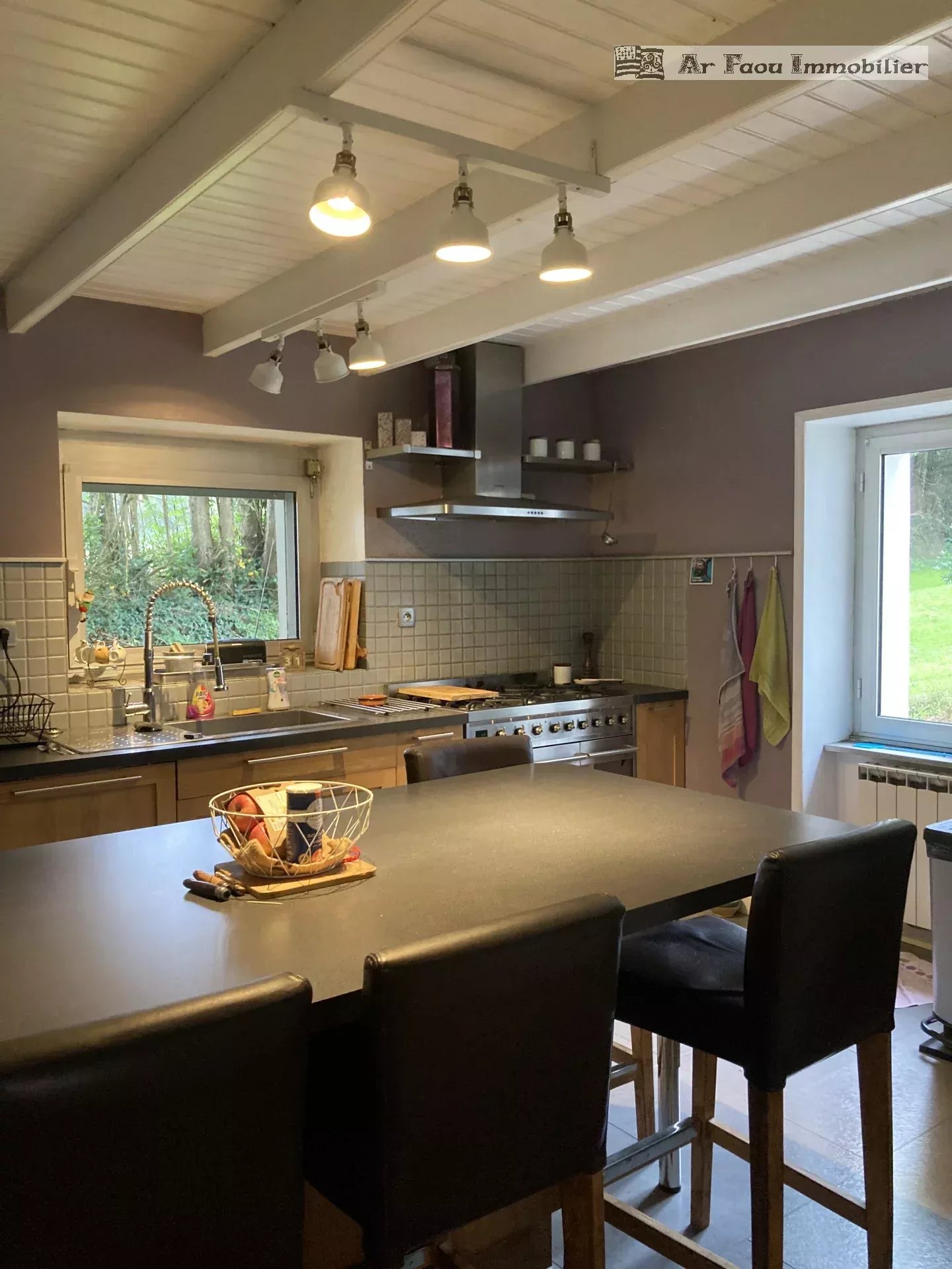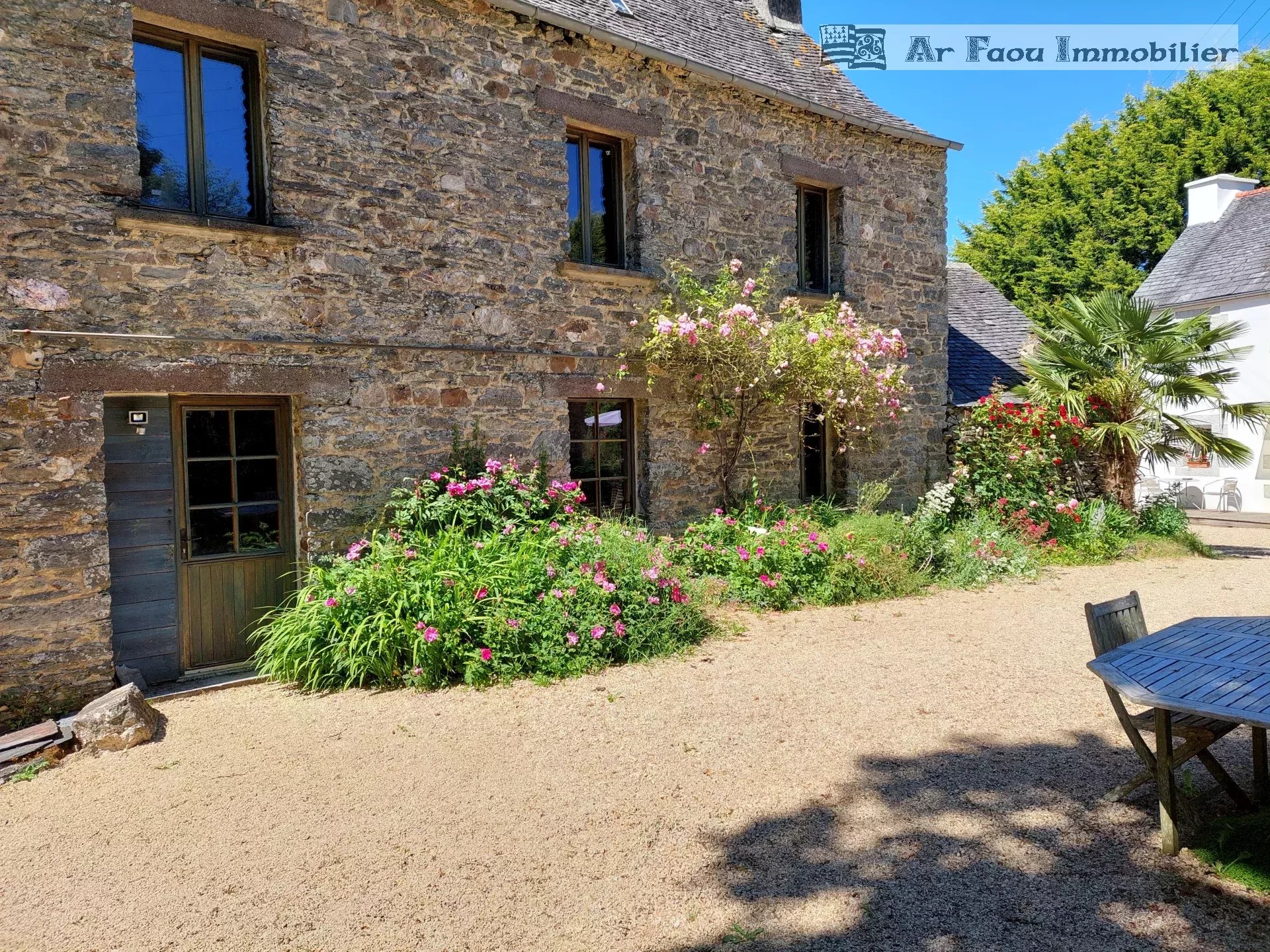 Laissez vous tenter par la visite d'un domaine au charme propre à un hameau de Tisserands : 5 maisons réhabilitées en partie. On arrive dans une jolie cour bordée par la maison principale de 170m² avec 8 pièces, un étage, 5 chambres, 3 salles d'eau, une cuisine moderne et de lumineuses pièces de vie. Puis se dresse fièrement une grande maison de Tisserand avec son toit rénové, aux ardoises des Monts d'Arrée. Longère, grange, et appentis continuent de dessiner cette jolie propriété, embellie par un cadre verdoyant fait de jardins et de bois, sur 41808m². Une piscine chauffée finira de ravir le visiteur, qui constatera également la potentialité du lieu.