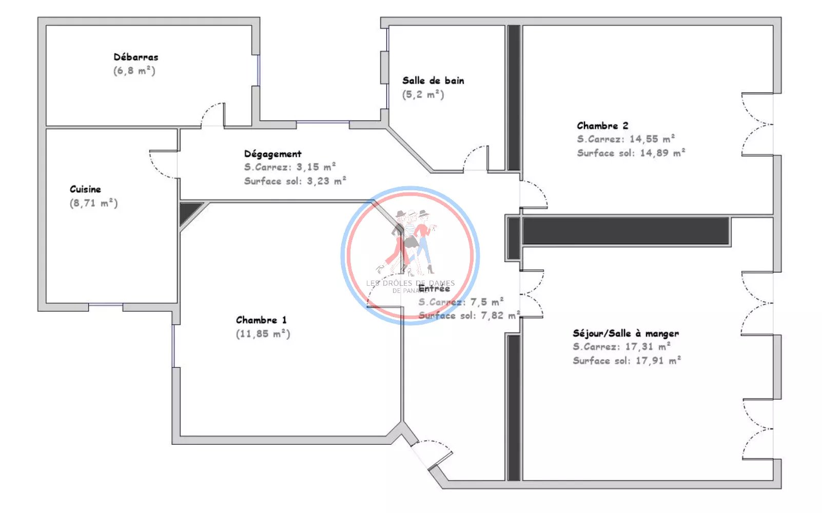 Carrez 75.05m2. Charges 320€/mois chauffage inclus.