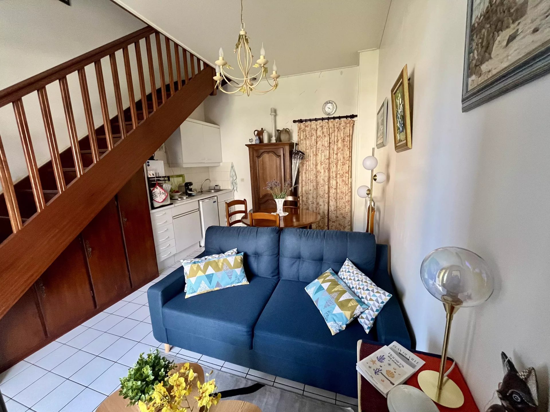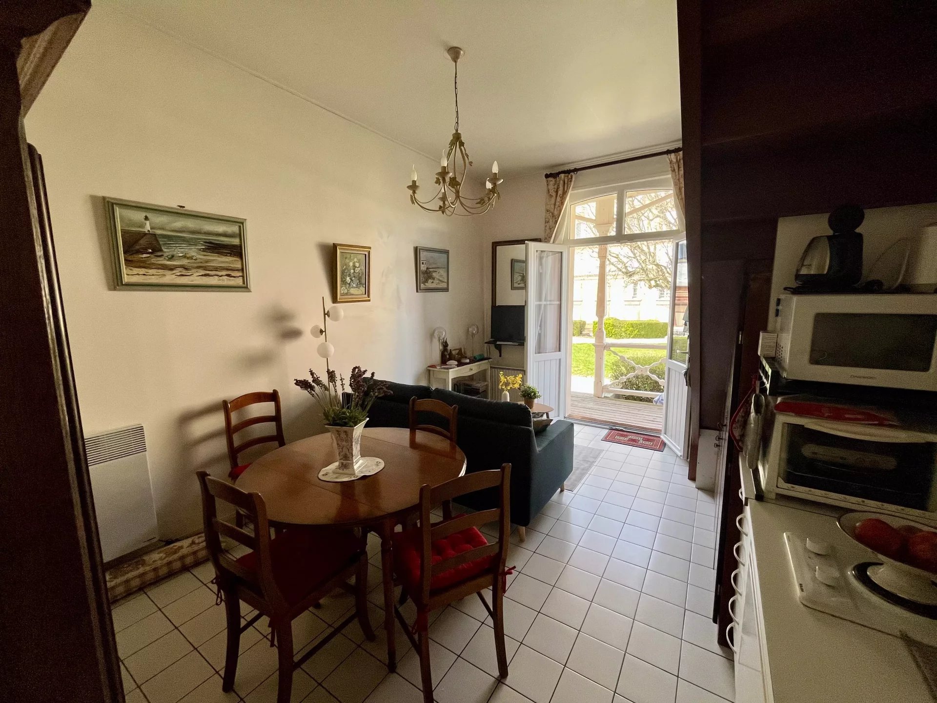 Dans les jardins du Grand Hôtel, bel appartement d'environ 45 m2, comprenant une entrée par une terrasse privative, donnant sur une pièce de vie avec un coin cuisine aménagée et équipée, un accès à un garage privatif, à l'étage un palier avec deux lits simples, wc, une salle de bain et une chambre avec 1 lit double.