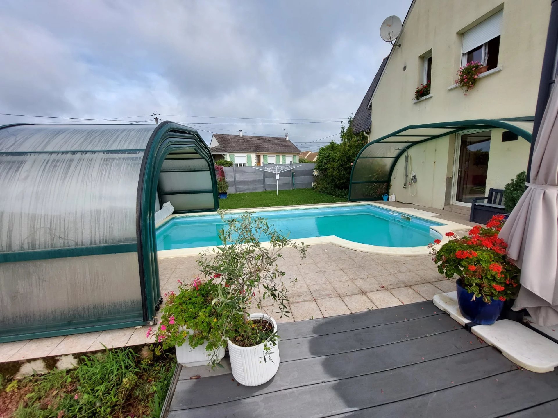 Charmante maison proche des écoles , des commerces et de la gare, très bonne isolation et baignée de lumière. cheminée à foyer fermée, huisseries pvc, cuisine ouverte sur le salon - séjour, terrasses autour de la maison, sous-sol, entièrement clos et arboré, piscine couverte avec abris, - terrain 760m2chauffage - chauffage gaz de ville - huisseries PVC - très bonne isolation C Frais d'agence à charge Vendeurs. Boussard Guillaume Agent commercial immatriculé au RSAC du Mans et de la Sarthe sous le numéro : 878143072