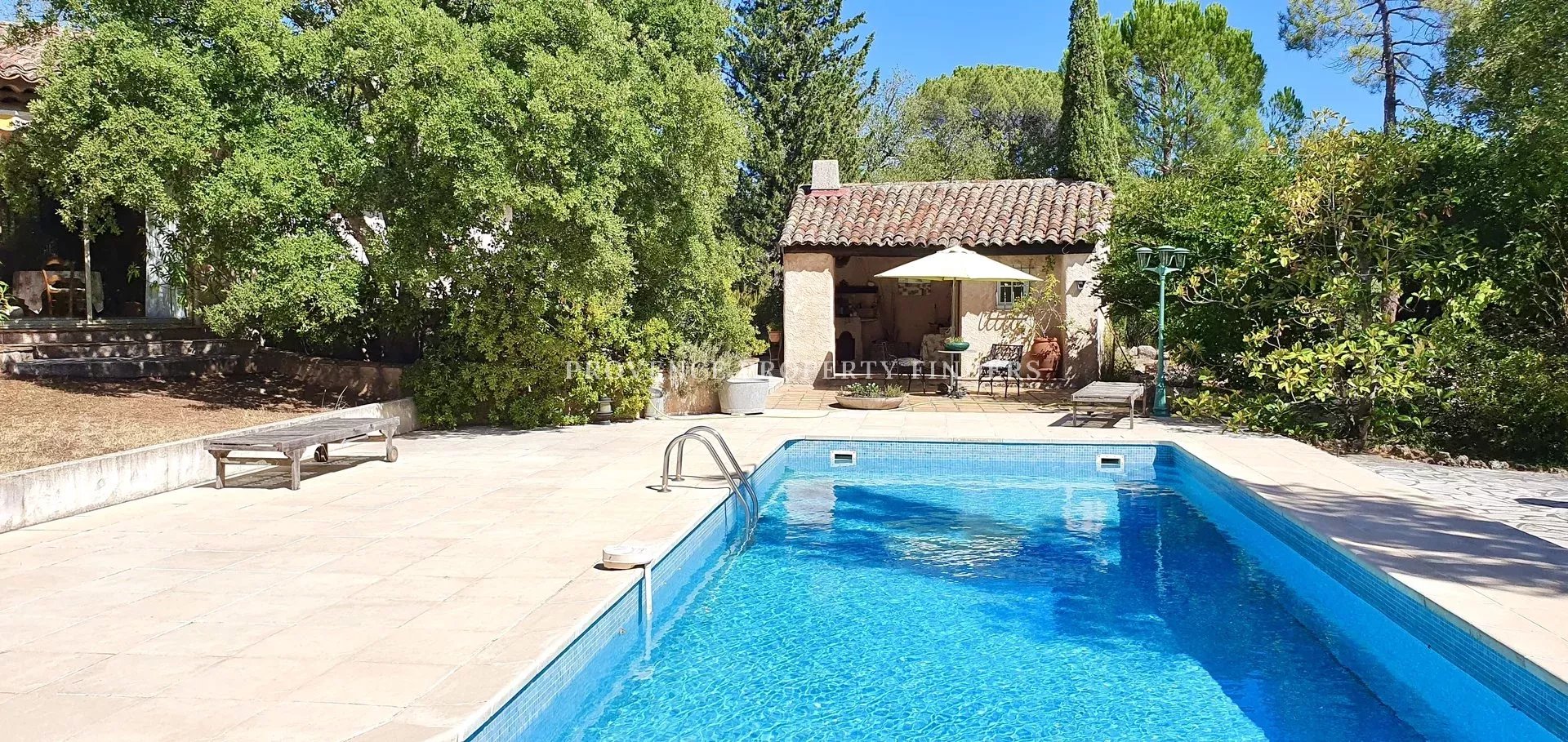 Plusieurs dépendances, une cuisine d'été, un atelier, un abri pour deux voitures, deux garages, un boulodrome, une piscine et un terrain de tennis à rénover.
