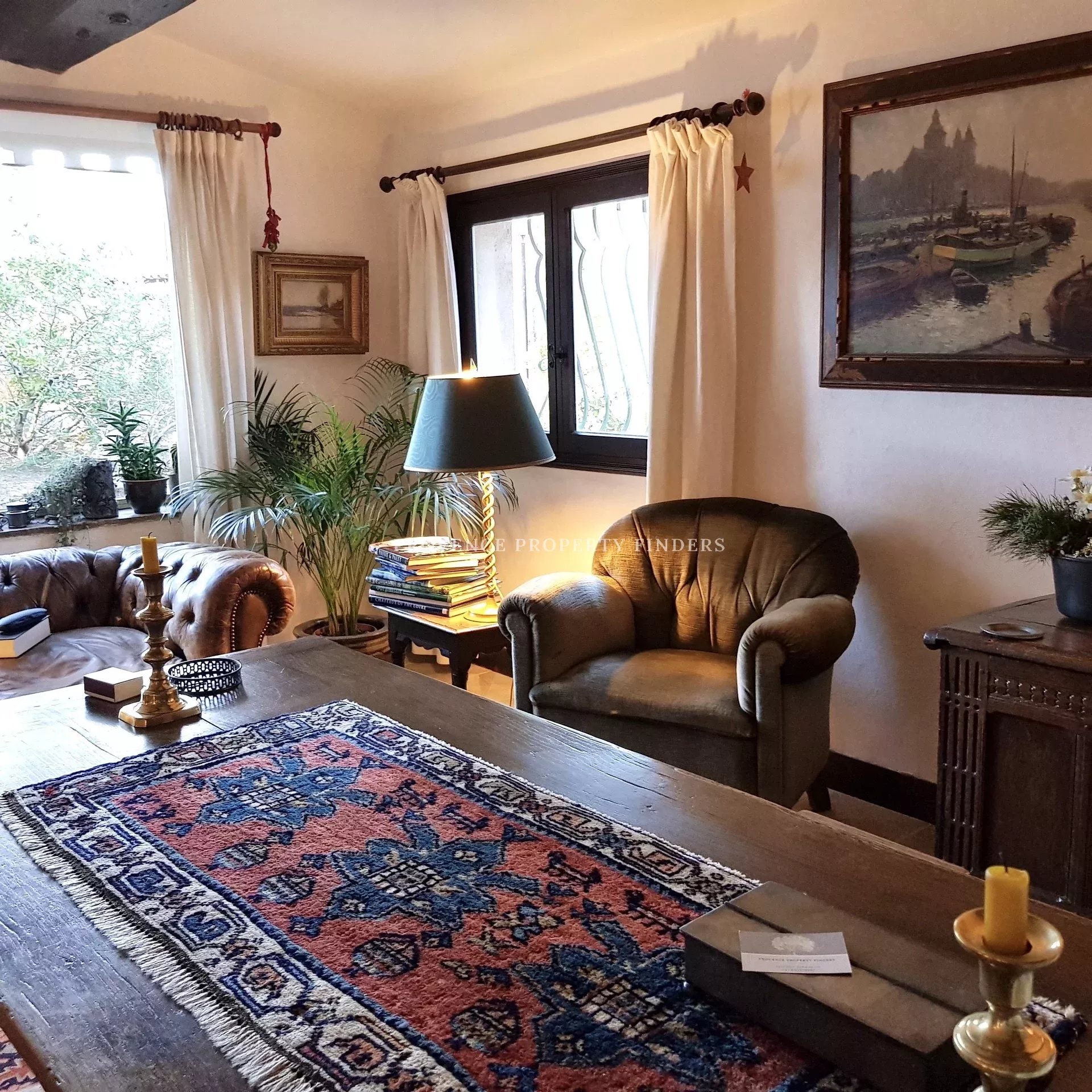 La maison principale offre au rez-de-chaussée: Belle entree, séjour ouvert avec cheminée, salle à manger, une cuisine, 2 chambre avec douche, un bureau, un wc invités.