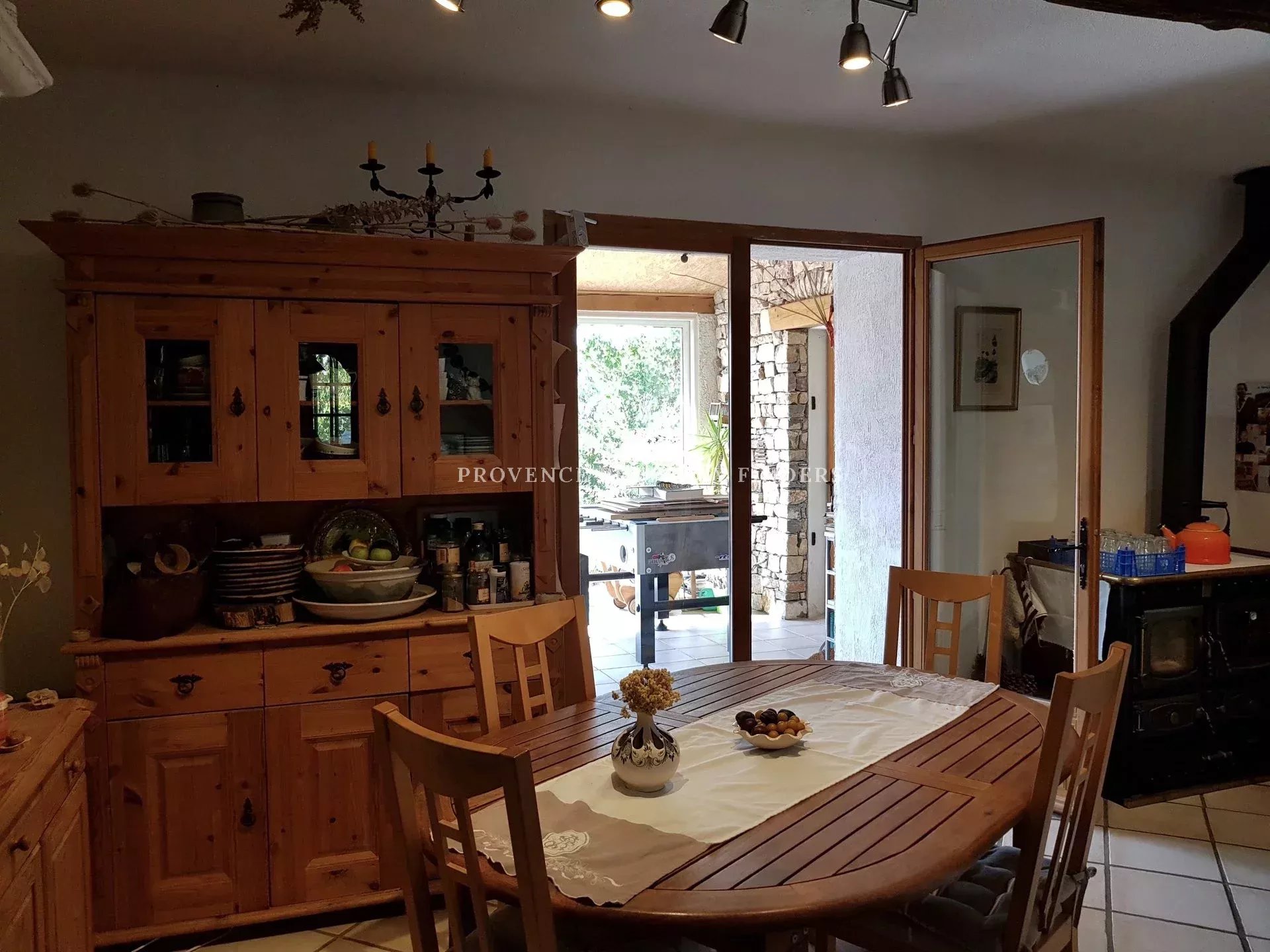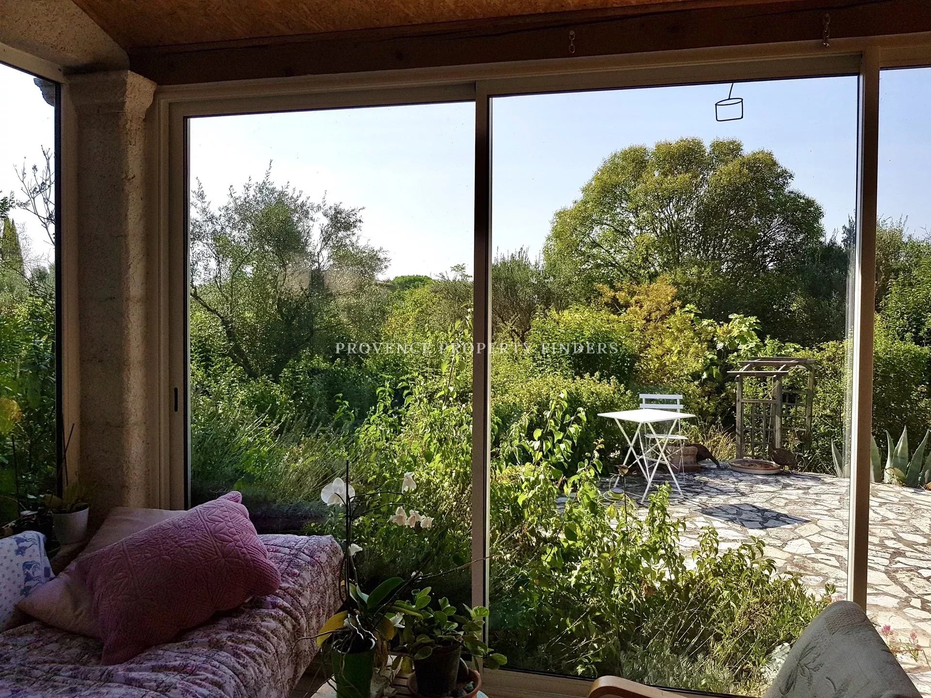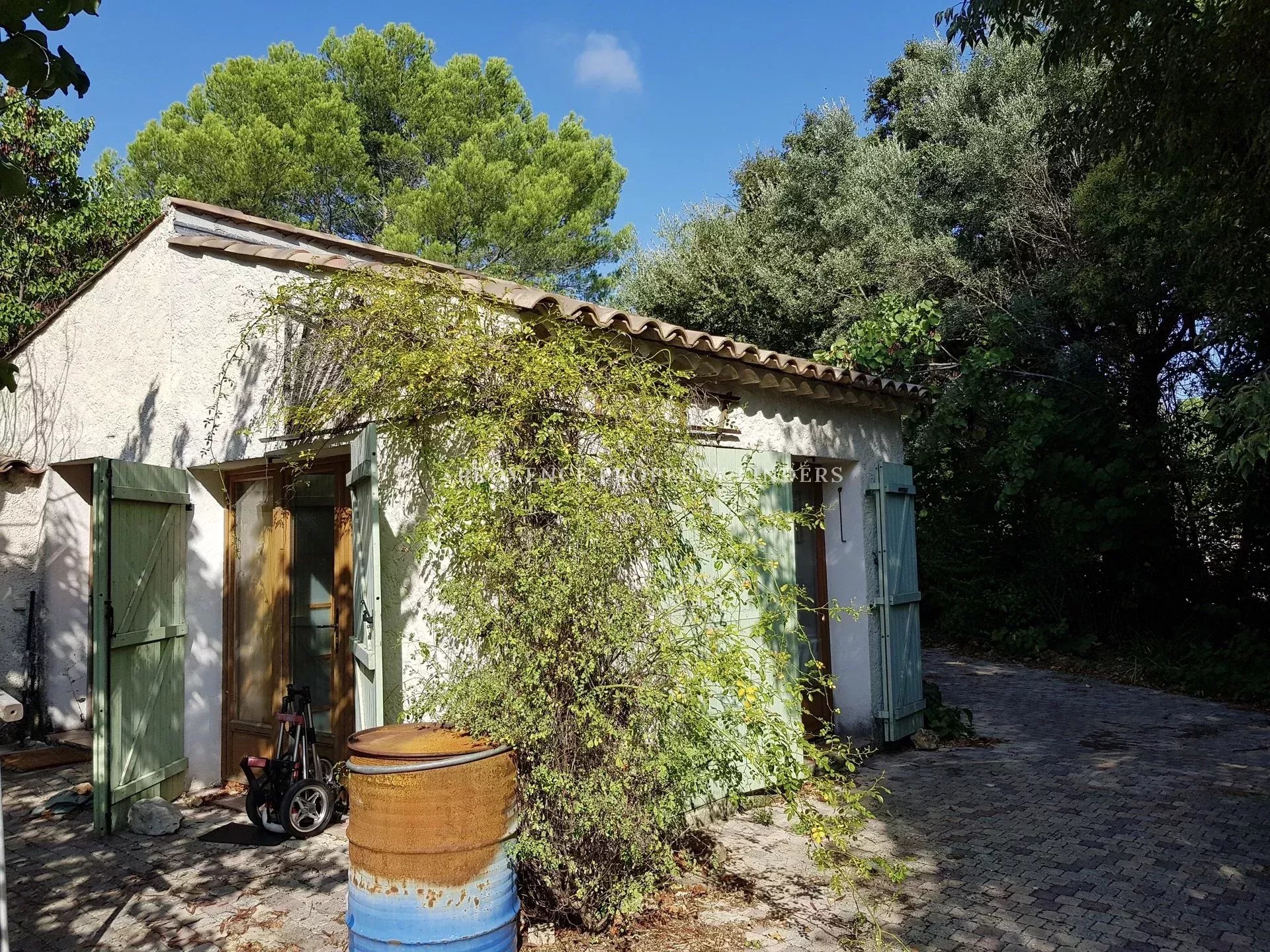 Maison au coeur d'un magnifique terrain plat de plus de 5000M2 complanté d'oliviers. Entrée, cuisine, salle à manger, salon, trois chambres, dont une à l'étage, bureau et deux salles d'eau. Partie indépendante actuellement aménagée en deux chambres avec sde et wc. Environnement magique, en impasse, plein sud et au calme
