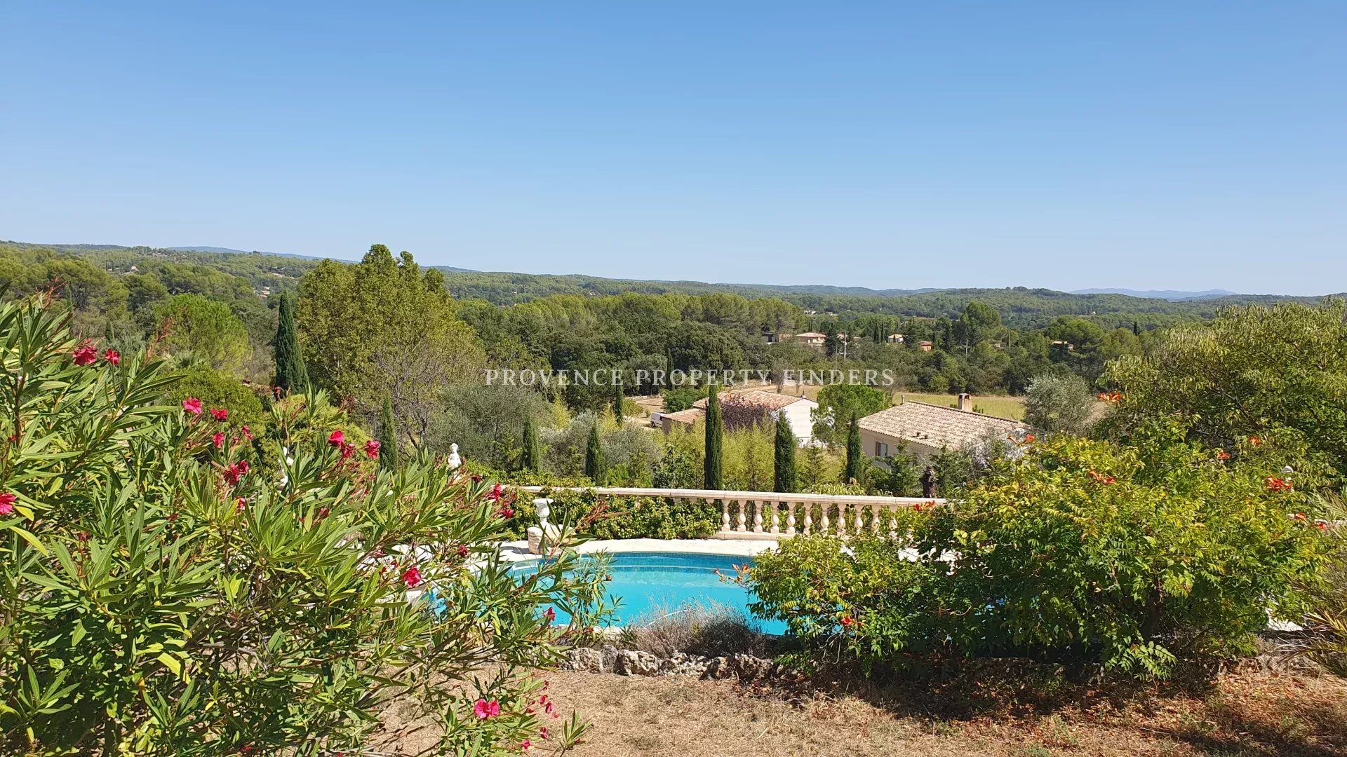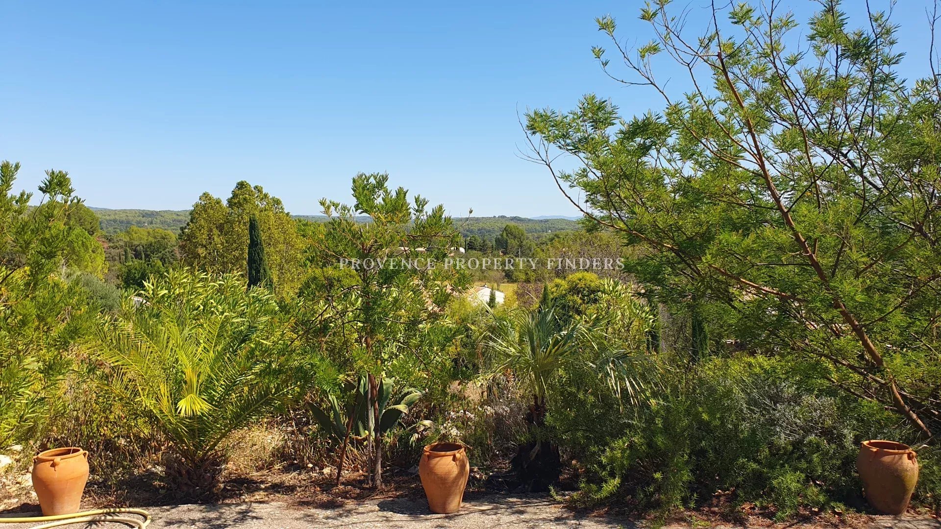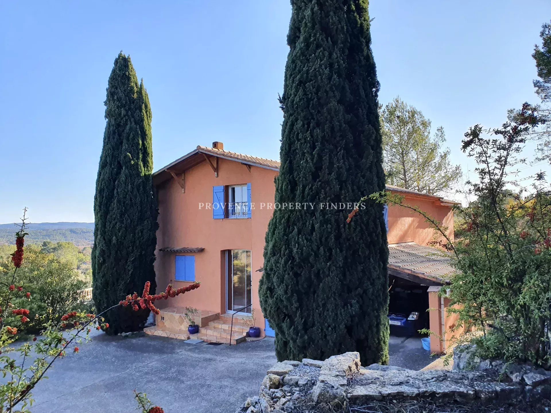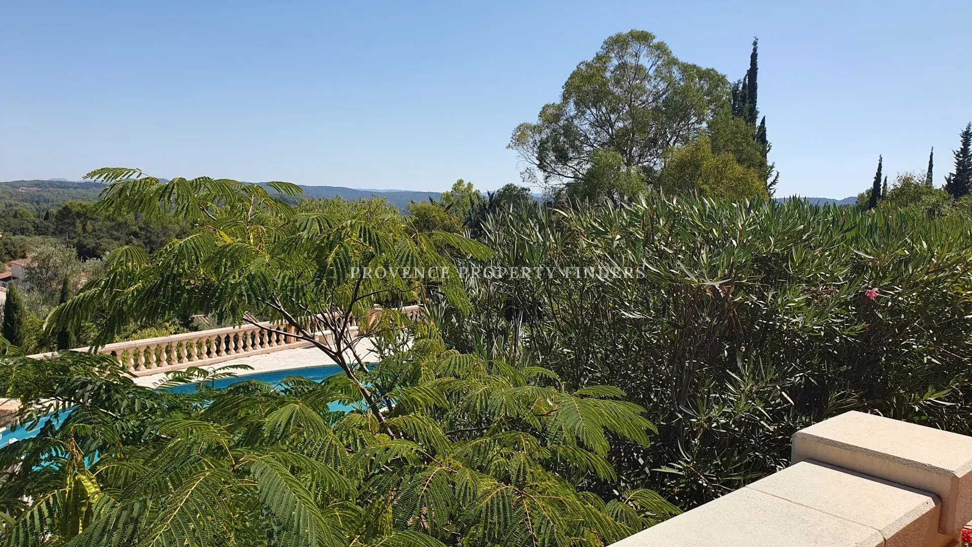 Villa (env. 180m2) avec de très belles vues, située à proximité du beau village de Cotignac. Le jardin, un parc , avec une clôture intégrale avec eucalyptus , figuiers , amandier ,pyracanthas, lauriers roses, lavandes , romarins, d'environ 4500 m2 vous offre une intimité totale. Au rez-de-chaussée, hall d'entrée, cuisine ouvrant sur la terrasse extérieure, séjour d'environ 40m2 avec cheminée, 1 chambre, une salle de bains, 1 buanderie. Au premier étage, 2 chambres, une salle de bain, un spacieux bureau pouvant être aménagé en 4ème chambre et une mezzanine. Piscine (chlore) 5x10, forme naturelle. Garage et carport supplémentaire. l’assainissement entièrement à neuf.