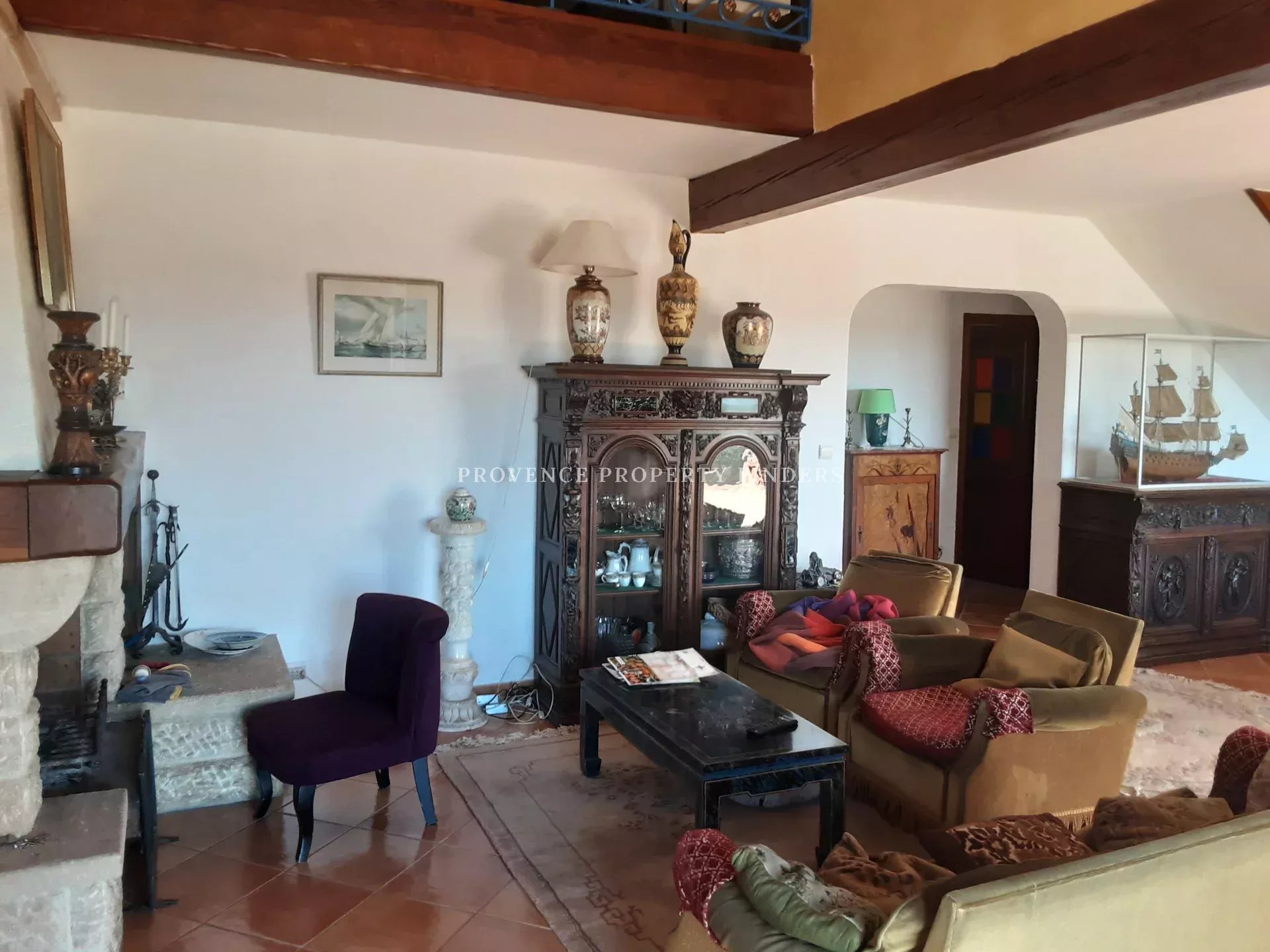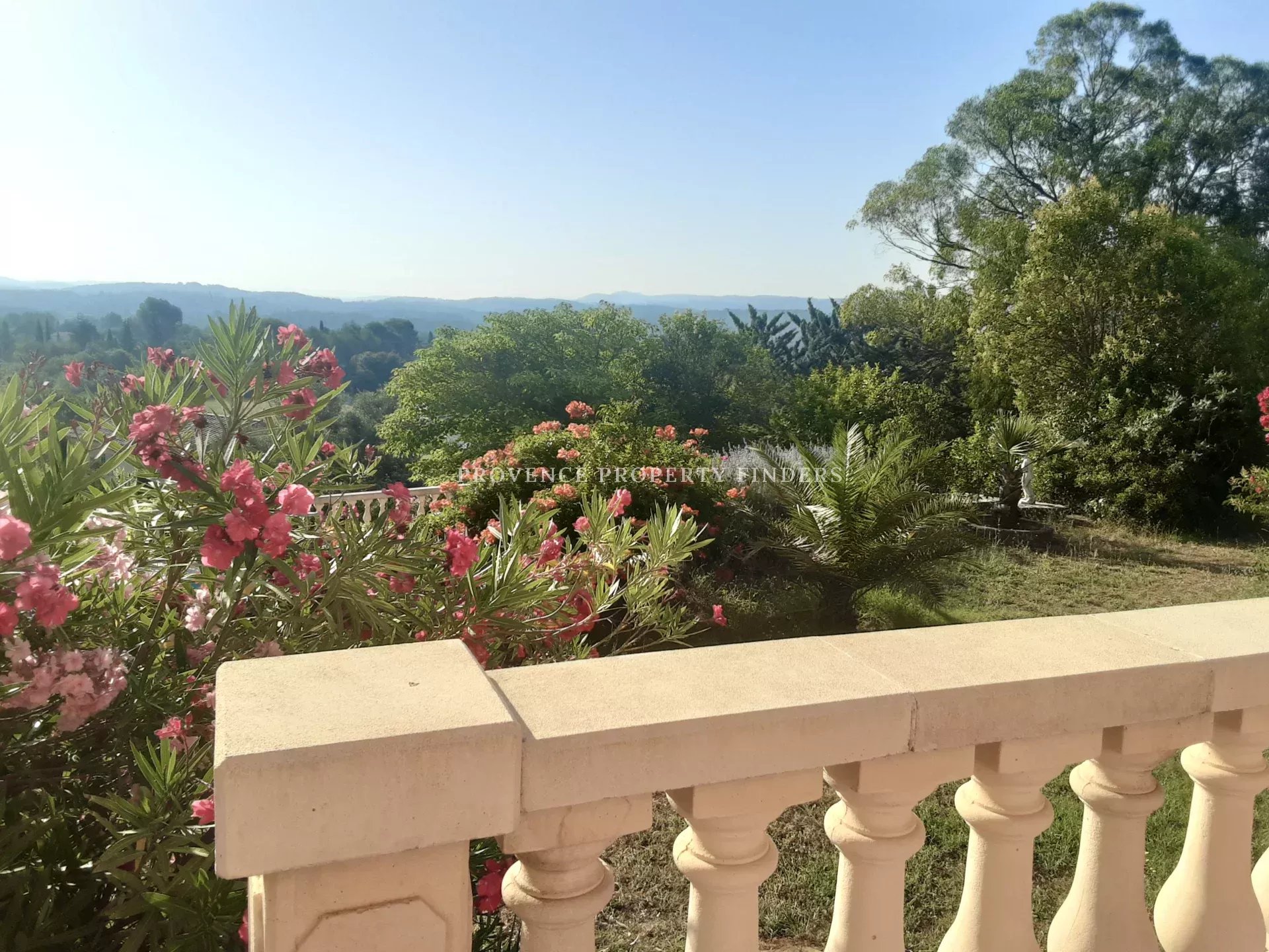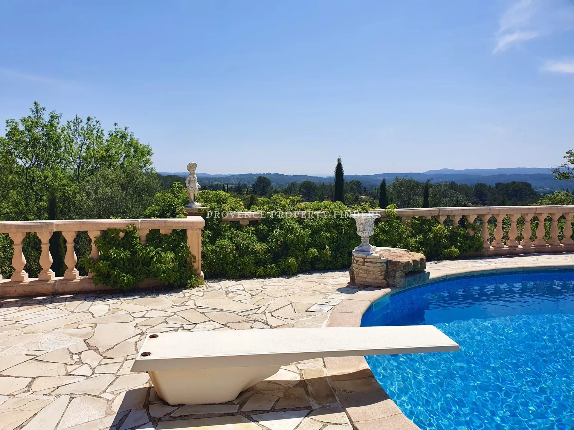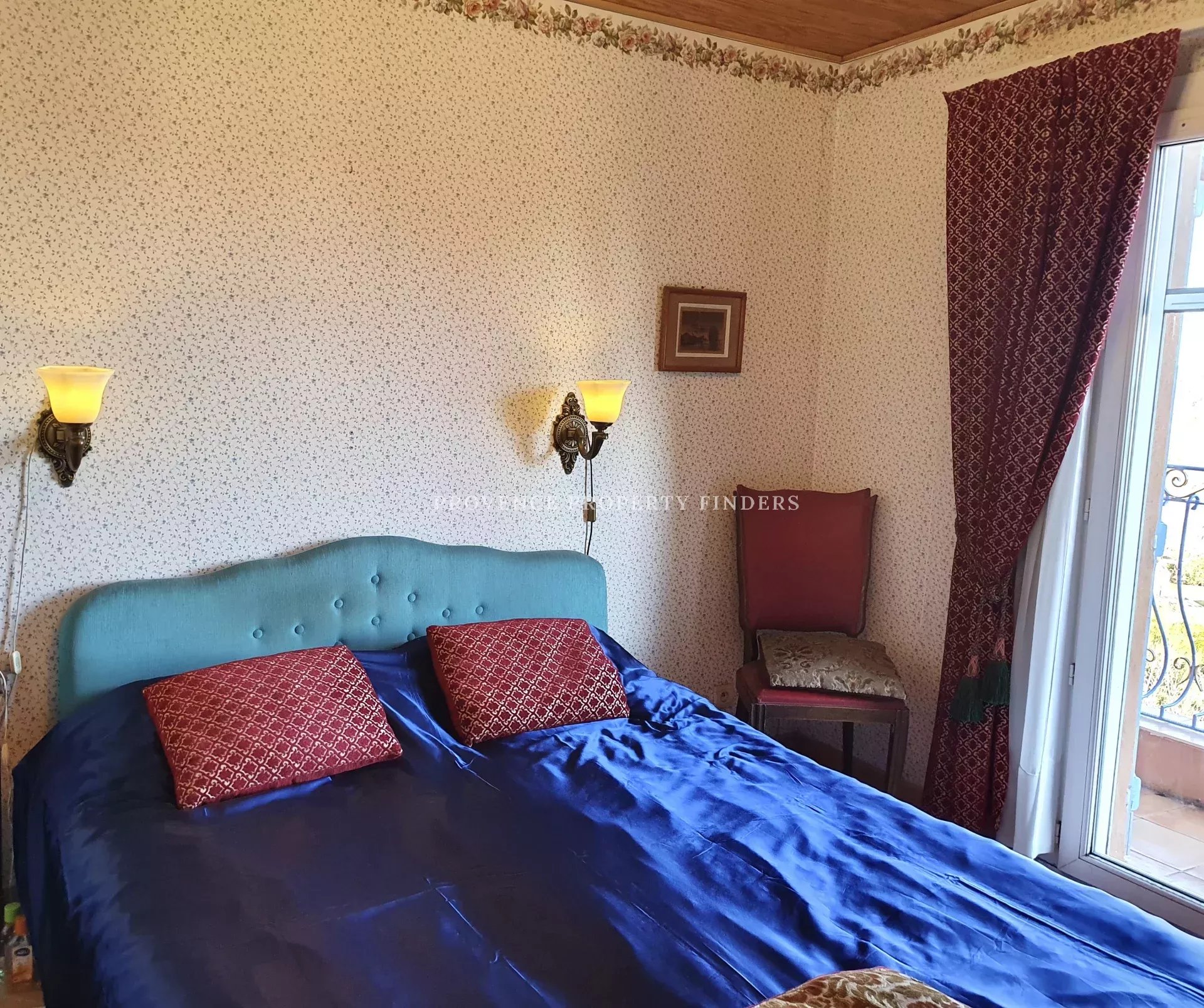 Villa (env. 180m2) avec de très belles vues, située à proximité du beau village de Cotignac. Le jardin, un parc , avec une clôture intégrale avec eucalyptus , figuiers , amandier ,pyracanthas, lauriers roses, lavandes , romarins, d'environ 4500 m2 vous offre une intimité totale. Au rez-de-chaussée, hall d'entrée, cuisine ouvrant sur la terrasse extérieure, séjour d'environ 40m2 avec cheminée, 1 chambre, une salle de bains, 1 buanderie. Au premier étage, 2 chambres, une salle de bain, un spacieux bureau pouvant être aménagé en 4ème chambre et une mezzanine. Piscine (chlore) 5x10, forme naturelle. Garage et carport supplémentaire. l’assainissement entièrement à neuf.