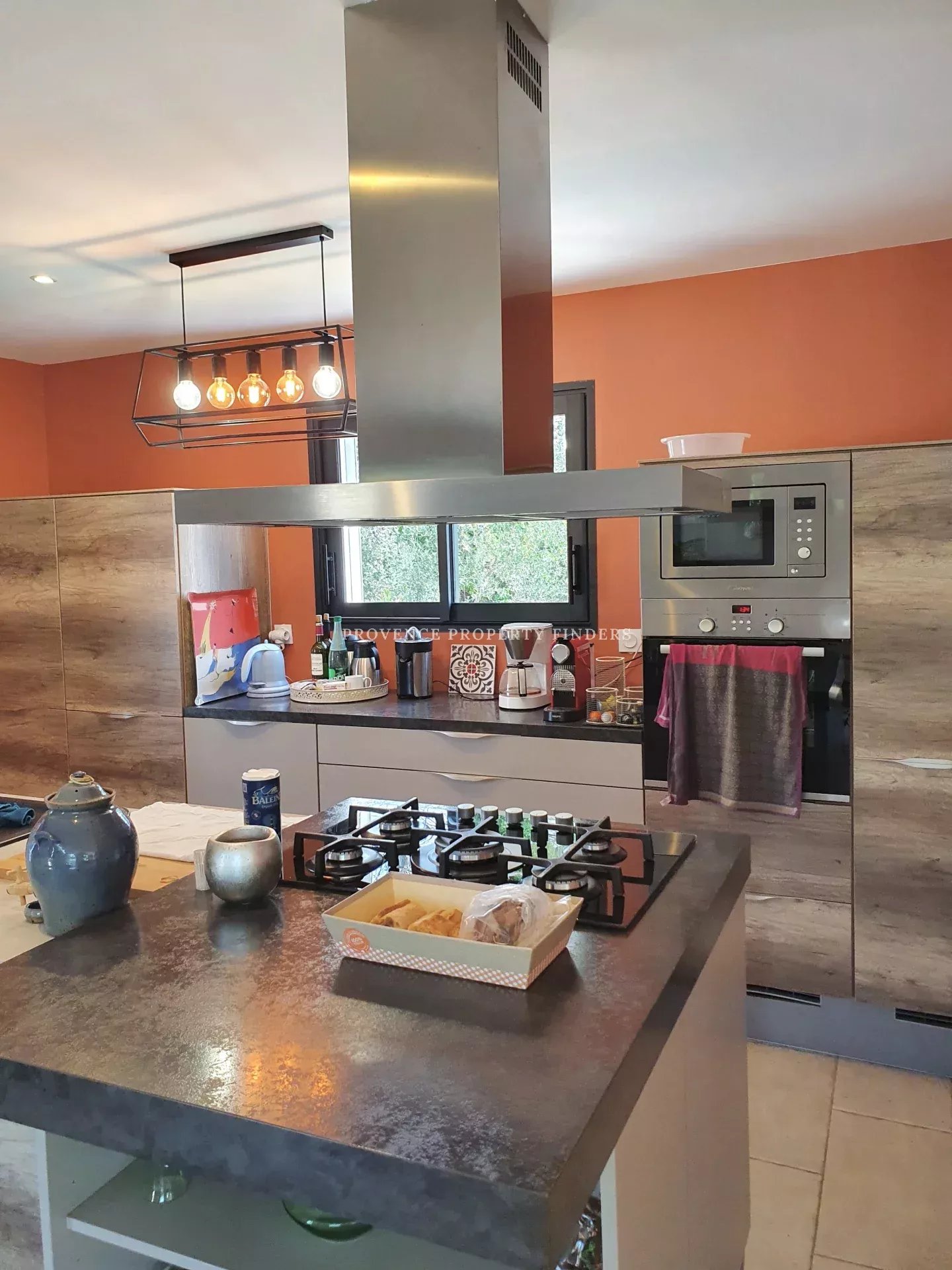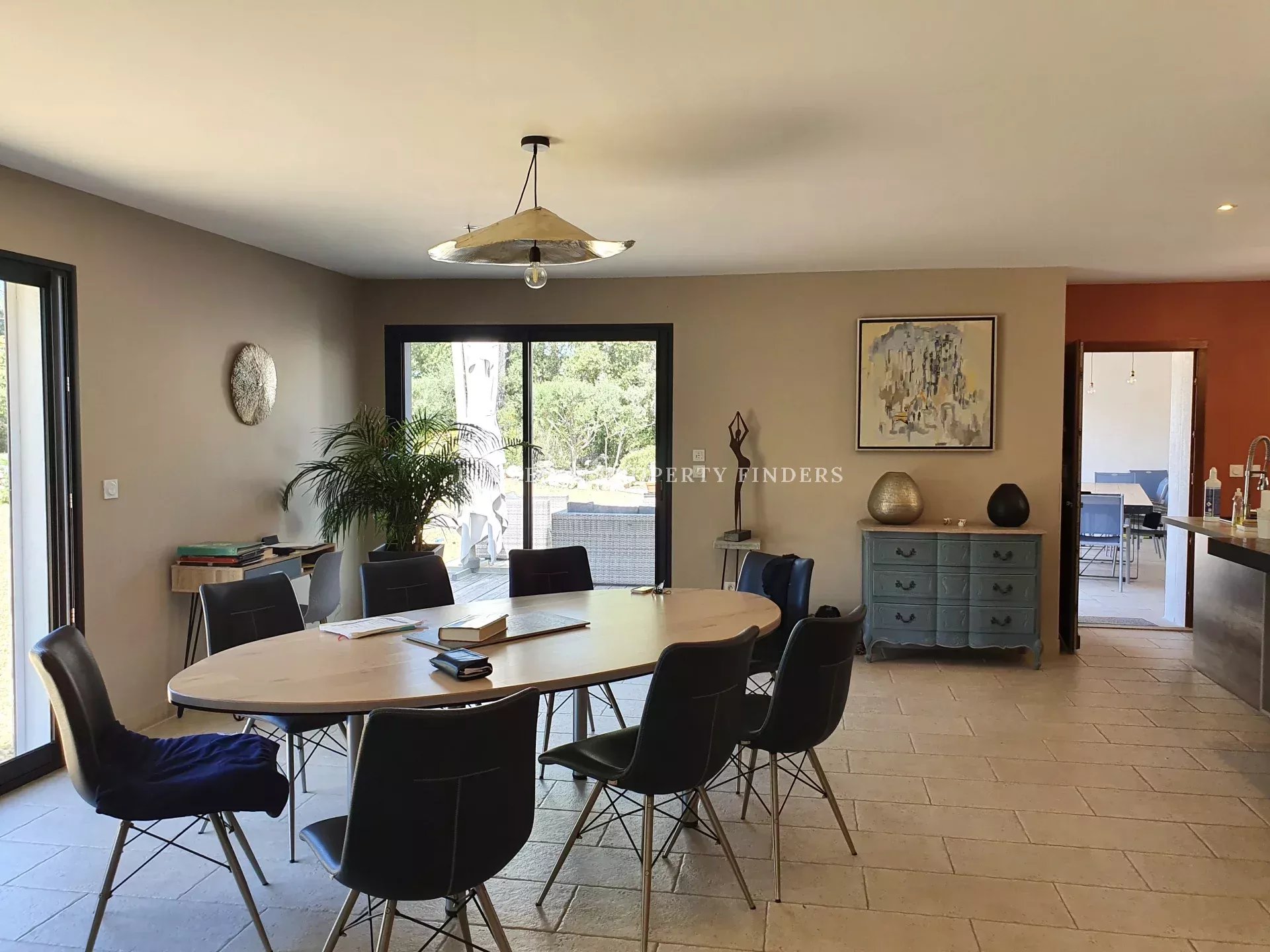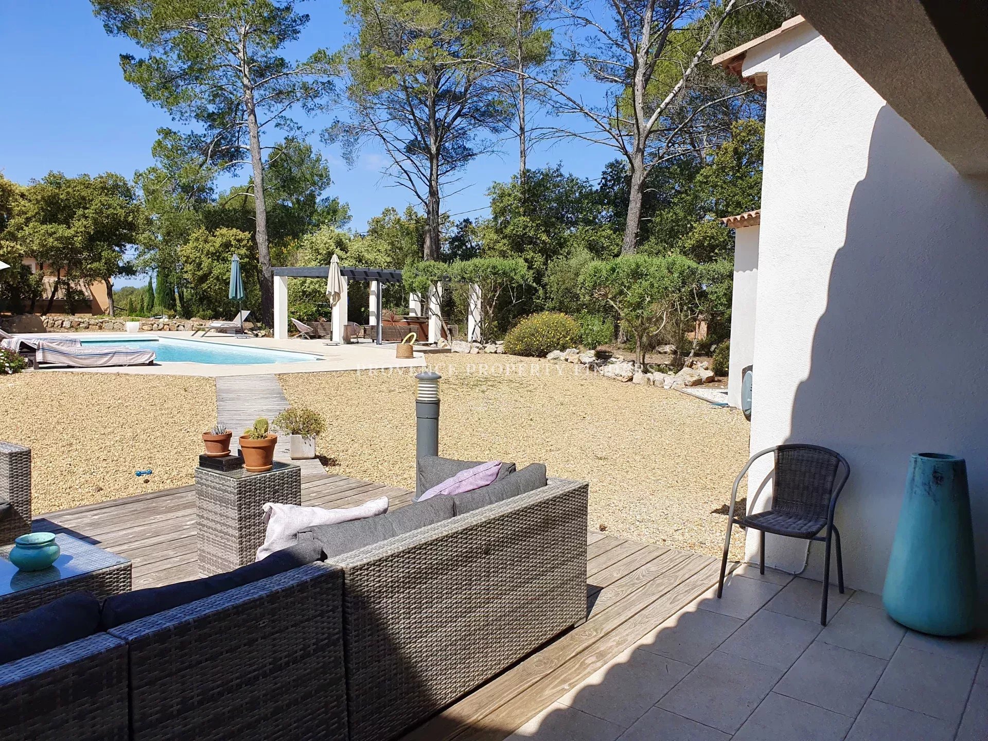 Villa moderne, de construction récente à seulement 1km du village de Lorgues. Cette belle villa de 268m2 est située sur un terrain privé de 3100m2. Au rez-de-chaussée, vous entrez par le couloir dans le grand et séjour (lumineuse) ouvert et la cuisine équipée ouverte. Il y a 7 chambres avec 6 salles d'eau au rez-de-chaussée. Au premier étage, la chambre parentale avec dressing et une salle de bain. Bureau. Une grande terrasse couverte, une piscine au sel 12x4,20 m et un pool house. Il y a un jacuzzi près de la piscine et un sauna séparé à côté de la salle de jeux/annexe. Un quartier calme où vous pourrez vous détendre et profiter du moment. Possibilité de reprendre l'activité de chambres d'hôtes.