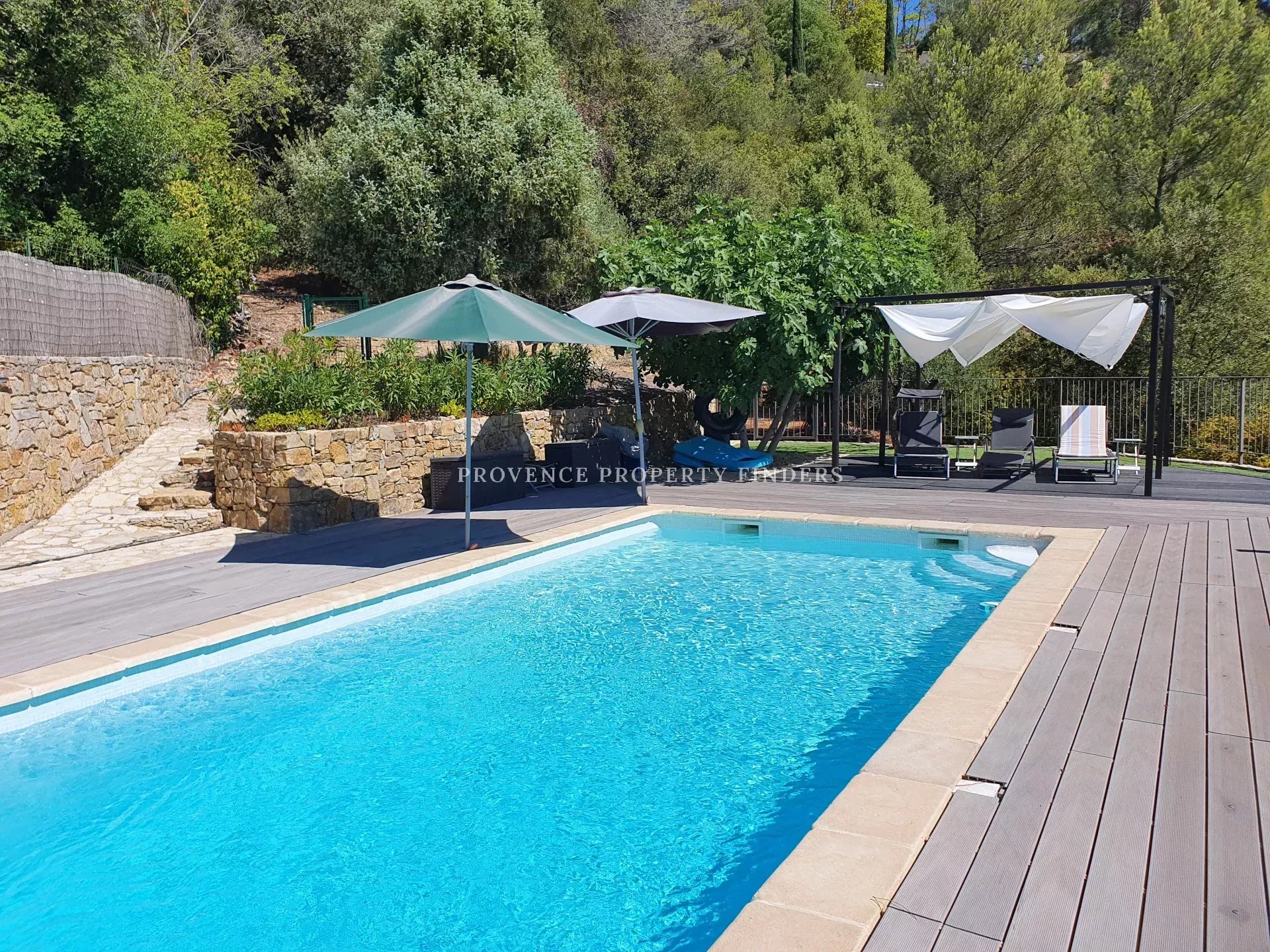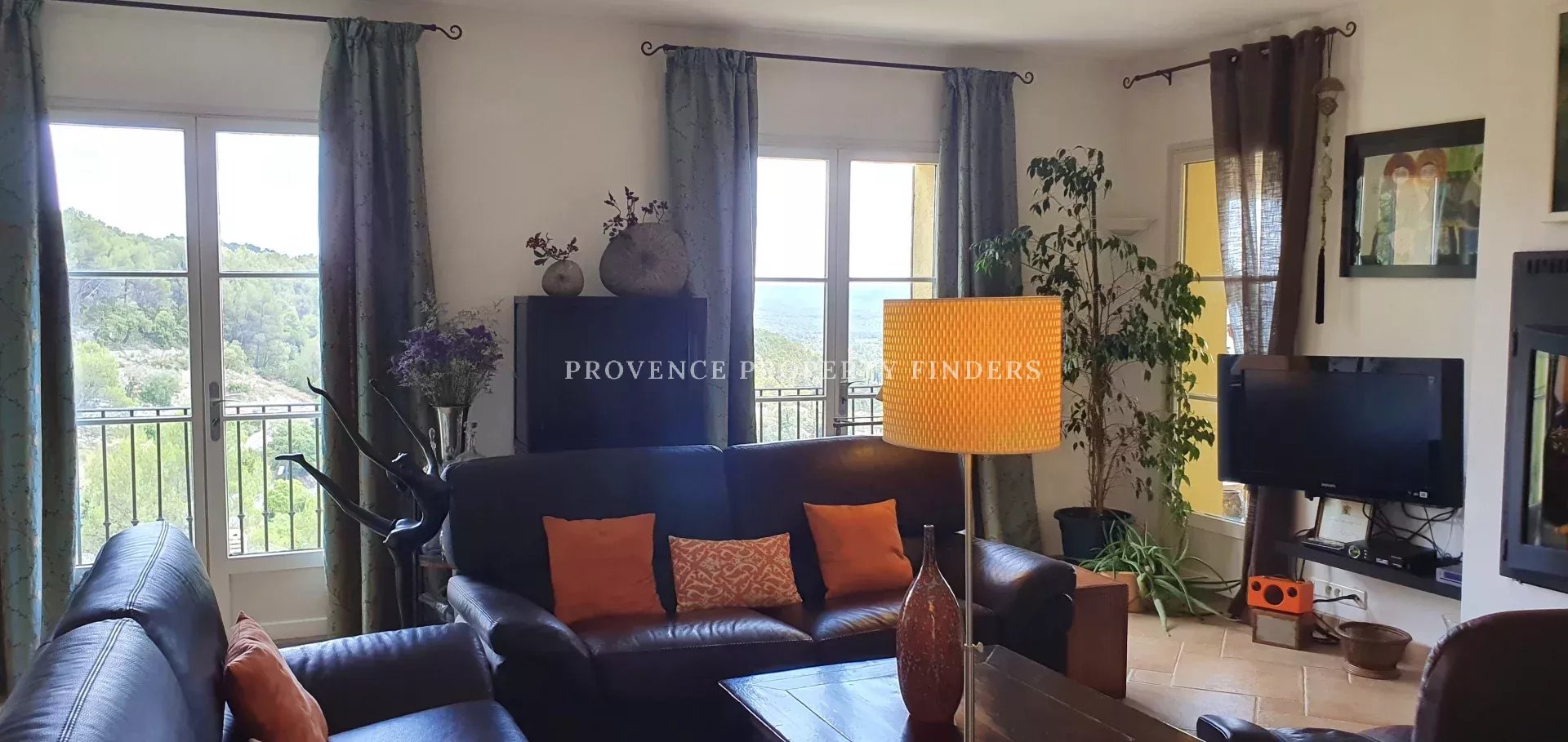 Villa magnifiquement située d'environ 174 m², sur un terrain de 2 500 m². Au rez-de-chaussée se trouve l'entrée, 3 chambres avec salle d'eau et wc privatifs. Une buanderie et un bureau. Au 1er étage le salon/salle à manger avec cuisine ouverte qui s'ouvre sur la terrasse extérieure qui offre une vue magnifique!. Un barbecue à l'extérieur. Une belle piscine paysagée (chlore) 9 x 4 avec une vue imprenable. Chauffage au sol (fioul), cheminée. Un garage de 54 m² avec chauffage au sol pouvant encore être raccordé. Beau jardin paysager sur différents niveaux, arrosage automatique grâce à la récupération d'eau de pluie.