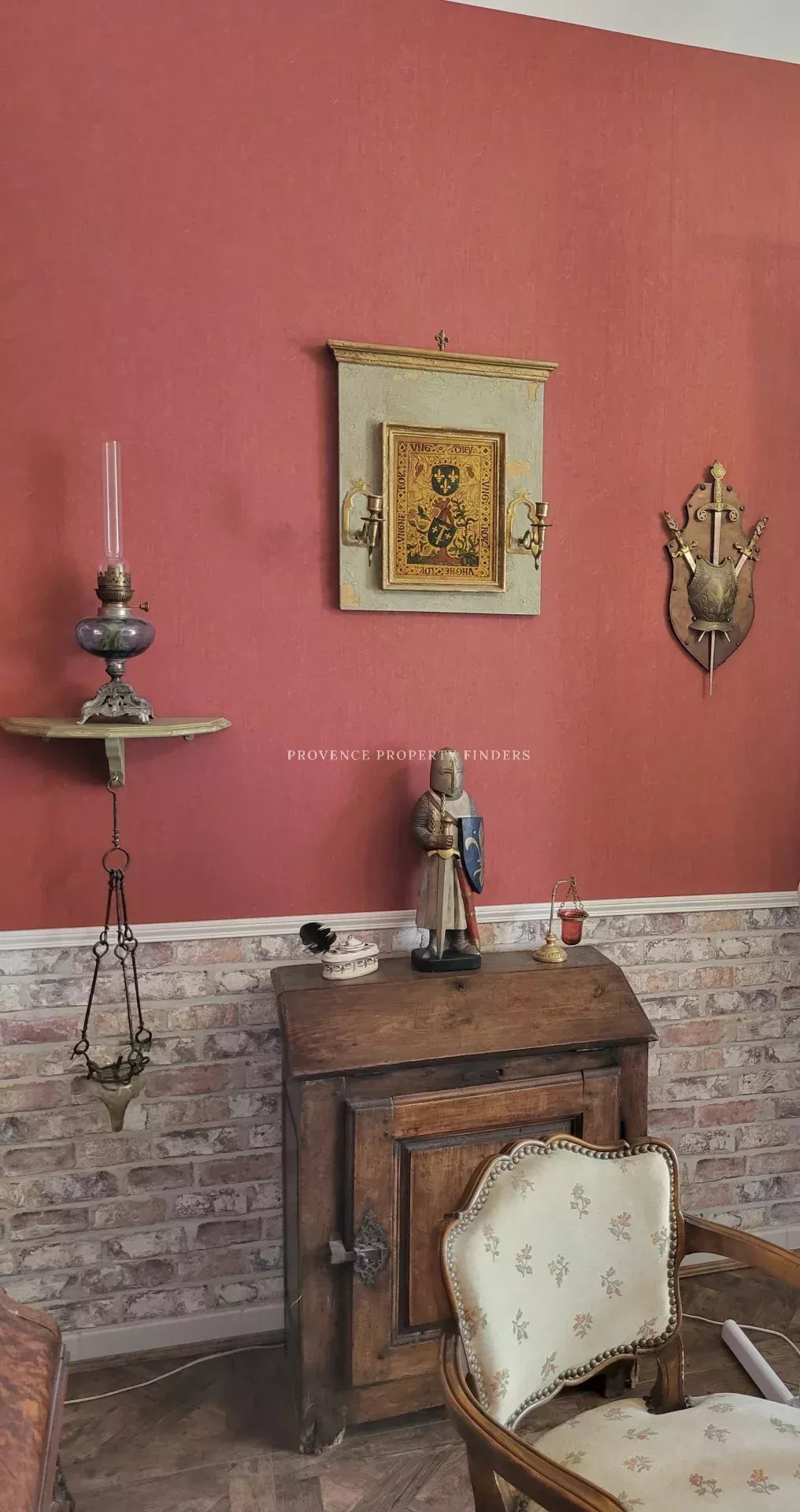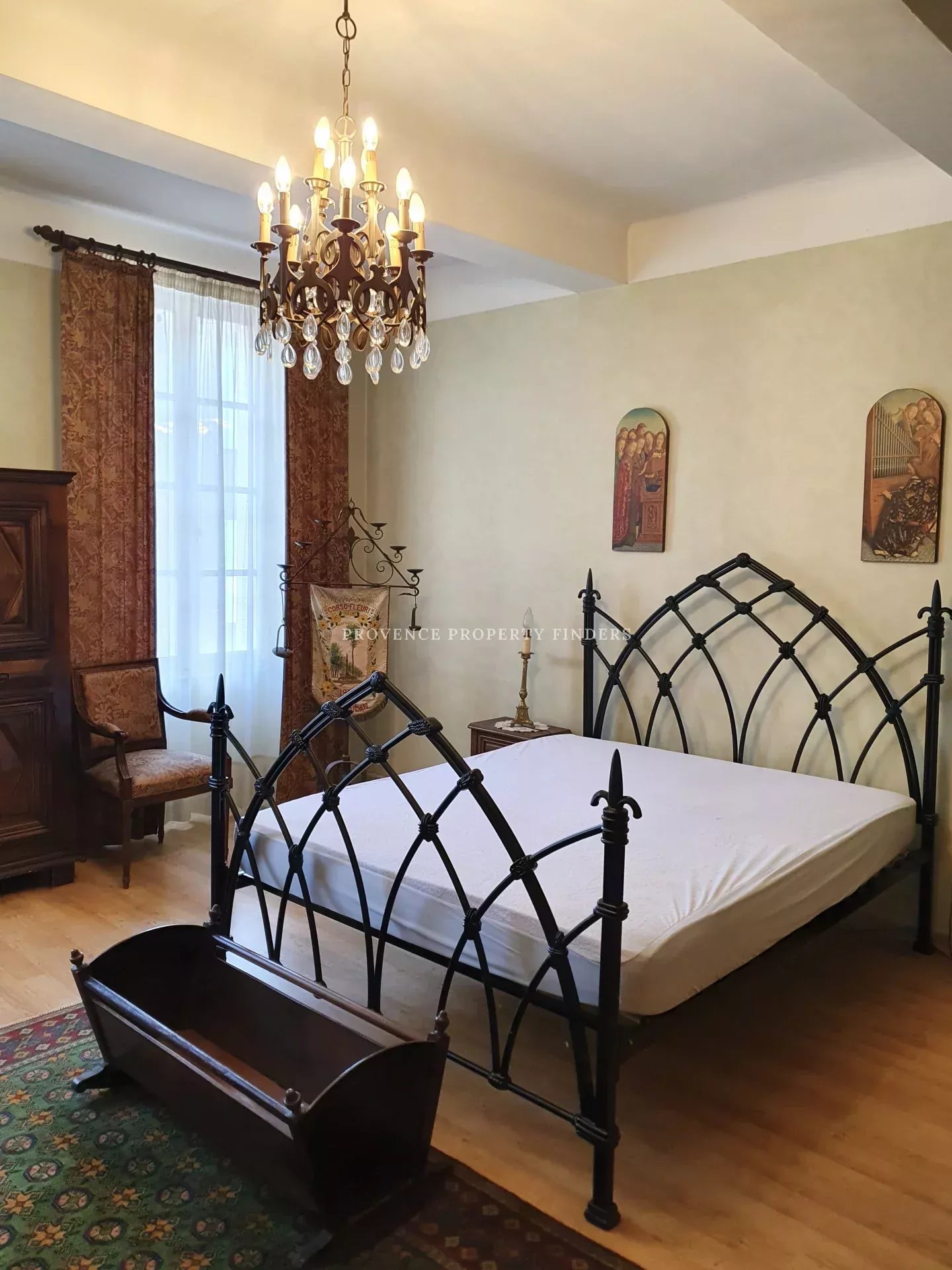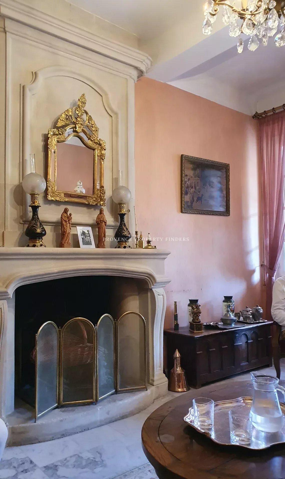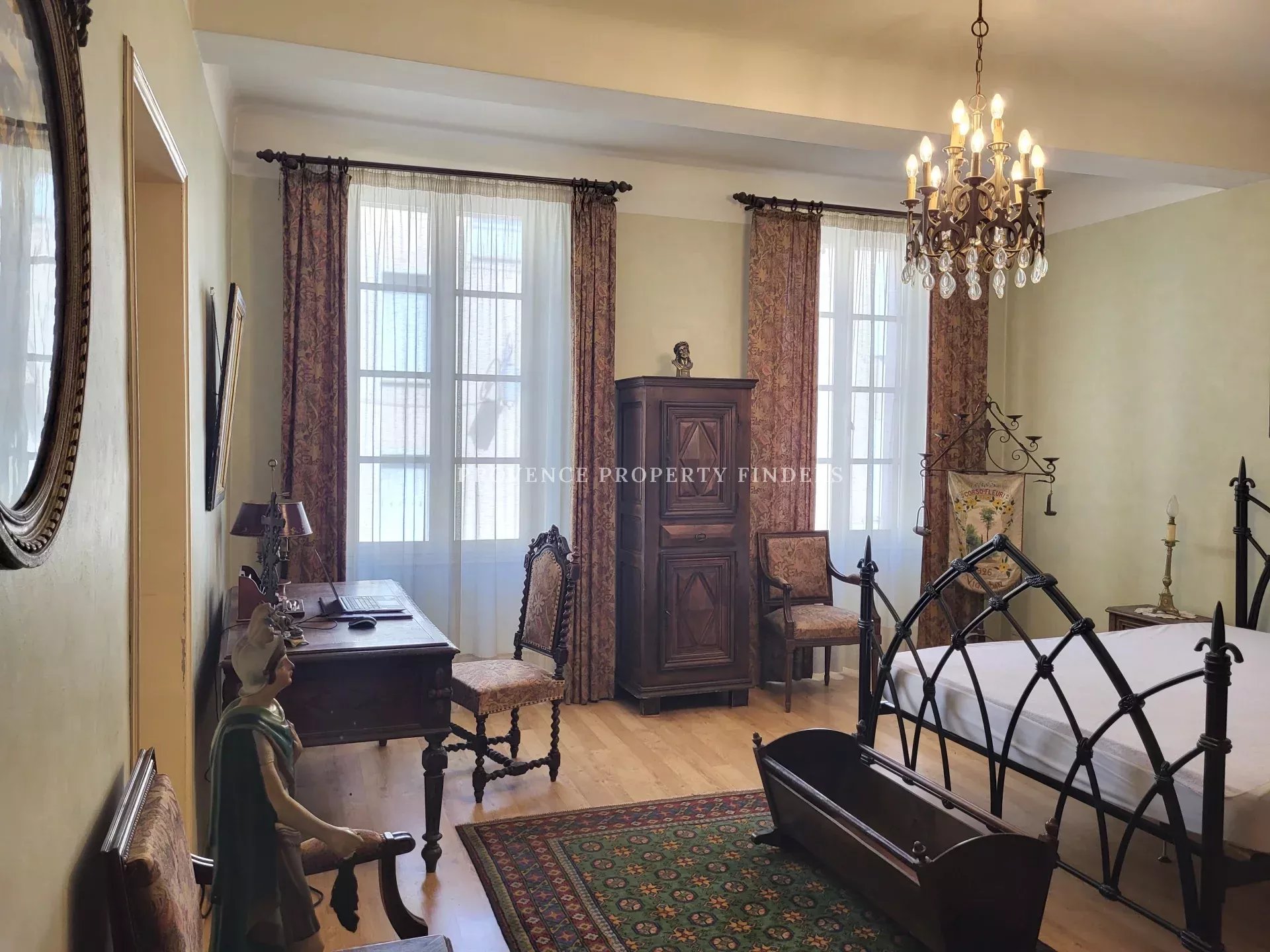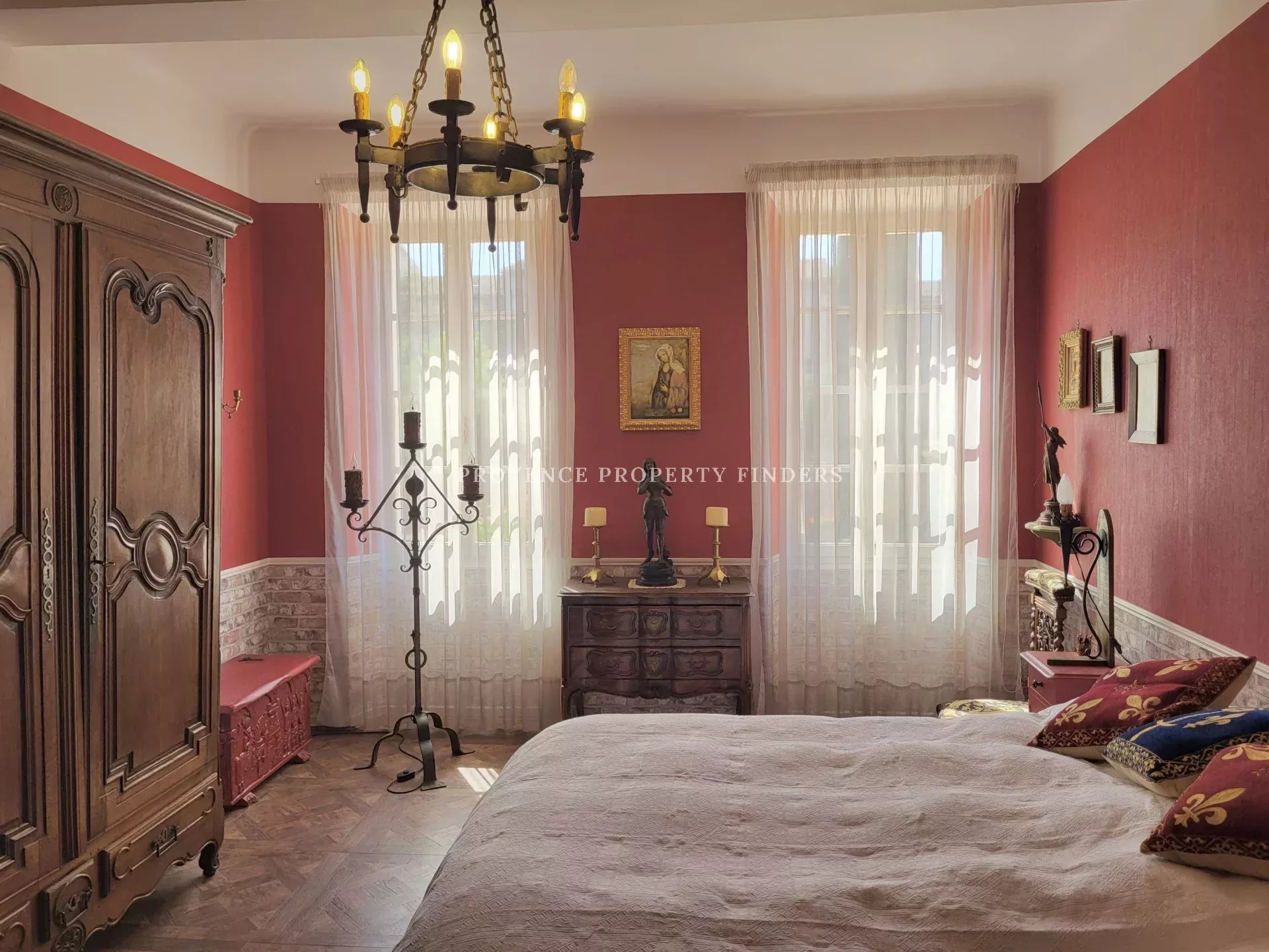 Il y a 5 à 6 chambres. Un grand salon, bibliothèque et une grande salle à manger.