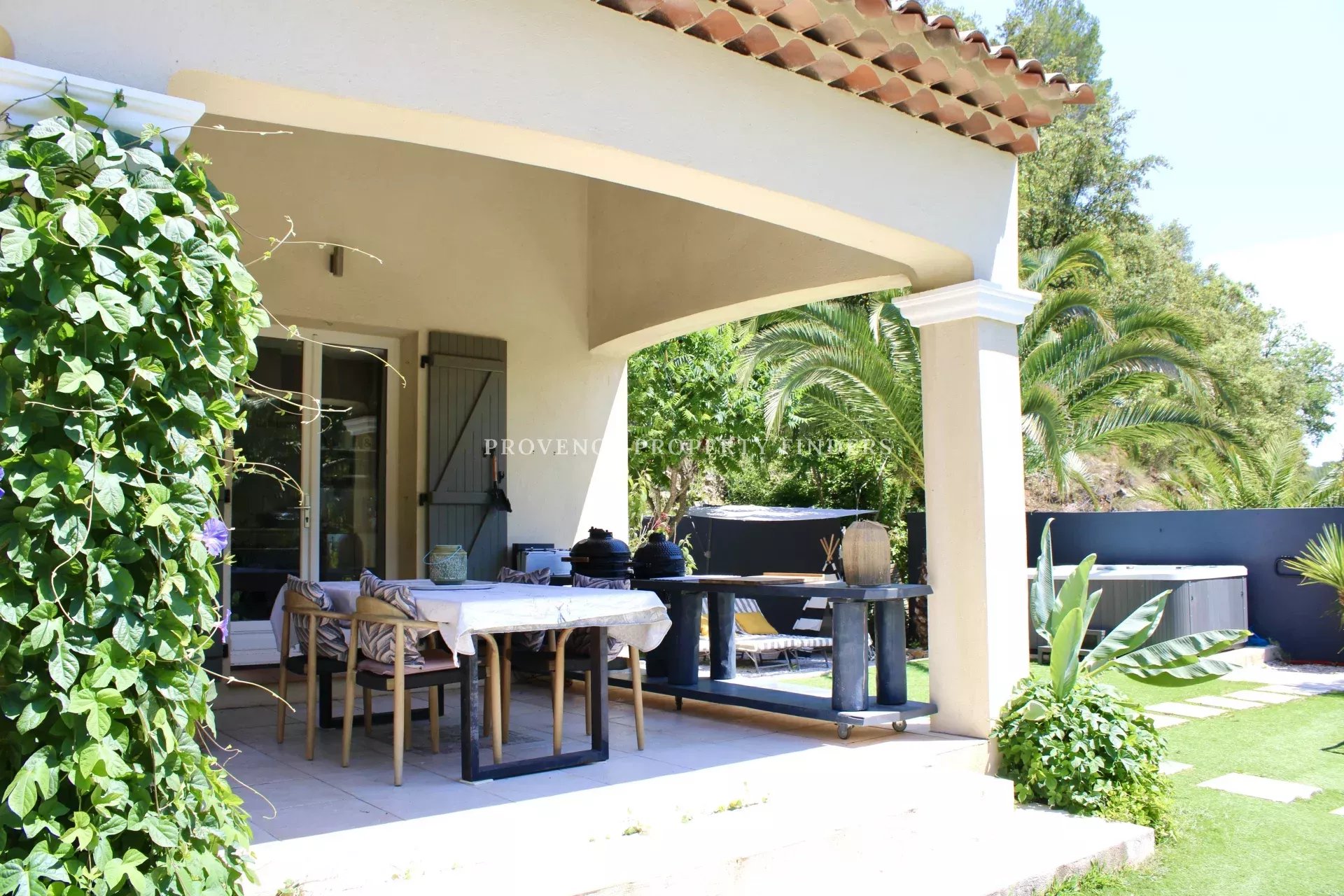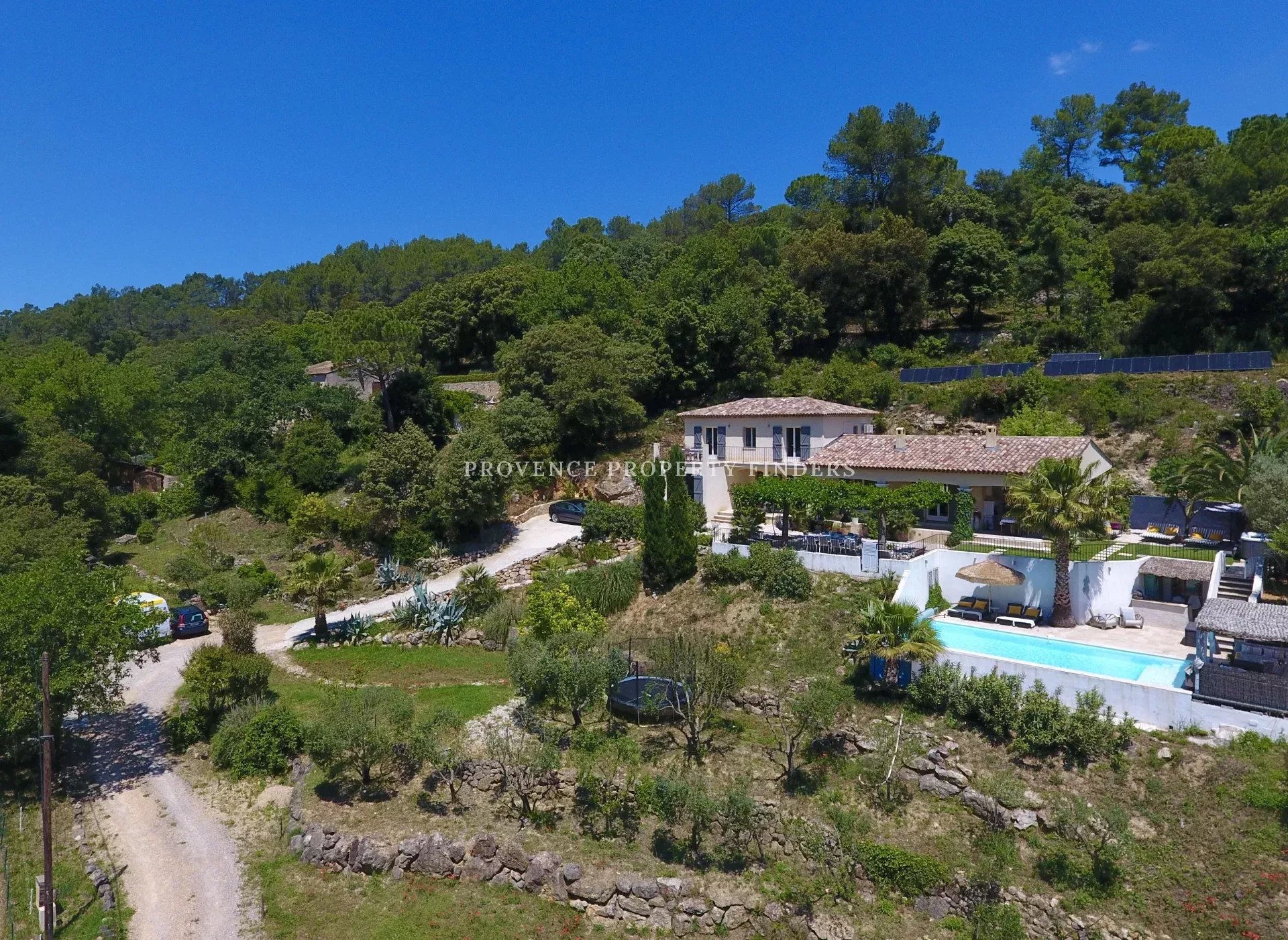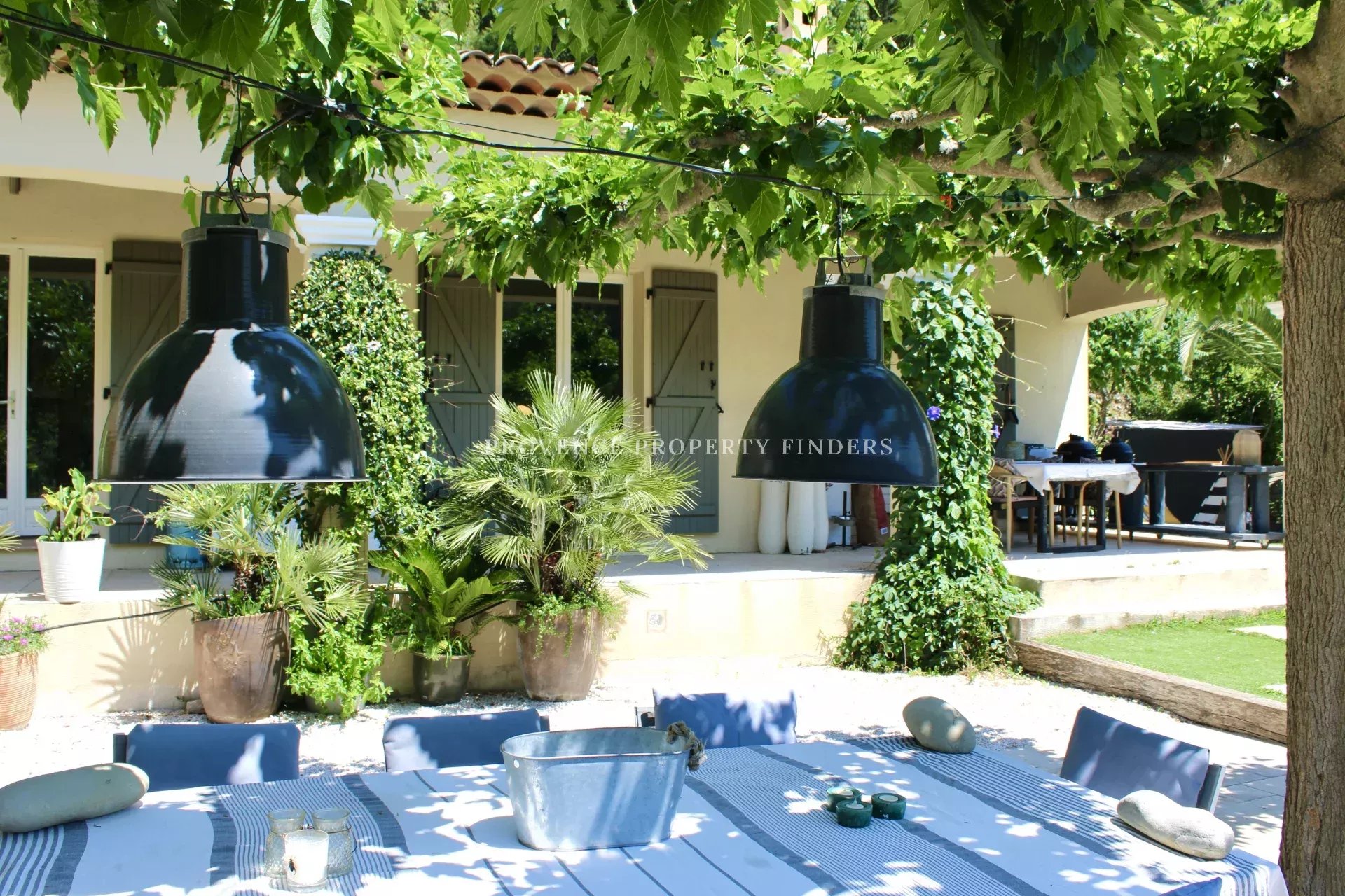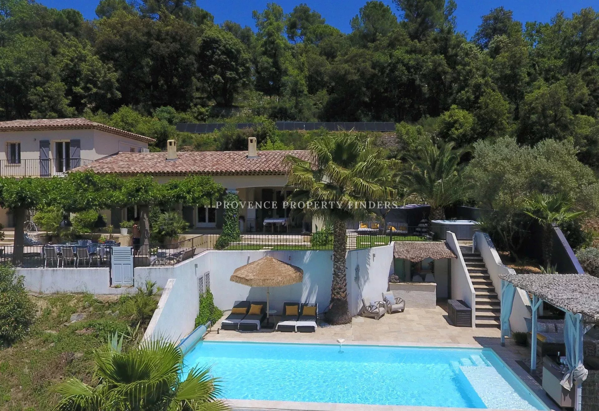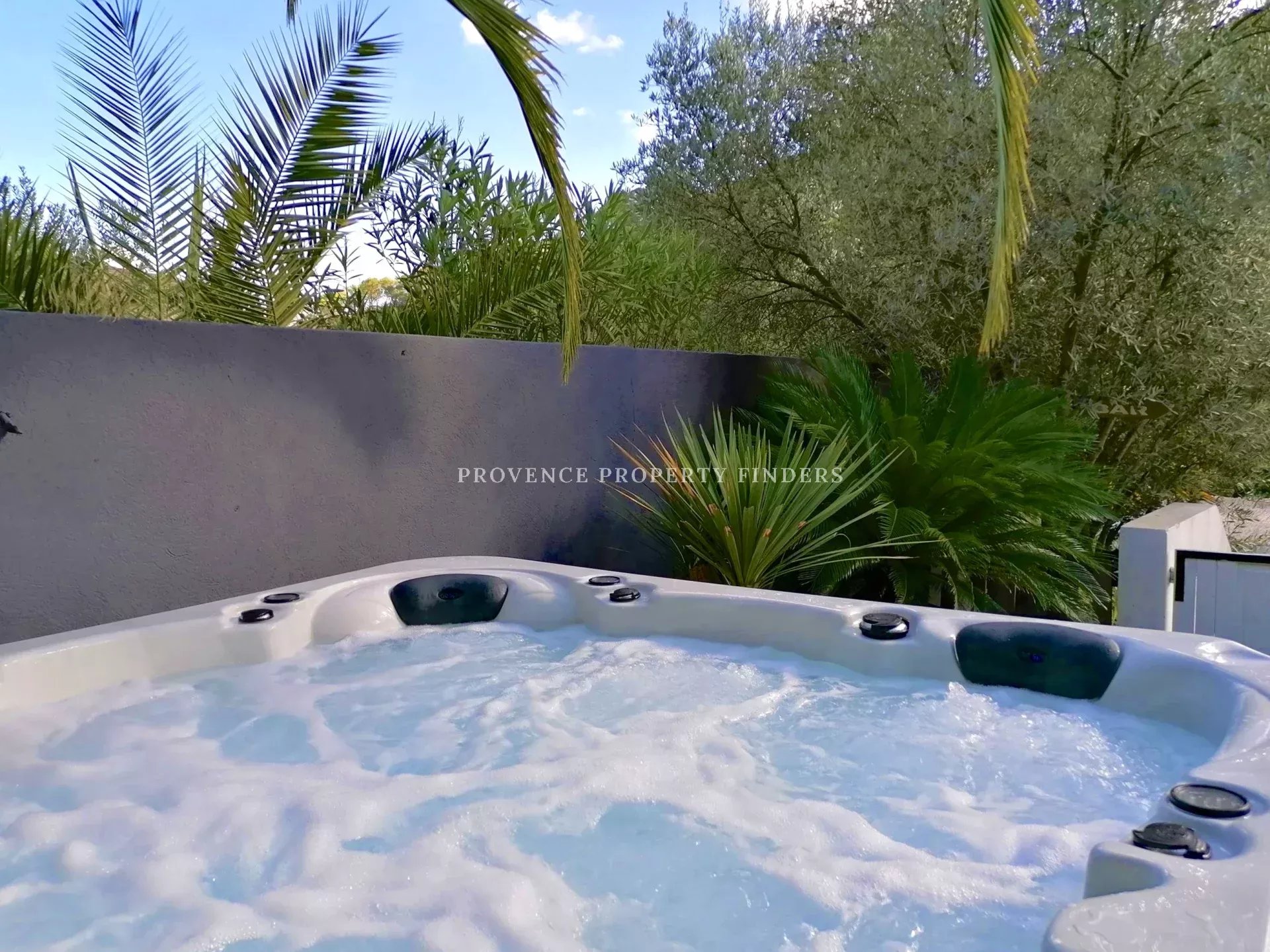 Charmante propriété d'environ 175 m² sise sur un terrain paysagé de 3584 m². Entrée, Séjour-salle à manger avec cheminée, Cuisine ouverte aménagée et équipée donnant sur une terrasse couverte avec barbecue. Deux chambres dont une avec sa propre salle de bain et un studio avec entrée indépendante et kitchenette/séjour. Une salle d'eau, A l'étage, une suite parentale avec balcon, et une chambre avec sa salle de bain privative et son balcon. De beaux espaces de détente, une terrasse abritée, une piscine chauffée. Espace bar et jacuzzi.. (Panneaux photovoltaïques et borne de recharge pour véhicules électriques).